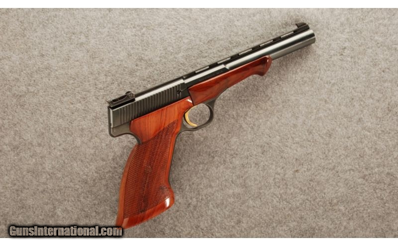 Description: SOLD Manufacturer: 1963 Caliber Info: .22 Long Rifle. Metal Condition: Excellent original finish with a couple of minor handling marks. Wood Condition: Excellent original finish but there are some issues: A few minor handling marks, screwdriver marks in wood around grip screw hole, and a repair to the left side of grip at the top rear where a small piece broke off and glued back on (see 3rd photo). Bore Condition: Bright and shiny. Barrels: 6 3/4 Triggers: Gold finish, grooved trigger. Stock: Original Browning target grips with thumbrest. Weight: 3 lb. Sights: Original factory sights. Extras: Browning original case with weights. Item Location: Boise, ID |