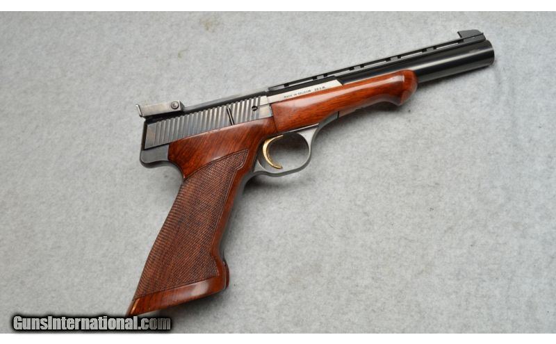 Description: This Browning Medalist still retains an excellent amount of its original finish and the wood is in fantastic shape. The plating on the trigger is showing wear as indicate in the photos. No box and has 1 magazine. SOLD Caliber Info: .22 LR Chambers: Semi auto. Metal Condition: Very good. Wood Condition: Very good. Bore Condition: Excellent. Barrels: 6 3/4 inch poished blue with sights and vent rib. Triggers: Single gold. Stock: Walnut checkered. Fore End: Schnabel walnut. Weight: 46 oz Sights: Blade front, square notch adjustable rear. Item Location: Avon, OH |