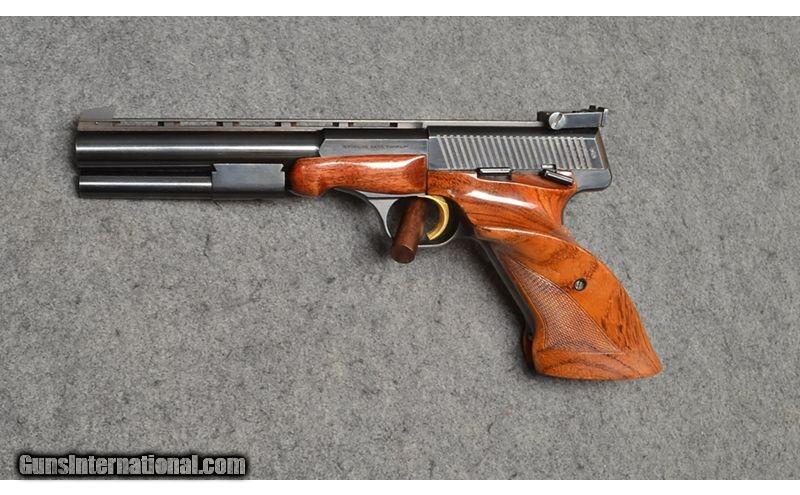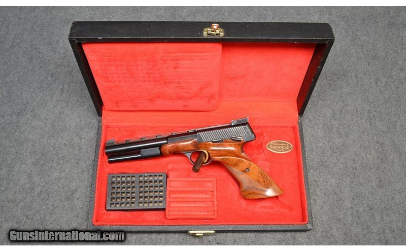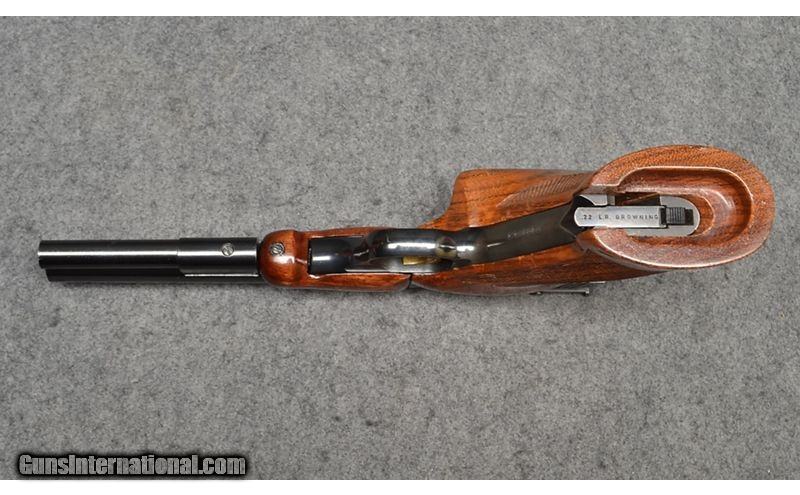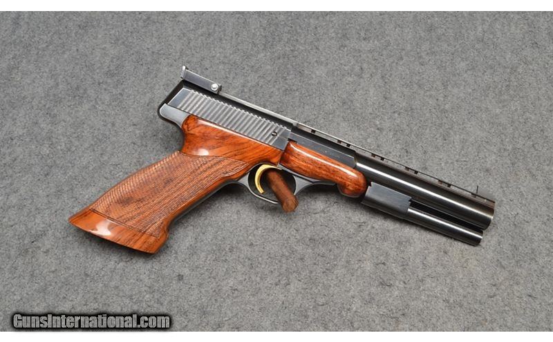 Description: This pistol is a Browning Medalist chambered in .22 Long Rifle. It has competition grips, iron sights, and a polish blue finish. This firearm is in very good condition overall, with some light handling marks. It comes with hard case, additional fore end, and additional barrel weight. .22 Long Rifle SOLD Wood Condition: "Very good, some light scratches Bore Condition: Bright and shiny with visible rifling Barrels: 6-3/4" blued steel barrel Fore End: Polished walnut competition grip Weight: 50 Oz. Sights: Factory iron sights Chokes: ` Item Location: Wichita, KS |