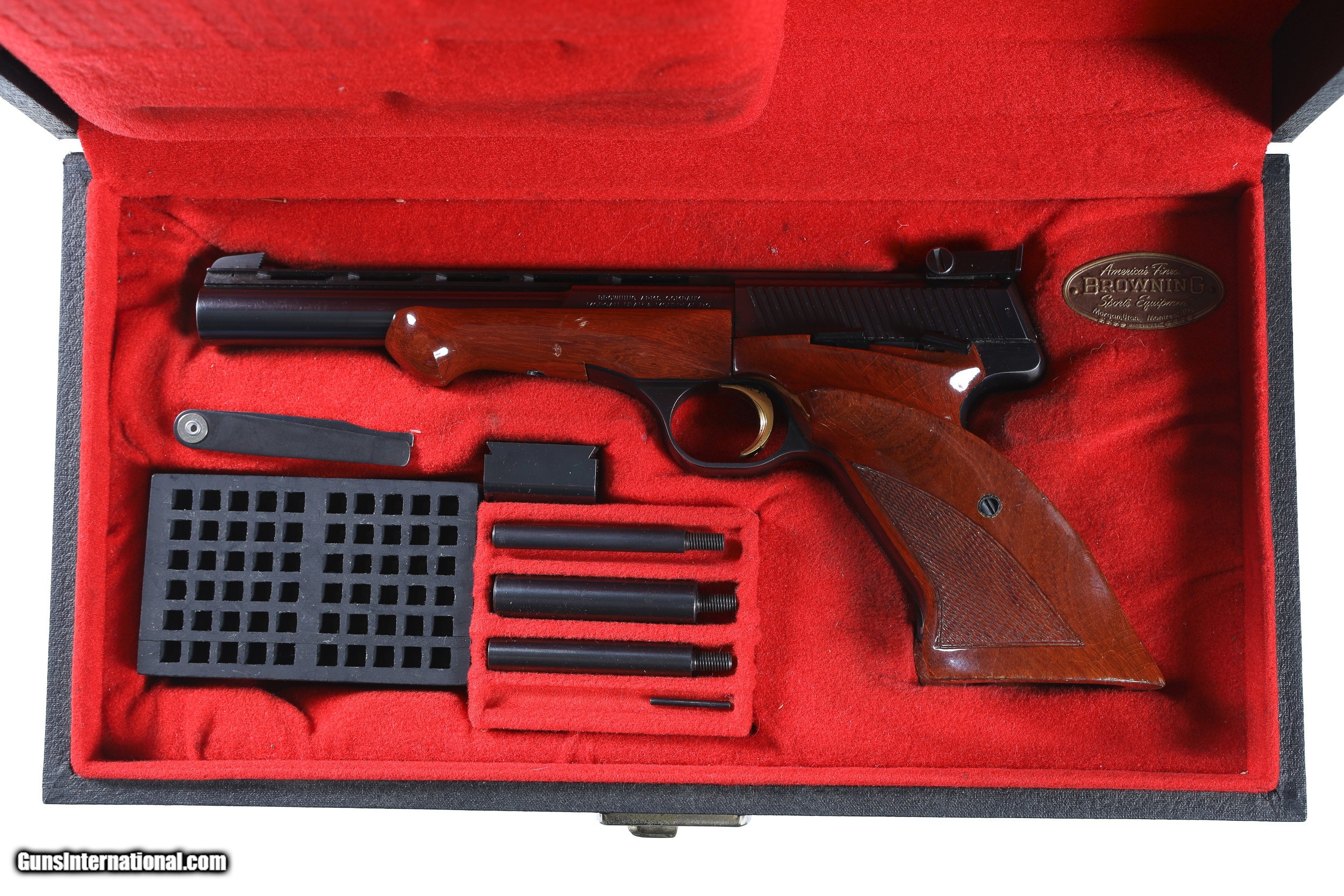 Description: Metal surfaces rate excellent. Handling marks to grips. Includes factory case, counter weights, and tool. Free Shipping, No Credit Card Fees! SOLD Manufacturer: Browning Model: Medalist Serial Number: 4750T72 Barrel Length: 6-3/4 Caliber Info: .22 lr |