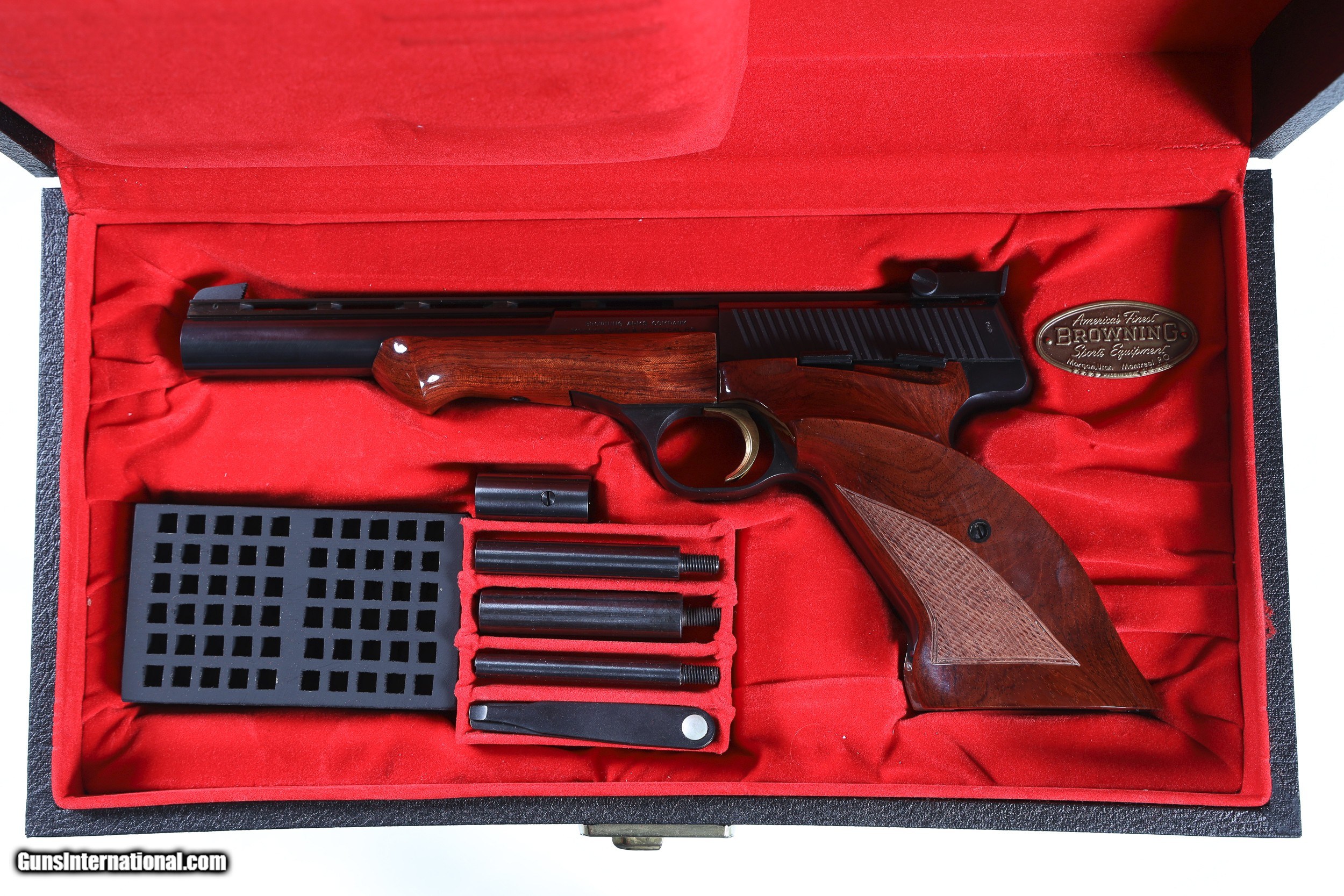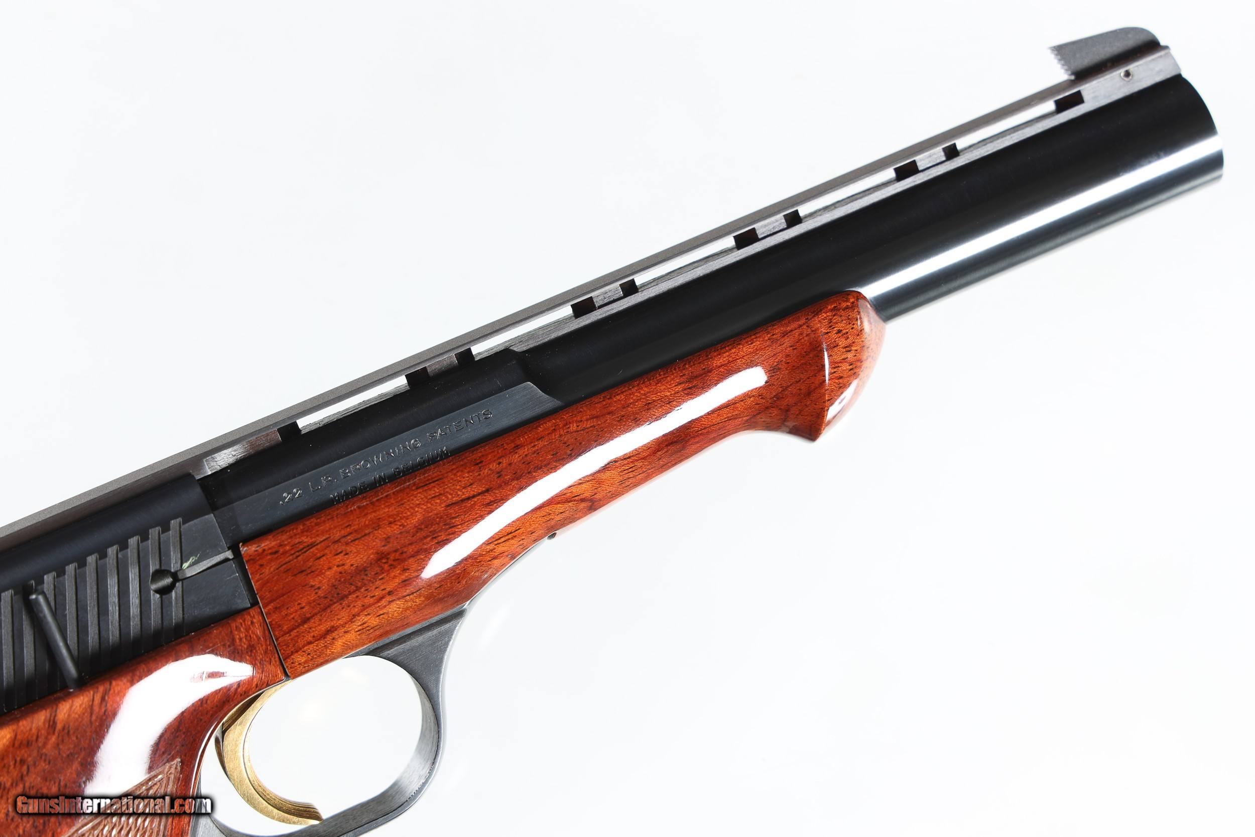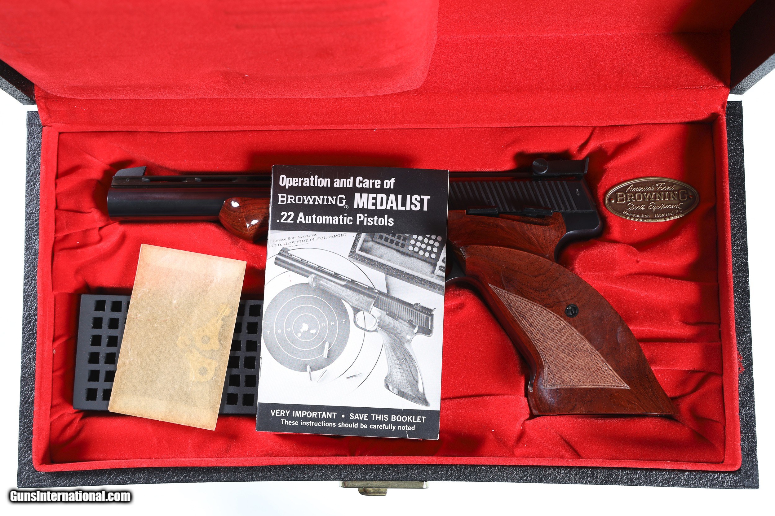 Description: Excellent plus overall condition, mfd in Belgium. Virtually no signs of use. Manufactured in 1974. With factory leatherette case, screwdriver, cartridge block, weight adaptor, and three barrel weights. • Free Shipping, No Credit Card Fees. • Lay-a-way available for this firearm. • 1/3 Down, a 1/3 in 30 Days 1/3 in 60 Days. SOLD Manufacturer: Browning Model: Medalist Serial Number: 69472T74 Barrel Length: 6-3/4 |