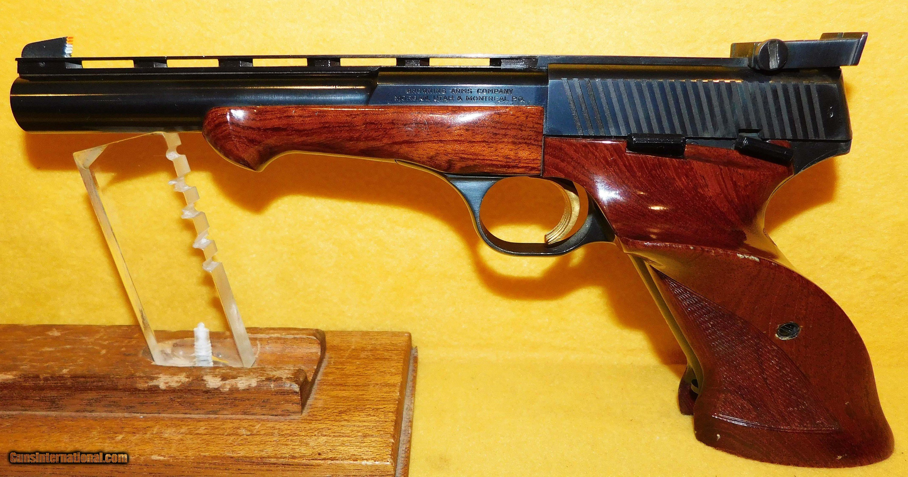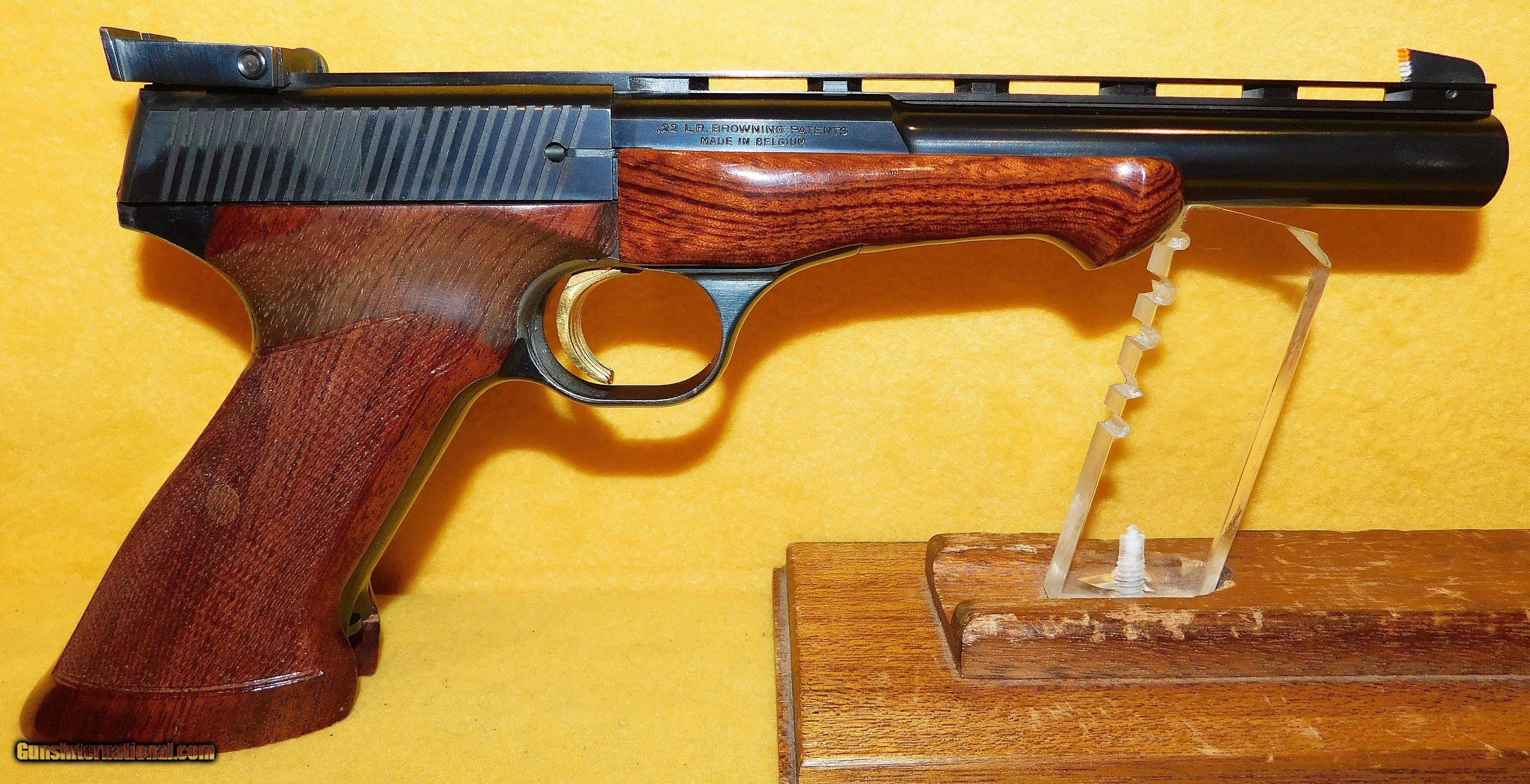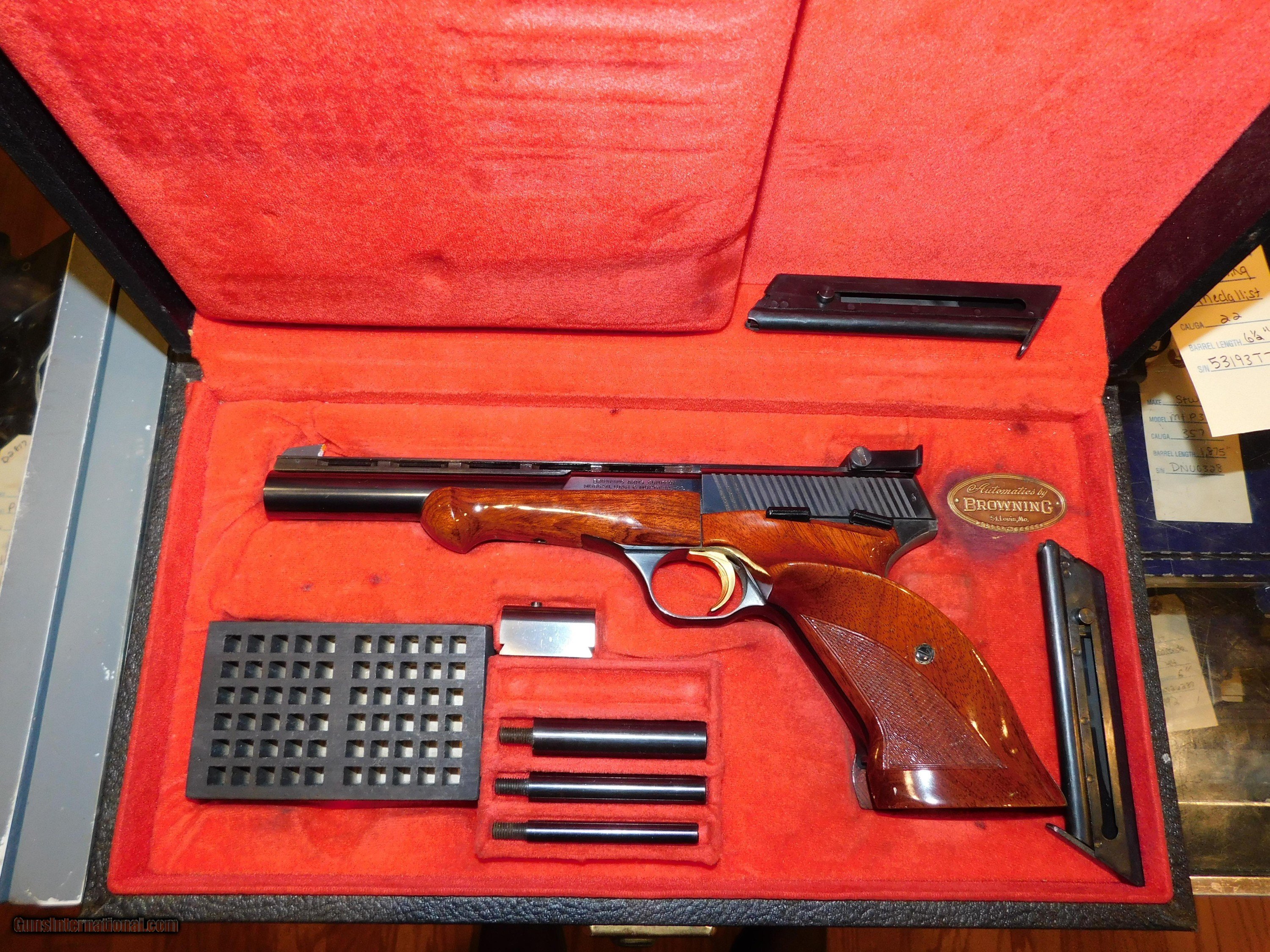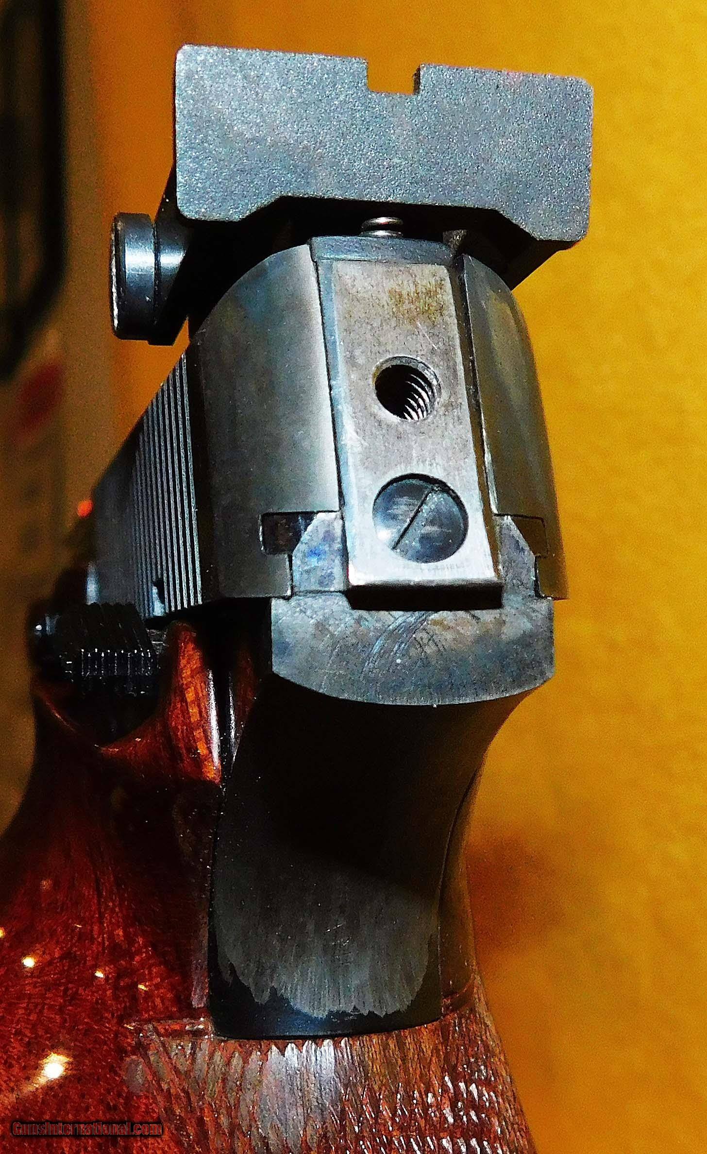 Description: BROWNING MEDALIST IN .22 L.R. CAL., WITH 6 1/2" BARREL. COLOR BLUE. CONDITION 90%. SERIAL NUMBER 53193T73. BROWNING MODEL MEDALIST IN 22 L.R. CALIBER, BRIGHT SHINY BORE, GRIP AND FORE END EXCELLENT, FOR WHATEVER REASON REAR OF FRAME HAS BEEN ALTERED AS SEEN IN PHOTO, COMES WITH CASE, THREE WEIGHTS, THREE FACTORY MAGAZINES, 90% OVERALL CONDITION, OUR STOCK # D2734 SOLD |