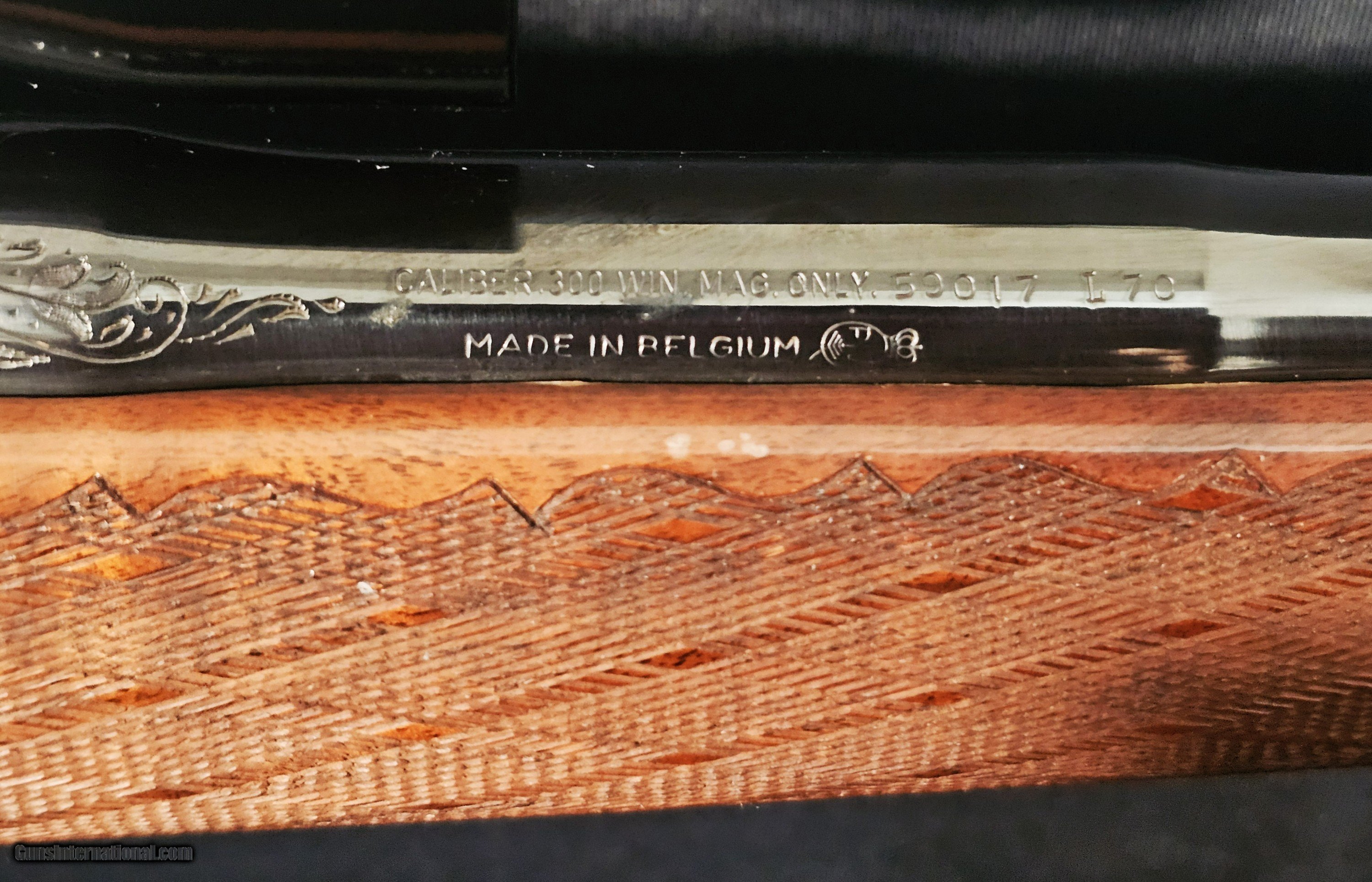 Description: The Browning Medallion chambered in .300 Winchester Magnum is a bolt-action rifle built with a 24-inch barrel and classic sporting configuration. Manufactured in Belgium in 1970, it reflects Browning’s production from that era with a steel receiver and wood stock layout typical of the Medallion line. The rifle weighs approximately 9 pounds 12 ounces and has a length of pull of 13.25 inches, providing full-size dimensions suited to its magnum chambering. No additional accessories or packaging. Terms and Conditions: