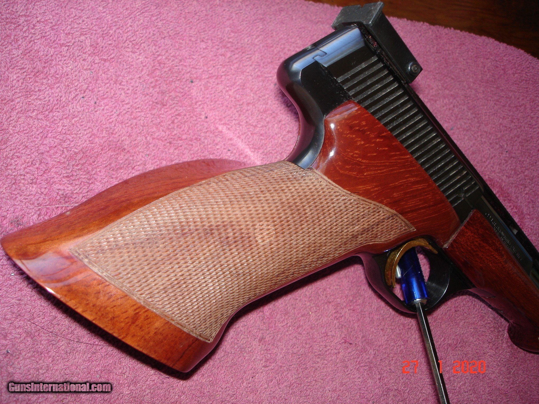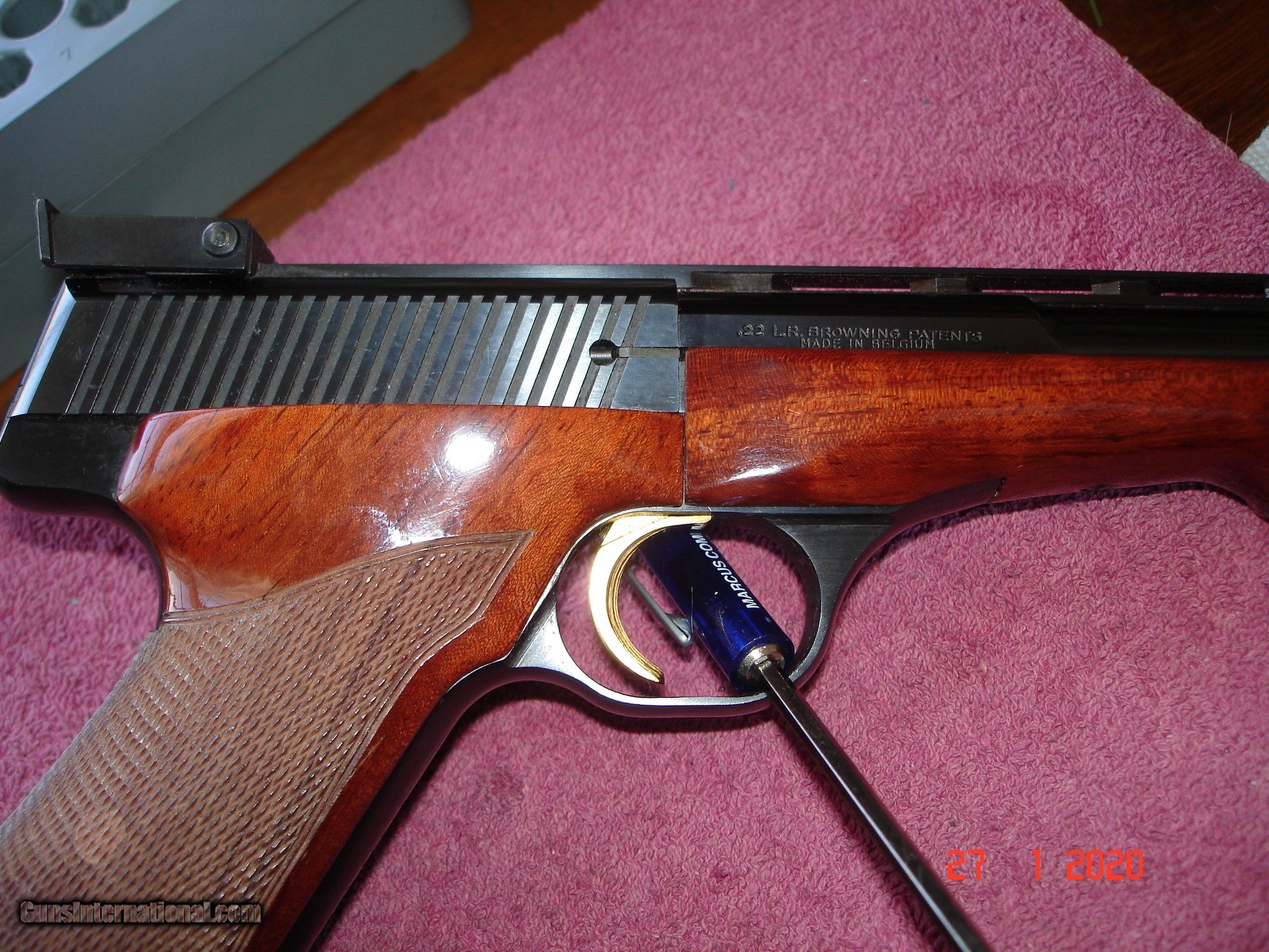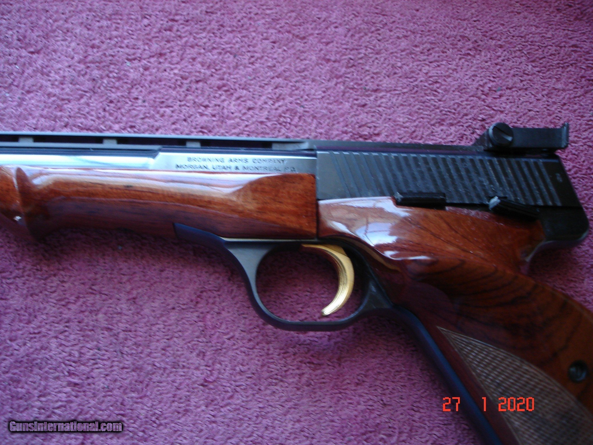 Description: We have for sale a Beautifull Browning Medalist .22LR. MFG 1974 in Belguim. Near Mint in Black Leatherette Browning Hard Case, Red velvet lind. Cartridge block, barrel weights cartridge derflector pin, screw driver, Dry Fire Pin. 6 3/4" BBl. Miror bore, fired very little. Wonderful Full Checkered Walnut Target Stocks. 10 Round Magizine. What a Nice all Original Medalist. I do have the owners manual but it is missing its cover. SER#. 61469T74 Ask about our Free Layaway,s! Shipping & Insurance to your FFL is $39.00 SOLD |