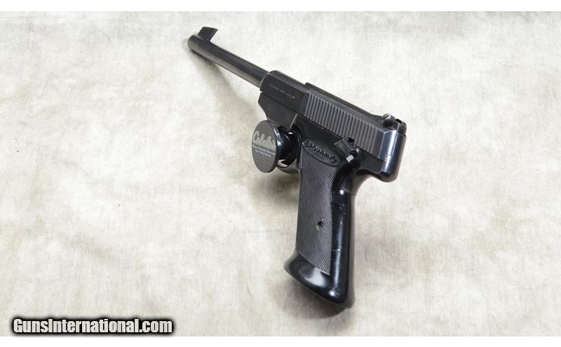 Description: Nice field and trail pistol with Patridge style post and notch sights, wrap-around black plastic grips, and two magazines. .22 Long Rifle SOLD Chambers: 10 Metal Condition: Very good. Wood Condition: Very good. Bore Condition: Shiny and bright. Barrels: 6-3/4 inch Triggers: Factory trigger. Butt Pad: Black plastic grips. Weight: 37 oz. Sights: Patridge and notch open sights. Item Location: Rogers |