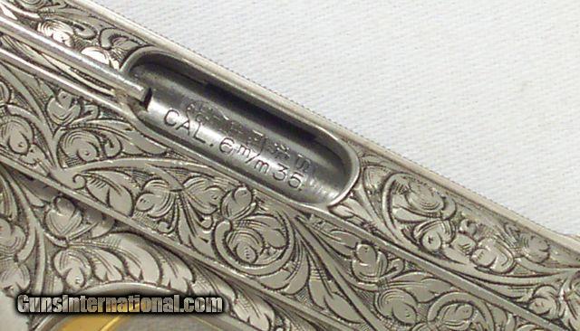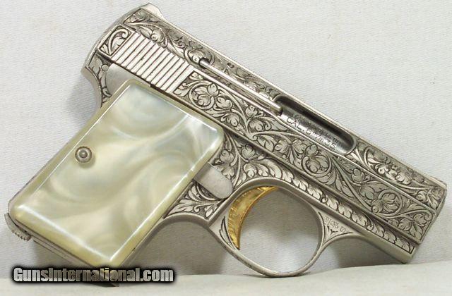 Description: Browning Baby 25 Renaissance; SN38906; made 1967; probably unfired; very light flecks of gold missing on trigger, otherwise near mint; PERFECT action, bore, grips; I AM SELLING MY PERSONAL COLLECTION!! ;FFL/C&R required for OUT OF STATE SHIPPING; All items shipped fully insured Priority Mail- -Hand guns $30 --Long guns $45-- Spurs $30-- Knives, Swords & Sabers $30—Grips $20 (Texas residents please add 6.75% sales tax); return policy: three days inspection from the date the item is received; full refund of shipping both ways ONLY IF THE ITEM IS MISREPRESENTED. Note: International sales only as laws permit. Will ship C&R eligible items to C&R license. Antiques shipped without license to anyone EXCEPT New Jersey and City of New York where a FFL is required. SOLD Curio/Relic: Yes Manufacturer: Browning Model: Renassance 25-1967 Serial Number: 389016 |