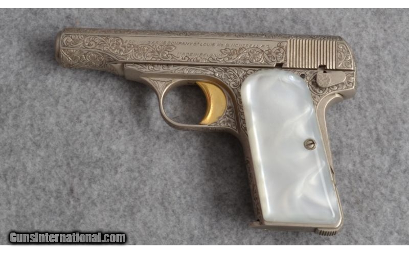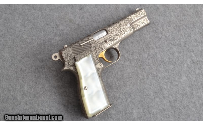Description: Sold as Set Only!! Beautiful 3 pistol engraved Browning set. Very Rare and hard to find. Still together in the original display case. Never been fired. Pistols have a heavy coat of protective film on them to prevent corrosion. SOLD Caliber Info: 9mm, .380auto, 25auto Chambers: Semi auto Pistols, 9mm is 15 round capacity, .380 has a 10 round capacity and 25auto has a 7 round capacity Metal Condition: Excellent Wood Condition: Excellent Bore Condition: Excellent Barrels: 4 inch 9mm, 3 Inch 380Auto and 2 Inch 25Auto Stock: Original grips Sights: All pistols have Notch rear sights and front blade sights Extras: Display case Item Location: Lone Tree, CO |