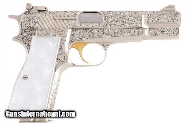 Description: Browning Hi-Power Factory Engraved Renaissance 9mm 4.75" 1976 Silver Gold - Used SOLD |