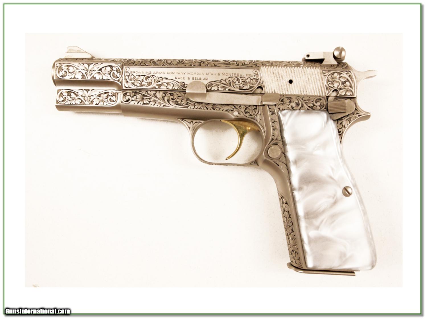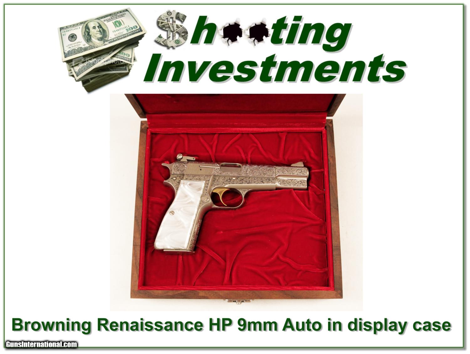 Browning HP 9mm Renaissance hand engraved Belgium made in case!