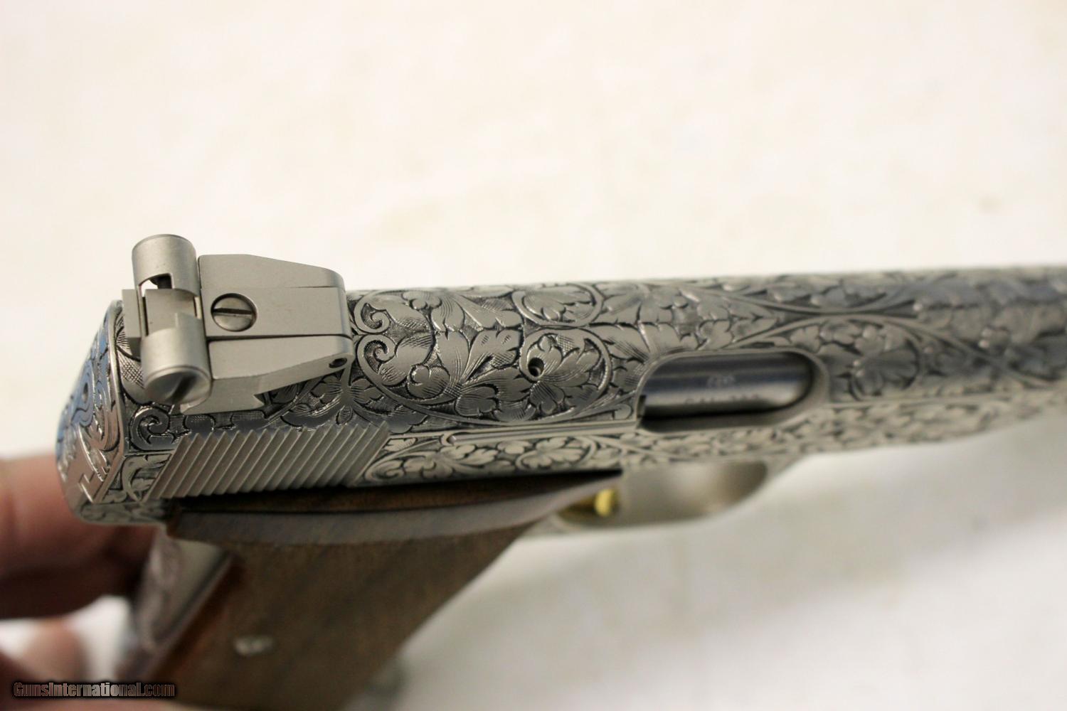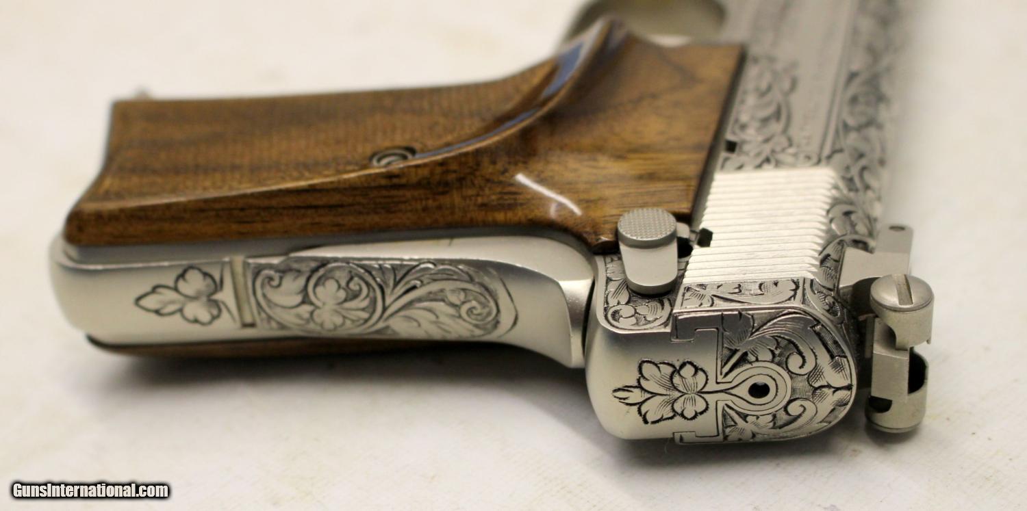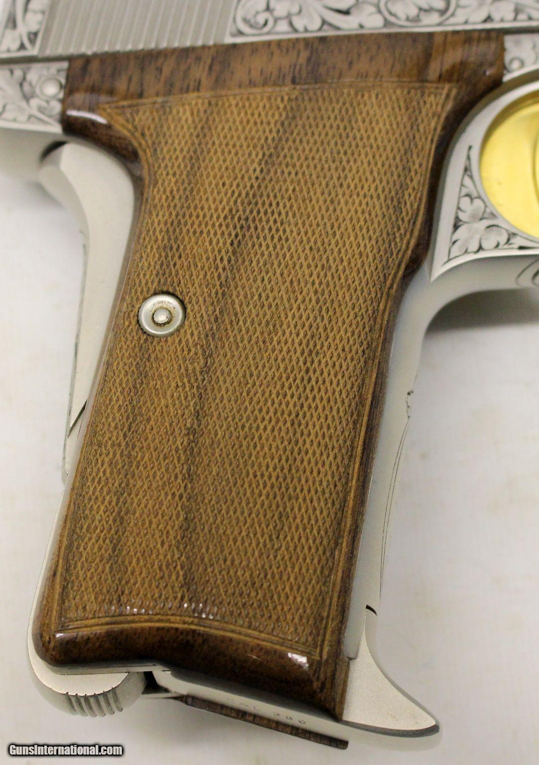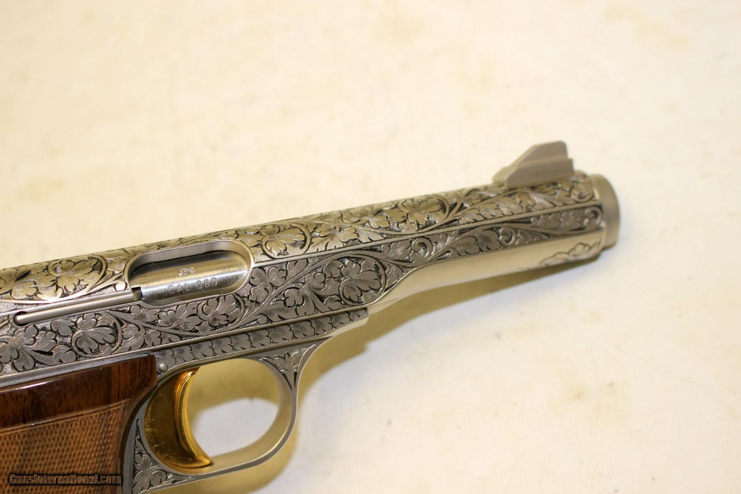 Description: We are offering for sale a scarce Browning RENAISSANCE semi-automatic pistol chambered in .380 ACP caliber. This gun is ABSOLUTELY MINT and appears UNFIRED. The entire gun features deep, decorative scroll engraving. PLEASE SEE PICTURES OF THIS BEAUTY! 4.5” barrel is MINT with stunning engravings. The bore is MINT; Bright, clean with excellent rifling. Gun appears unfired. Frame is MINT with engravings. Gun action works perfectly. Original wood grips are MINT. THIS IS AN ABSOLUTELY PERFECT EXAMPLE OF THIS COLLECTIBLE BROWNING! ***** PLEASE NOTE WE ONLY ACCEPT MASTERCARD AND VISA AS PAYMENT OPTIONS ****** Maker: Browning Model: Renaissance Caliber: .380 ACP SN#: 71N1052X Action: Semi-auto Barrel Length / Condition: 4.5”; MINT Muzzle Condition: MINT Slide Condition: MINT Frame Condition (ie. Bluing, Engraving, etc.): MINT Sights: Fixed front, rear adjustable Trigger/Trigger Guard: MINT Grip: MINT Magazine (1) factory magazines Magazine Release: Heel release PLEASE LOOK AT ALL PHOTOGRAPHS FOR CONDITION WE ONLY ACCEPT MASTERCARD AND VISA CLOSED MONDAYS AND TUESDAYS Please know the legality of any weapon in your state before . If we are unable to transfer the gun we will charge a 15% re-stocking fee. If the gun is returned for any reason, there will be a 12% restocking fee. Also, we are a PART TIME business. Our business hours are WEDNESDAY, THURSDAY, FRIDAY & SATURDAY 10-3. If you make an offer on Saturday night we may not get back to you for 24+ hours, please send us an email with any questions, and we will do our best to get back in a timely manner. Thank You. We are not a shop open to the public, no private viewings. We stand behind our descriptions, and gladly take returns, however we know based on the descriptions given, you will not be disappointed. No Face To Face Transfers! Please note: Clicking "buy" does not guarantee that this gun is yours, However clicking “Buy” will reserve this gun for you, if it hasn’t been sold in store. We will try to do our best to remove the posts as efficiently as possible, but sometimes delays may ensue. “Buy” is your safest bet to reserve a gun. Also please add 6.25% MA state sales tax (if from MA) and 3% credit card shop courtesy fee. After Clicking “buy” we will need the following from you, via email before we ship. 1: A copy of your preferred FFL’s license via email () 2: Your preferred method of payment (If Credit card: 16 digit, MM/YY exp date, 3 digit code Plus billing address) 3: Your Shipping information/ Your preferred FFL’s Shipping information. You have 5 business days to arrange payments and ffl information to us. Any purchase not completed within this time frame will be cancelled, and the ad will be put back active online. Please before calling with concerns read these conditions and meet them accordingly. SOLD |