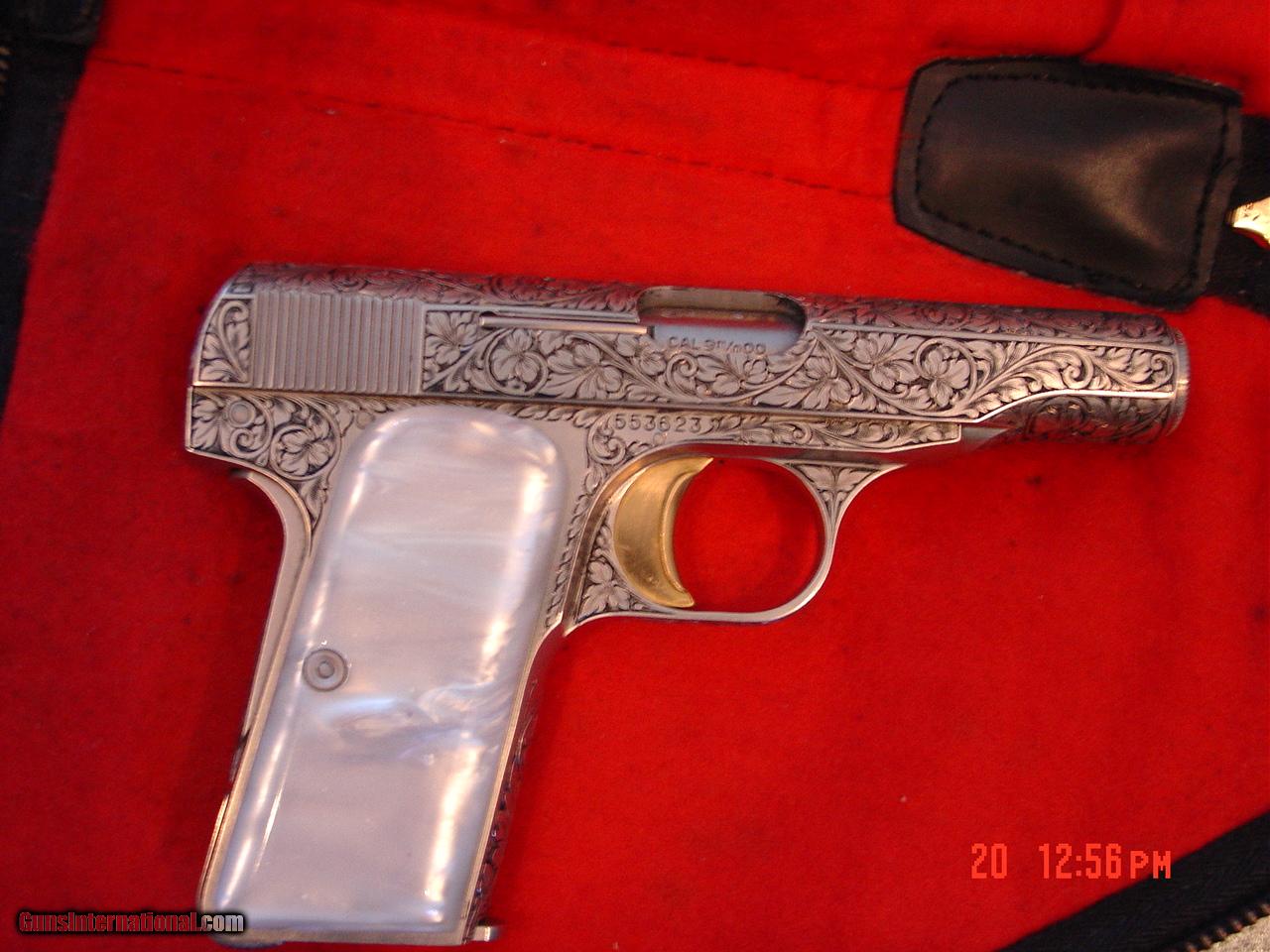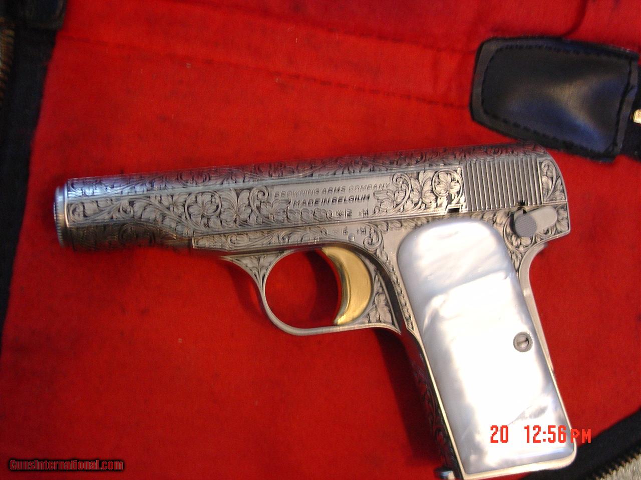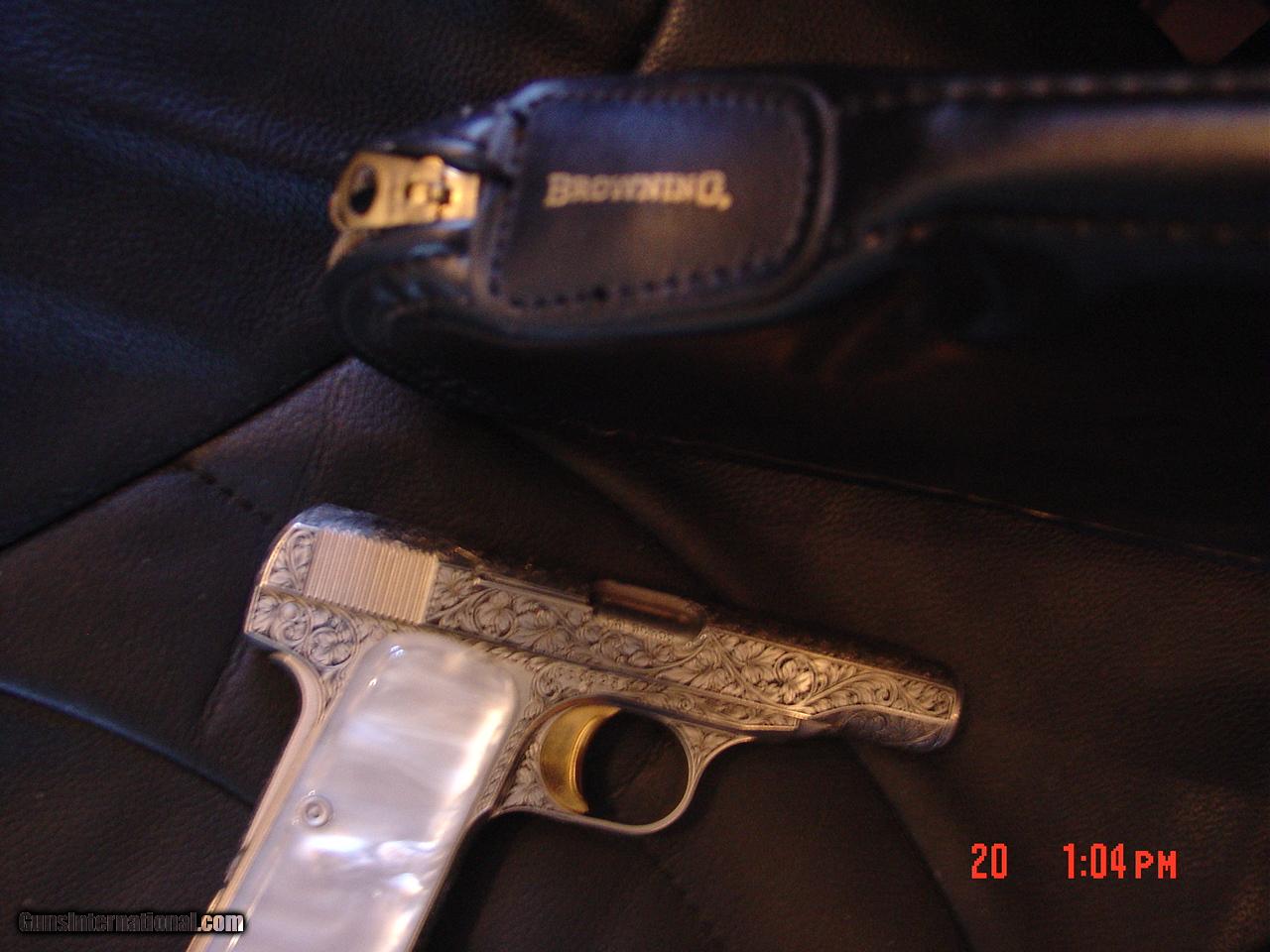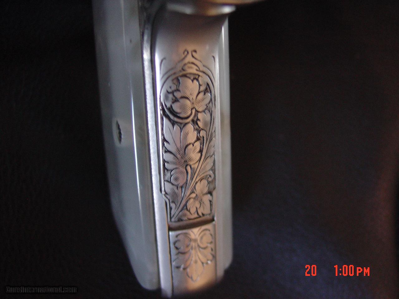 Browning Renaissance 380,factory engraved,satin nickel,in pouch,hammerless,grip safety-like new-awesome rare showpiece-no pitting !!