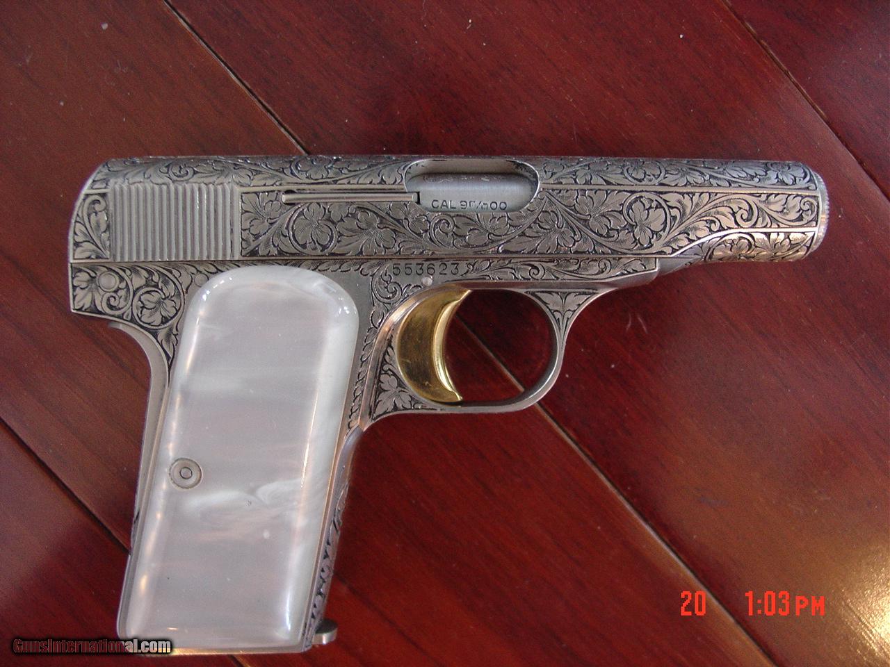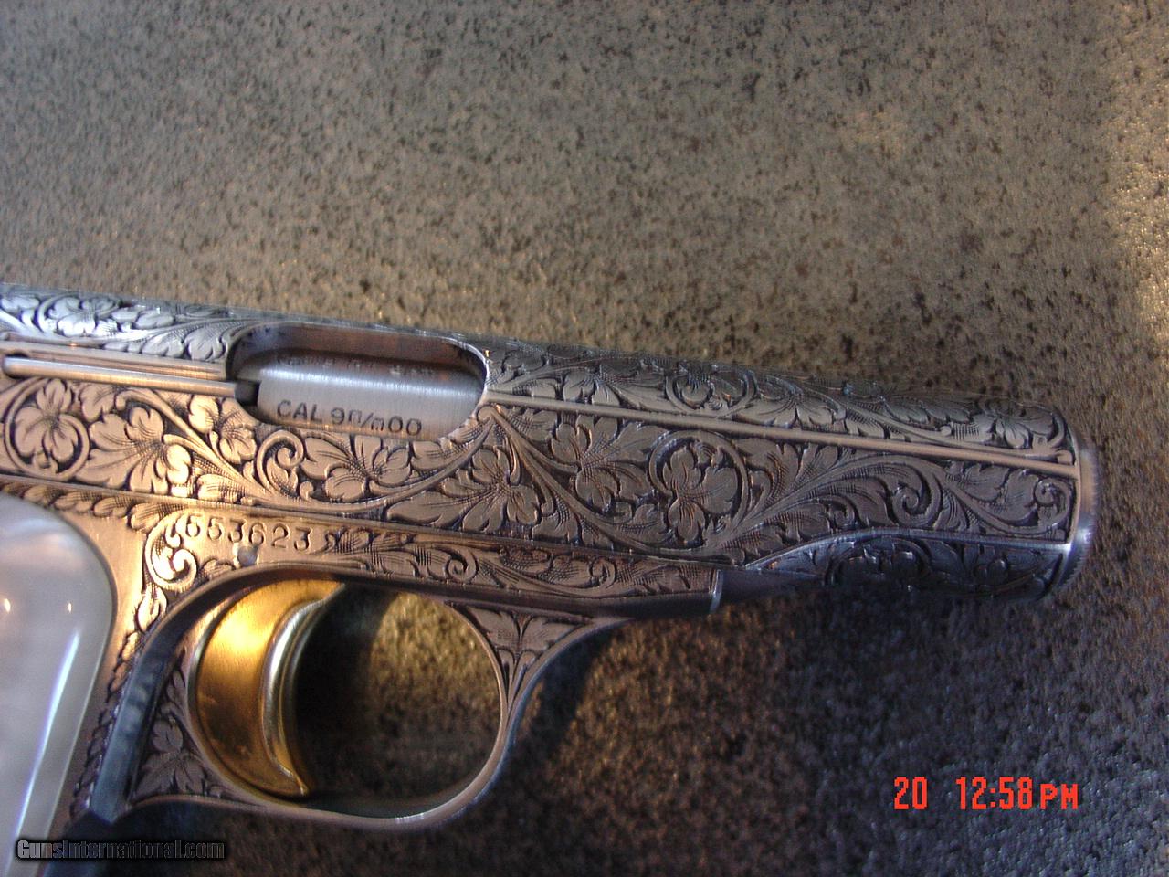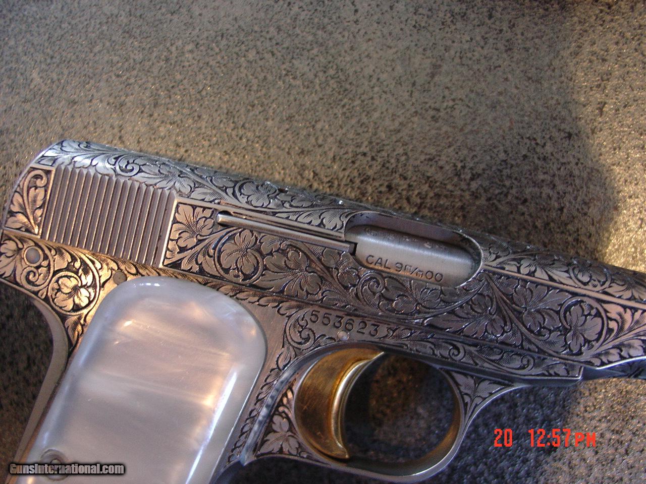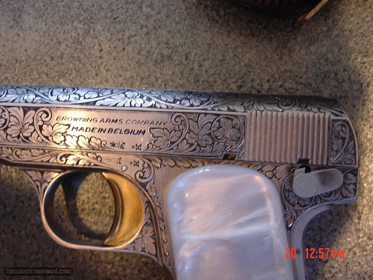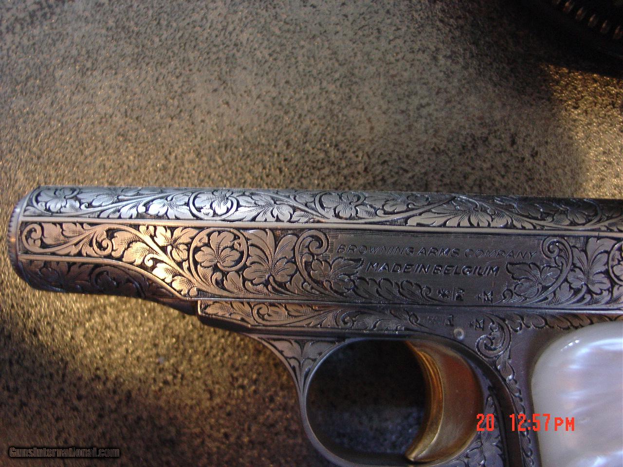 Browning Renaissance 380,factory engraved,satin nickel,in pouch,hammerless,grip safety-like new-awesome rare showpiece-no pitting !!