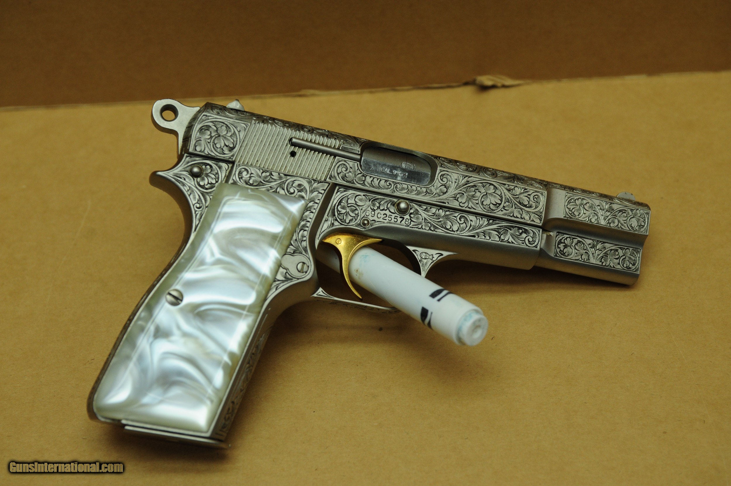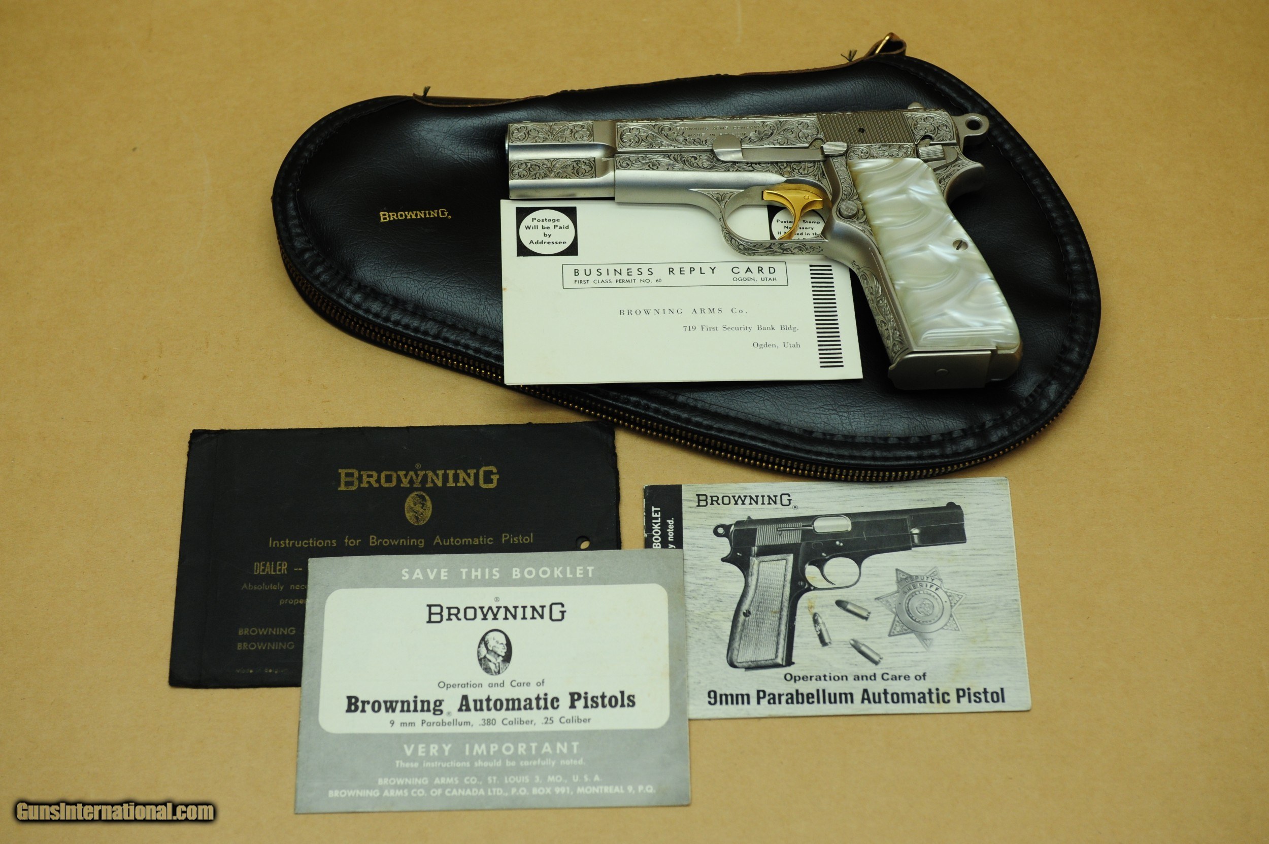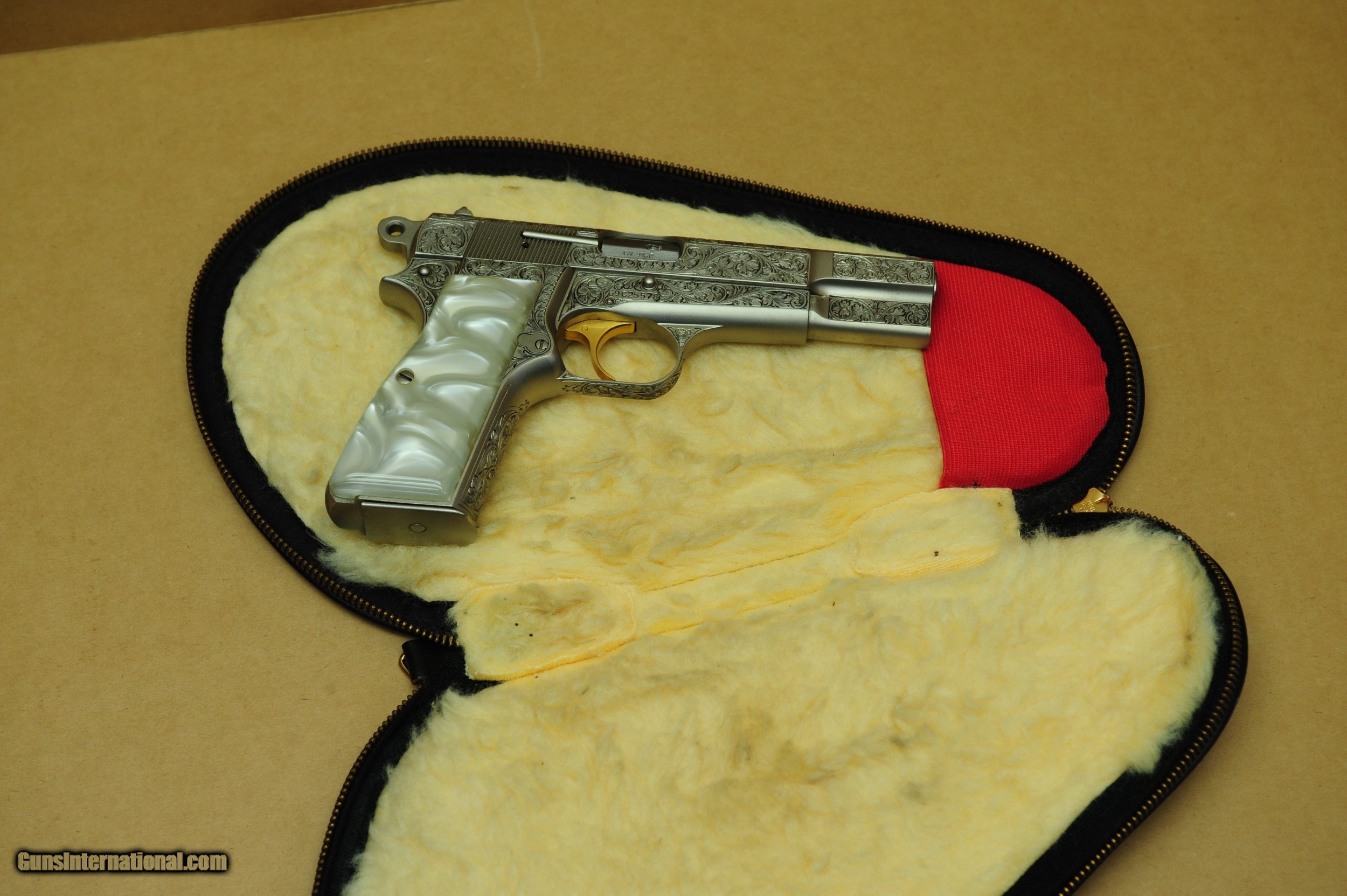 Description: Browning Renaissance Hi- Power. Has a Round hammer. Comes with a display case, Browning soft case, and booklet. Made in 1969. The pistol is in excellent unfired condition. $4195.00 plus shipping SOLD |