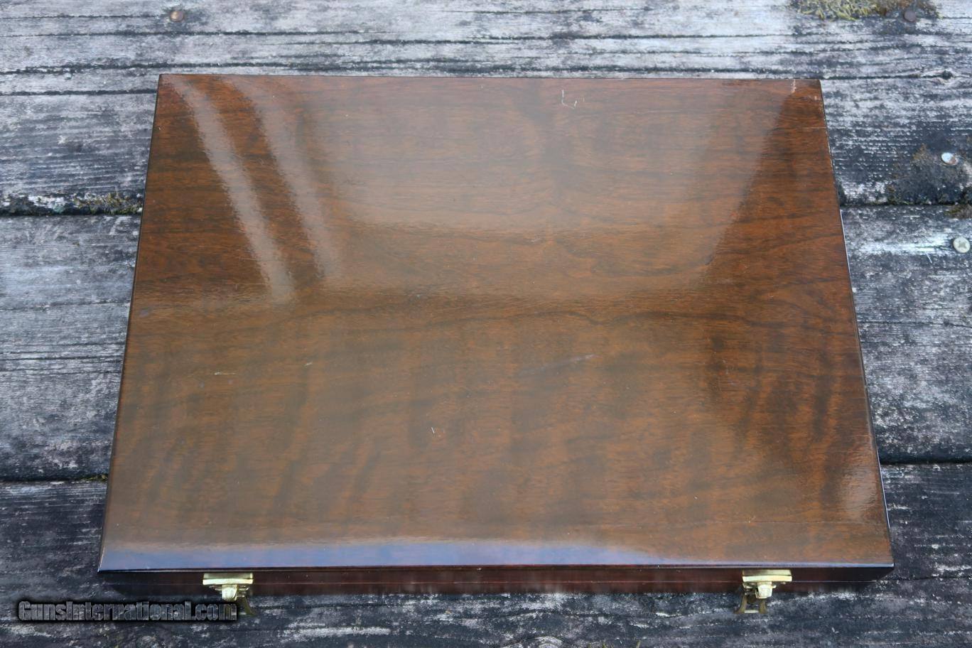 EXC with just the most minimal handling wear. Faded metal on the exposed chambers, and slight discoloration of the gold plated triggers. Mirror bore. Perfect manual mechanics. Far, far scarcer and more desirable than the more frequently encountered satin finished sets. A real gem!