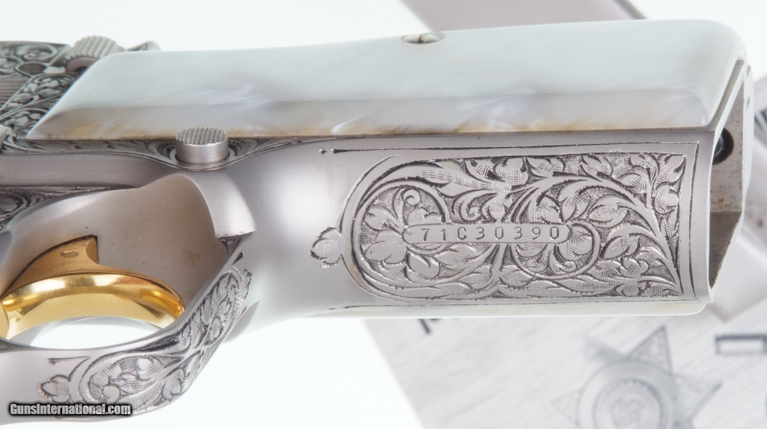 Description: This is a fantastic, near new Browning FN Renaissance Hi Power, spur hammer, made 1971,with instruction booklet. SN: 71C30390. Cal: 9mmP. Standard configuration Browning Renaissance HP with fixed front sight and drift adjustable rear sight. Spur hammer. Left side of frame marked with BAC address/MADE IN BELGIUM. Exposed barrel hood marked for caliber and proofed. Full serial number on front strap. Lavish deep and well inked scroll engraving as typical for these high quality presentation pistols. Smooth pearlite grips. Correct satin finish magazine with plunger detachable floorplate. Complete with factory instruction booklet but no pouch. Condition: Near new with only the faintest operational marks. Pearlite grips and retaining screws as new. Mirror bright bore. Perfect manual mechanics. A beautiful, near new, Renaissance Hi Power now nearly 50 years old. A real gem!! Call regarding our layaway plan at no extra charge. A HISTORIC INVESTMENT! Buyer pays $50.00 Shipping SOLD Manufacturer: Browning Model: Hi Power |
