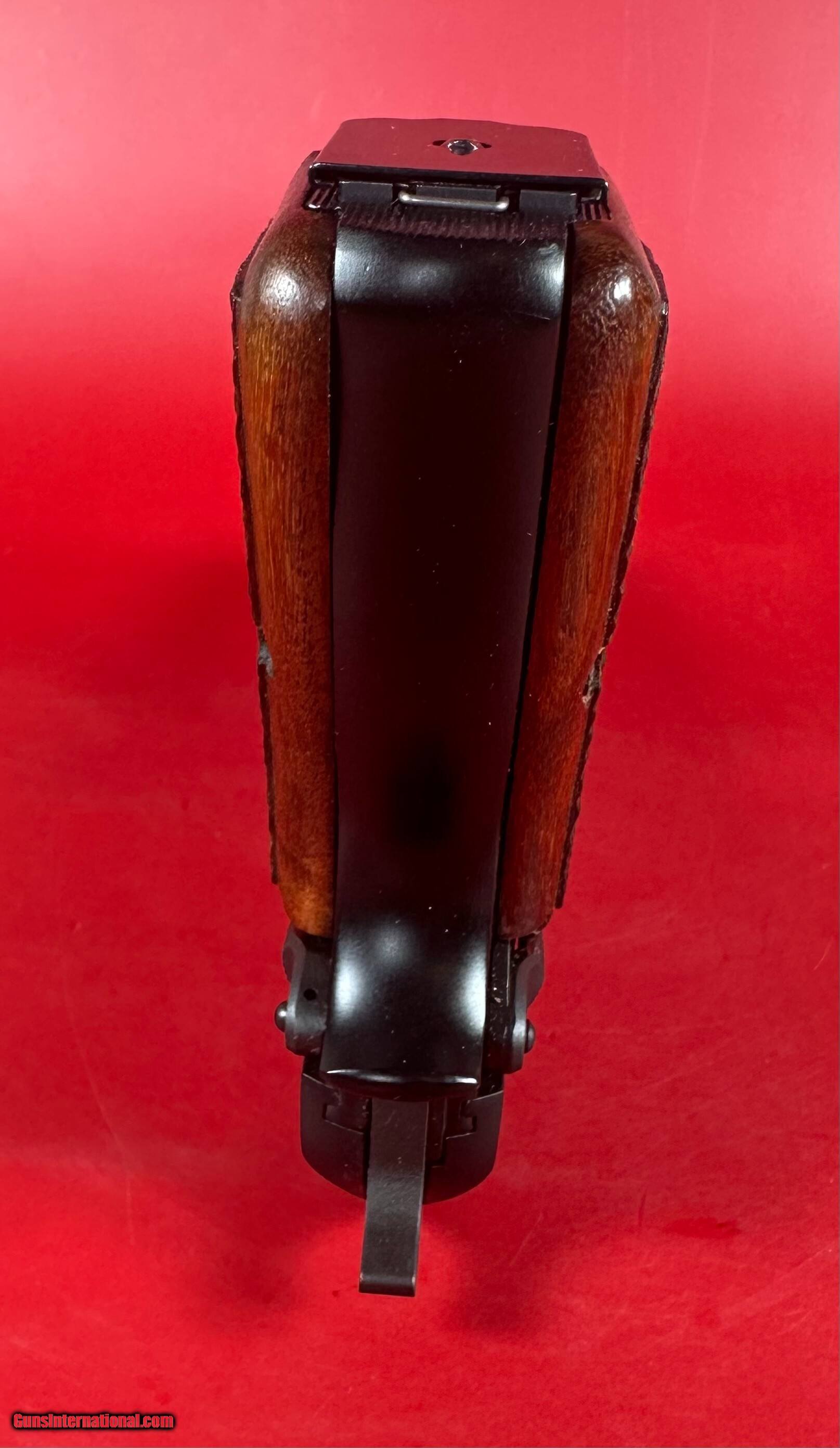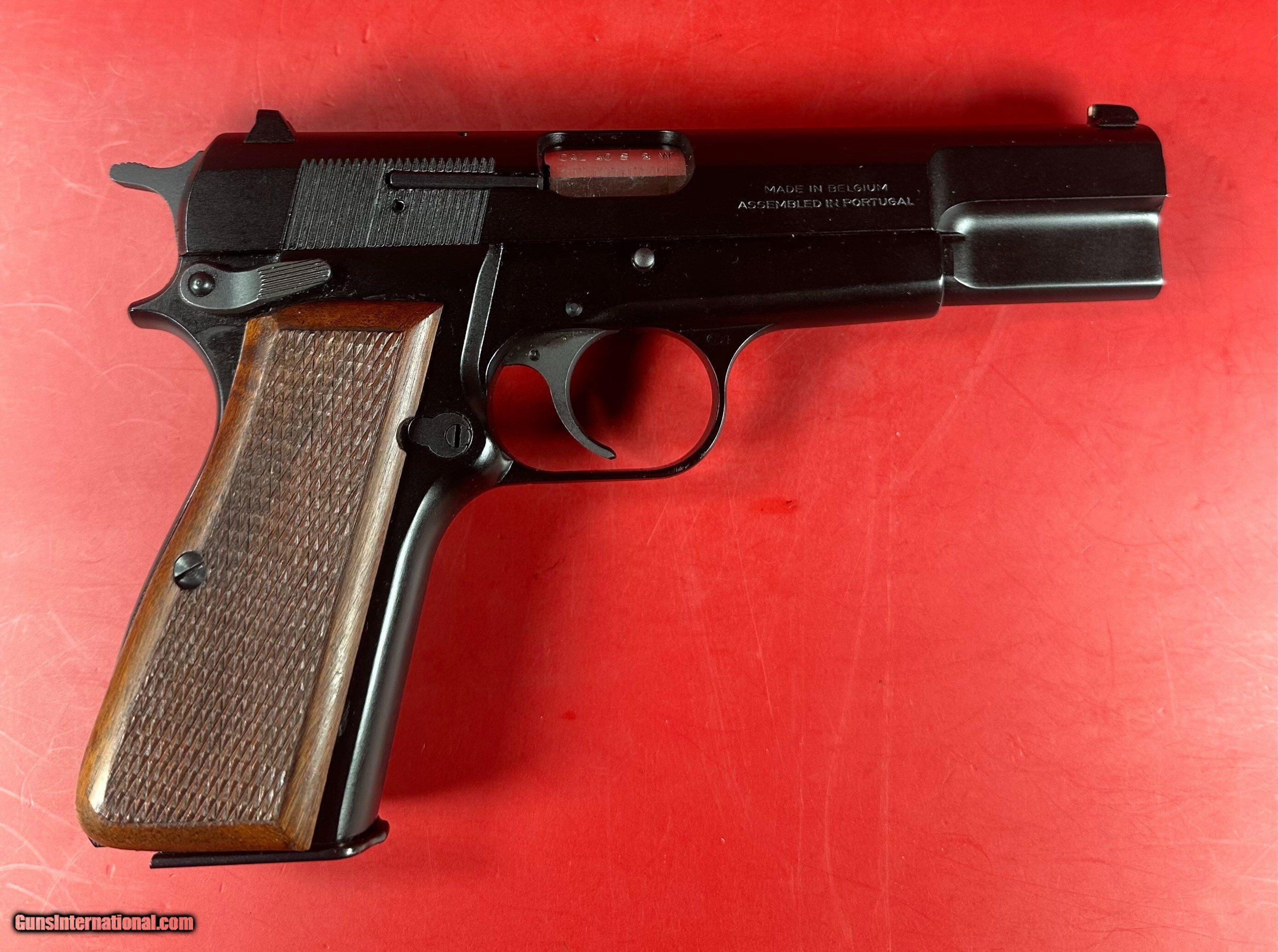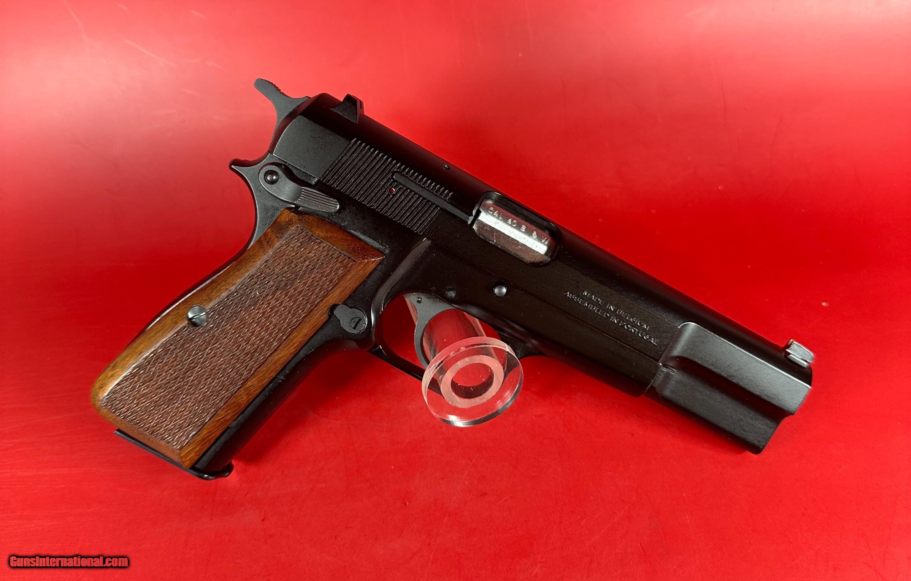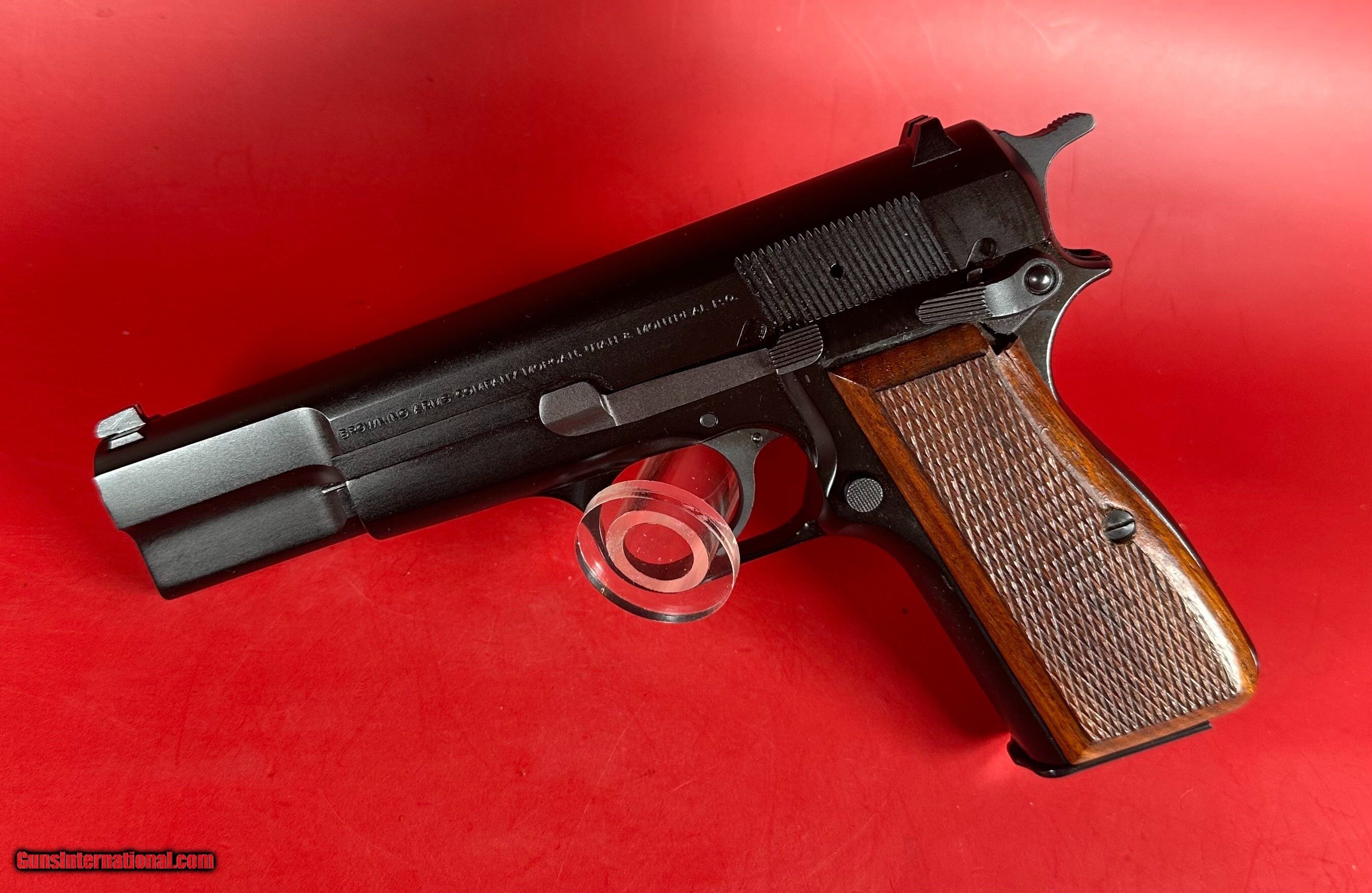 Description: LNIB 1994 Belgium made Browning Hi Power (Hi-Power, High Power). John Browning’s finest creation. 4.7" barrel. Excellent condition. Metal is 99+%. Barrel excellent. Walnut grips are 99+%. Sale includes two original 10rd magazines (legal in restricted states), factory manual and other paperwork and original hard case, serialized to the gun. The gun will be a great addition to any collection. Features include :