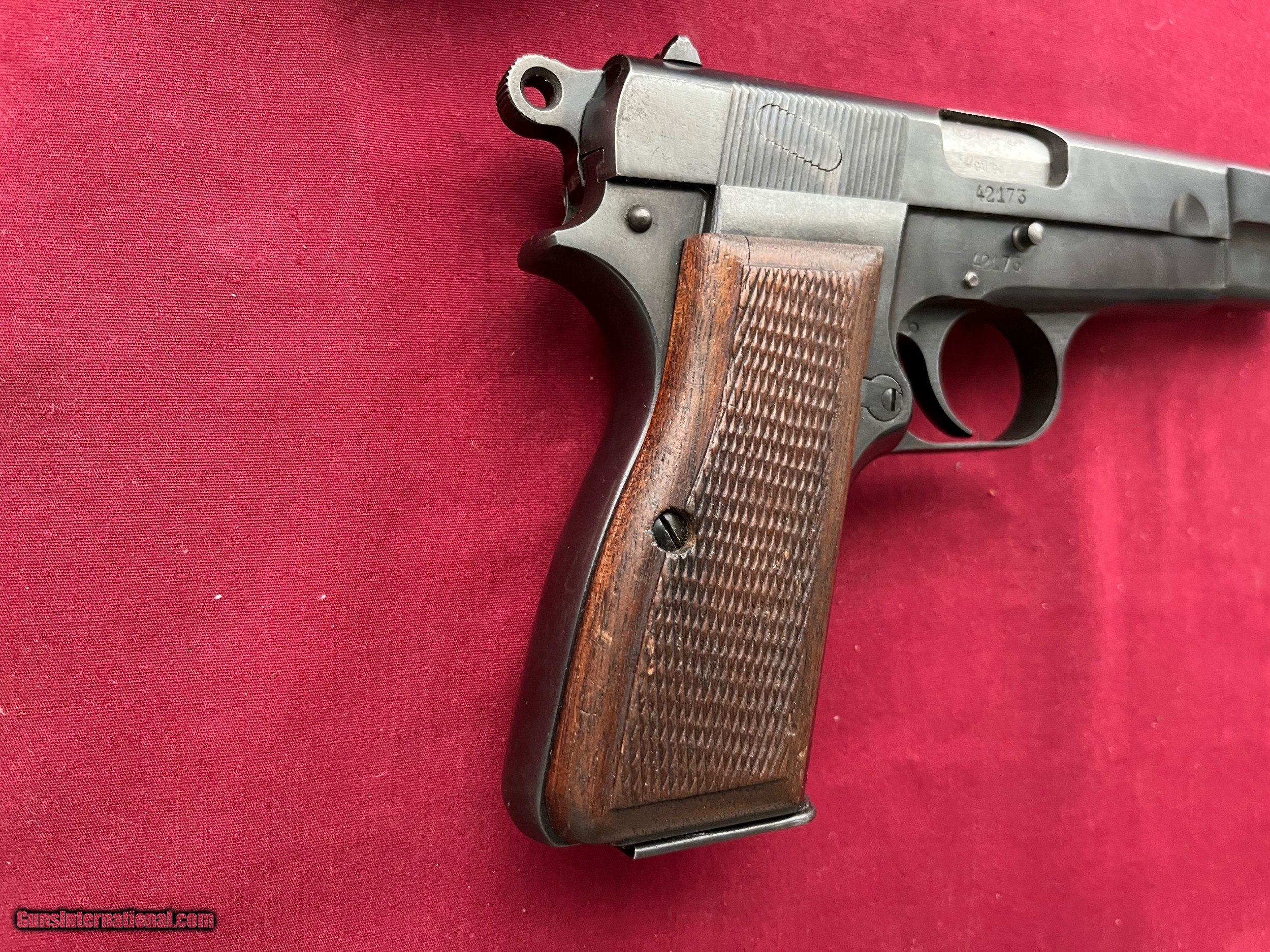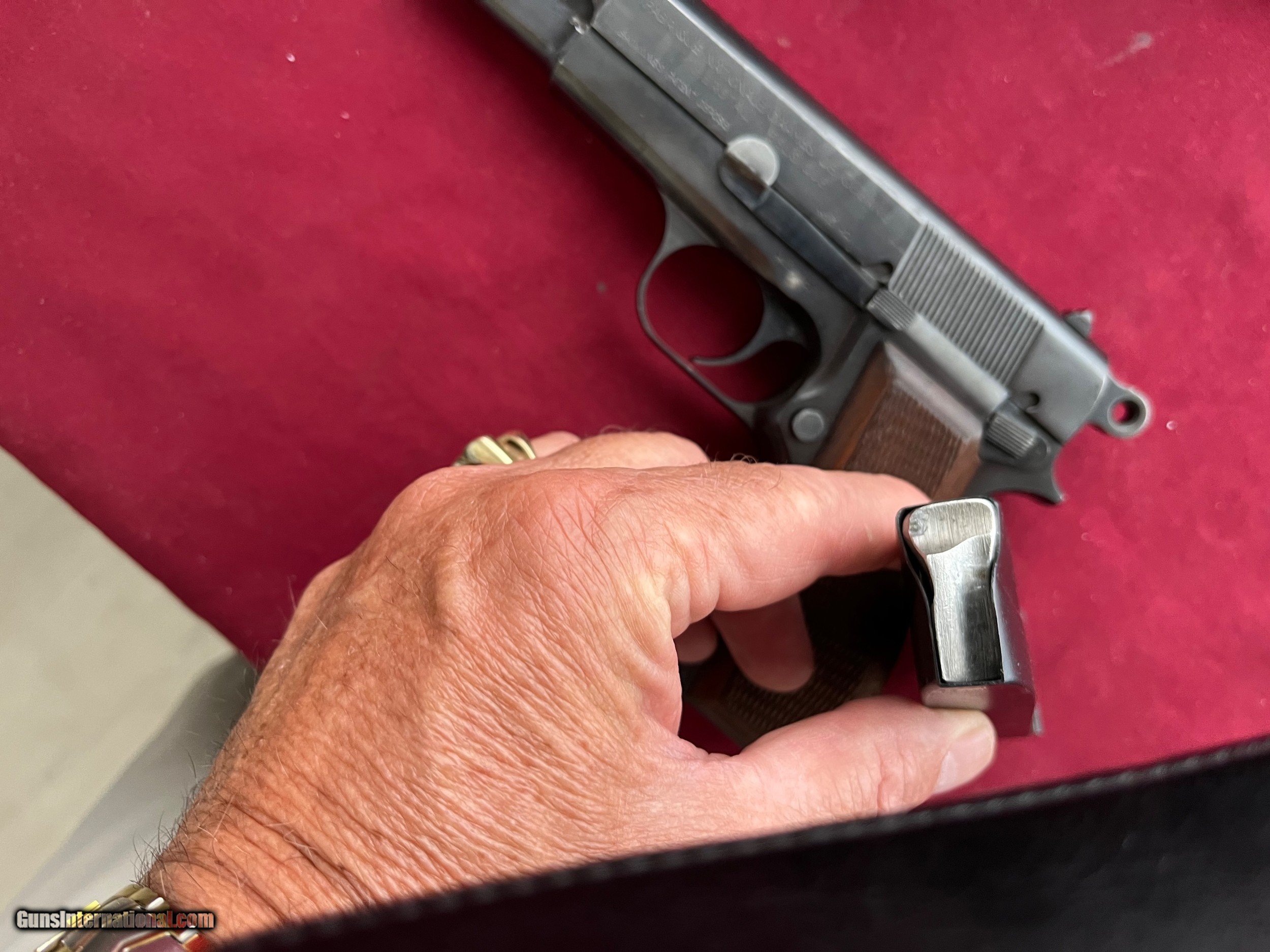 Description: BELGIUM BROWNING HIGH POWER SEMI AUTO PISTOL. CALIBER 9MM. SER# 42173. I BELEIVE THIS GUN WAS MADE IN 1952.BRIGHT BORE. VERY GOOD ORIGINAL BLUE FINISH . NICE SOLID RED BACK GRIPS. COMES WITH A BLACK POLICE HOLSTER AND A LATER SPARE MAGAZINE. EASTERN BRANCH FIREARMS ADD 35.00 SHIPPING – HANDGUN USPS PRIORTY MAIL ADD 35.00 SHIPPING – LONG GUNS GROUND SHIPPING Questions e-mail or call Glen at Eastern Branch Firearms 207-215-5021 TERMS – PLEASE READ BEFORE I DO NOT HAVE A LAYAWAY OPTION ( WE ACCEPT CREDIT CARDS ) -- I GET ALOT OF REQUEST FOR TRADES, I WOULD PERFER NOT TO DO TRADES ON MY INTERNET LISTINGS PAYMENT OPTIONS- We accept money orders, cashier’s checks , bank checks. sorry no personal checks. We accept all major credit cards please add 3% to the ’s cash discount price.(Maine Residents to pay 5% sales tax) .Handguns and long guns do need to be shipped separate. PLEASE do not send payment via FED EX . USPS & UPS are fine. Thank you. We include a signed copy of our FFL with each firearm shipped. SAFTY NOTICE- Buyer is solely responsible for determining that a used gun is safe to shoot. The firearms offered have not been test fired but have been given a visual inspection only for purposes. It is a requirement that every used firearm is inspected by a qualified gunsmith before firing. By , the buyer agrees to hold seller harmless against damages, injury, or death caused by defective merchandise. RETURN POLICY- All firearms come with a 3-day non firing , non messing with ( turning srews ,taking apart,removing parts, scoping. firing, cleaning or messing with in anyway) inspection/return privilege.Inspection is based on a visual review of the gun to confirm the gun is in the condition stated. In the case of a return, buyer pays all shipping charges & if paid for with a credit card buyer absorbs the 3% credit card charges . So please ask questions BEFORE you bid. Thanks for Looking and Good Luck!! U.S. sales only, no exports…this includes antiques. I will ship to third party for exporting SOLD Curio/Relic: Yes |