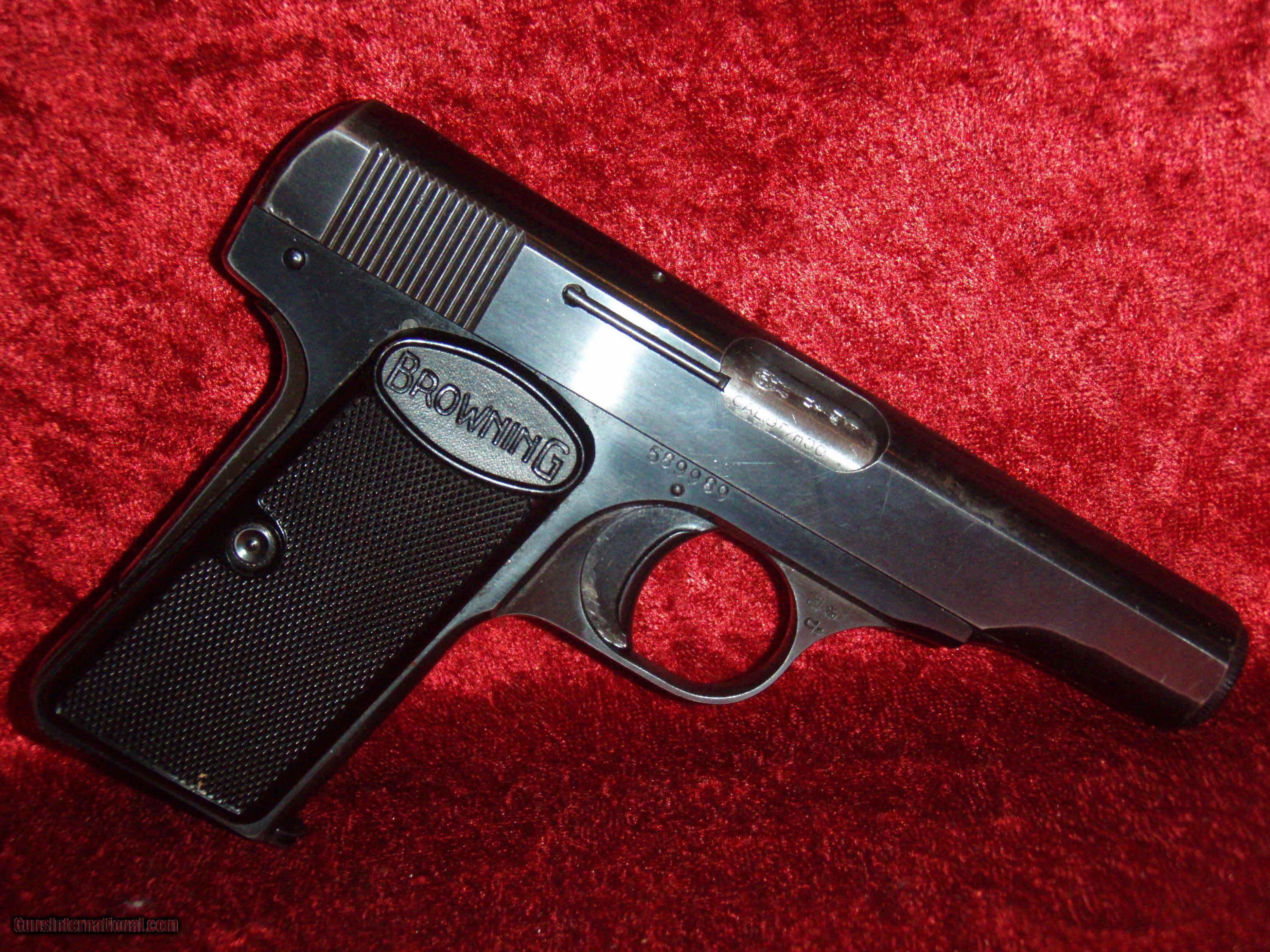 Description: Browning Model 1910 manufactured in Belgium, .380 acp pistol Very nice addition to your Browning collection!! Browning Model 1910 manufactured in Belgium, .380 acp pistol, very good condition, the grips are excellent (free of crack, chips). Gun shows a little bluing wear by the mag release, trigger, and right side of barrel. Please see pictures!!