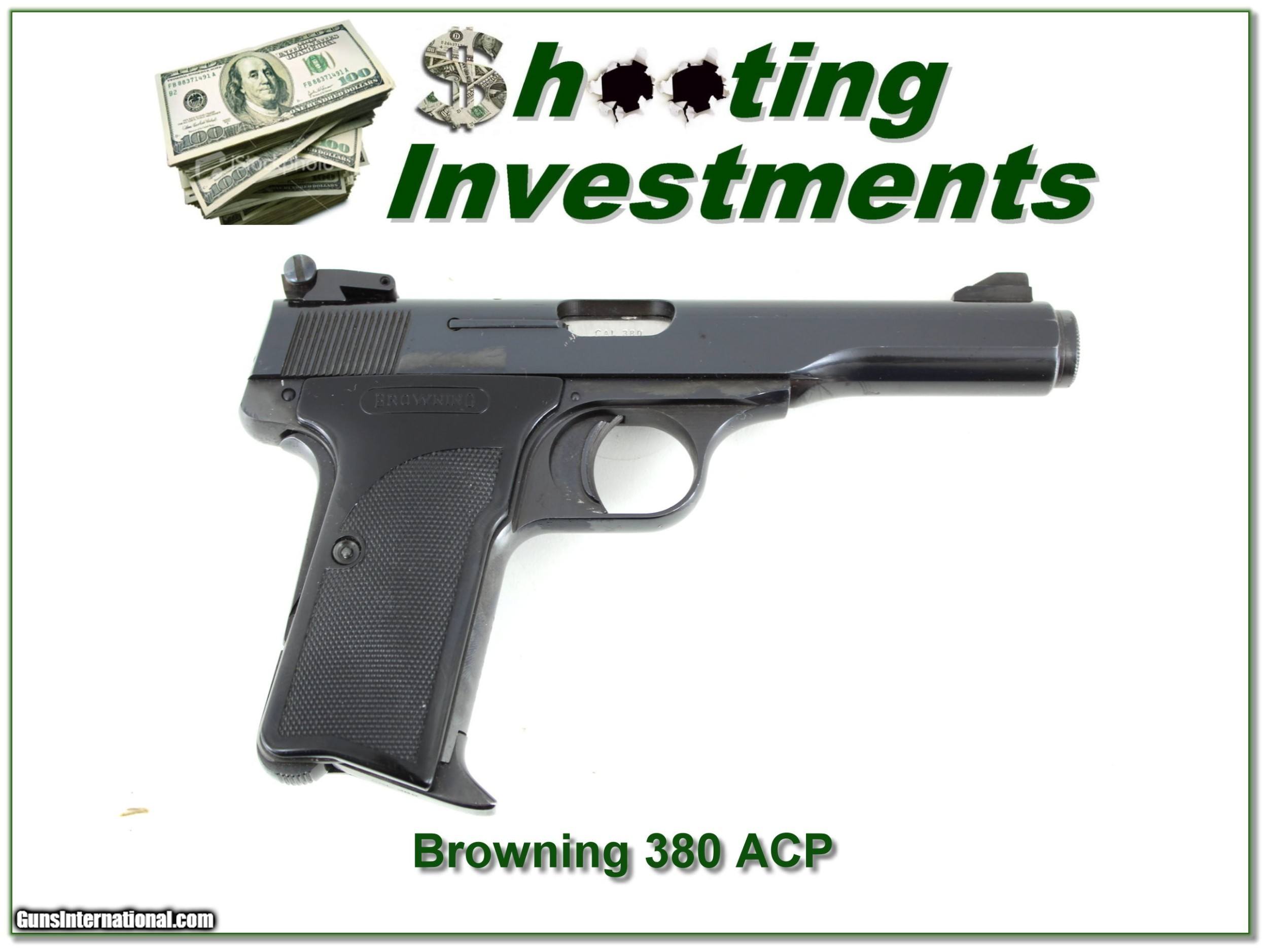 Description: This is a 1972 made Browning 380. It is in excellent condition with just a couple spots on the slides. It has factory adjustable sights as seen. It will make a fine Belgium Browning for your collection or to use. It is a Shooting Investment. I am selling this one on consignment and as such lay-a-way can’t be used. It does of course have the standard 3-day inspection. Shipping and insurance is $39. Please email me with any questions or larger pictures. (Consign your quality firearms with Shooting Investments for only 12%! Let me know if you have any you would like to sell!) 21-0221 Payment: Payment is by Money Order, Cashiers Check or Personal Check. I can now also accept Credit Cards (MasterCard, Visa, Discover & American Express) with a 3% convenience fee. Shipping: The shipping charge will be listed in each description. It is $39 for most firearms. Some heavy guns or those insured for over $2000 will be higher. Shipments to Alaska and Hawaii are higher because air shipment is required. Most firearms are shipped on Tuesday and Thursday and usually in 5 days of receipt of payment. We package all shipments carefully and insure them. Optics are shipped Priority Mail and most other non-firearm shipments are shipped First Class. Returns: Our return policy is simple. If for any reason you are not pleased with your purchase, you may return your item for a full refund of purchase price. Ammunition cannot be returned. It is important to us that you are happy. Guns cannot be fired or dissembled before returning them and they must be returned in the same condition as received. Notification of a return must occur with-in 3 days of receipt at your dealer. Shipping, convenience and dealer fees are not refundable and are the responsibility of the buyer. Lay-a-way: If needed, we offer a 60 day lay-a-way option on most firearms. It is 1/3 now, 1/3 in 30 days and 1/3 in 60 days. Lay-a-way firearm sales are final and if not completed the first payment cannot be returned. Consigning your firearms with Shooting Investments: We will help you get top dollar for your firearms. While most local guns shops charge 20% or more, our fee is only 12% with a minimum of $75. At your local gun shop it might take months to sell. Selling on-line provides instant access to thousands of interested buyers. You won’t find any other on-line dealer willing to sell your firearms for only 12% or listing every gun on 3 separate s. Selling through an House typically costs the seller 15% and the buyer an addition 15% (so 30%) and you have to wait several months to sell and longer to receive funds. If properly priced, we will sell your firearms in a few weeks. Send us an email or give us a call and we’ll explain how easy it is for you to get top dollar. Trading: Trading for use is really just buying your gun to re-sell. If you have a gun you want to trade, please email a picture and we will let you know what we can give or it. You will always get more if we sell it for you on consignment. Help for California Buyers: We are happy to ship to California. It is the buyer’s responsibility to make sure any item you buy is legal in your state. We are also happy to help with your purchase of a firearm from someone other than us. If you see a gun you would like to buy but the seller can’t or won’t ship to California they can ship to use and we’ll then ship it to your California dealer. The cost for this service is only $30 + shipping. Let us know if we can help! SOLD |