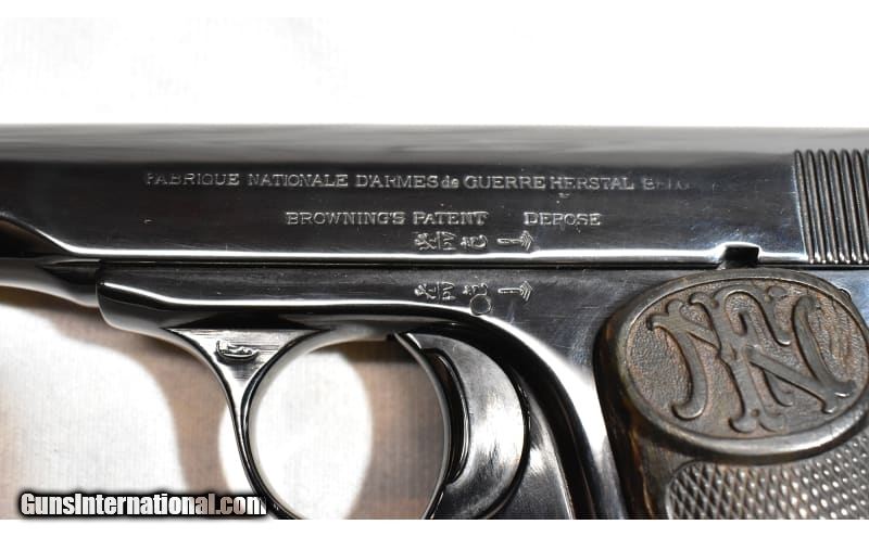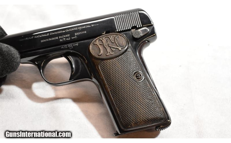 Description: Browning 1910. FN produced. .380 ACP SOLD Curio/Relic: Yes Chambers: N/A Metal Condition: Excellent Wood Condition: Great Bore Condition: Excellent Barrels: N/A Triggers: N/A Stock Dimensions: N/A Fore End: N/A Butt Pad: N/A Weight: 2LBS Sights: N/A Chokes: N/A Item Location: Colorado Springs, CO |