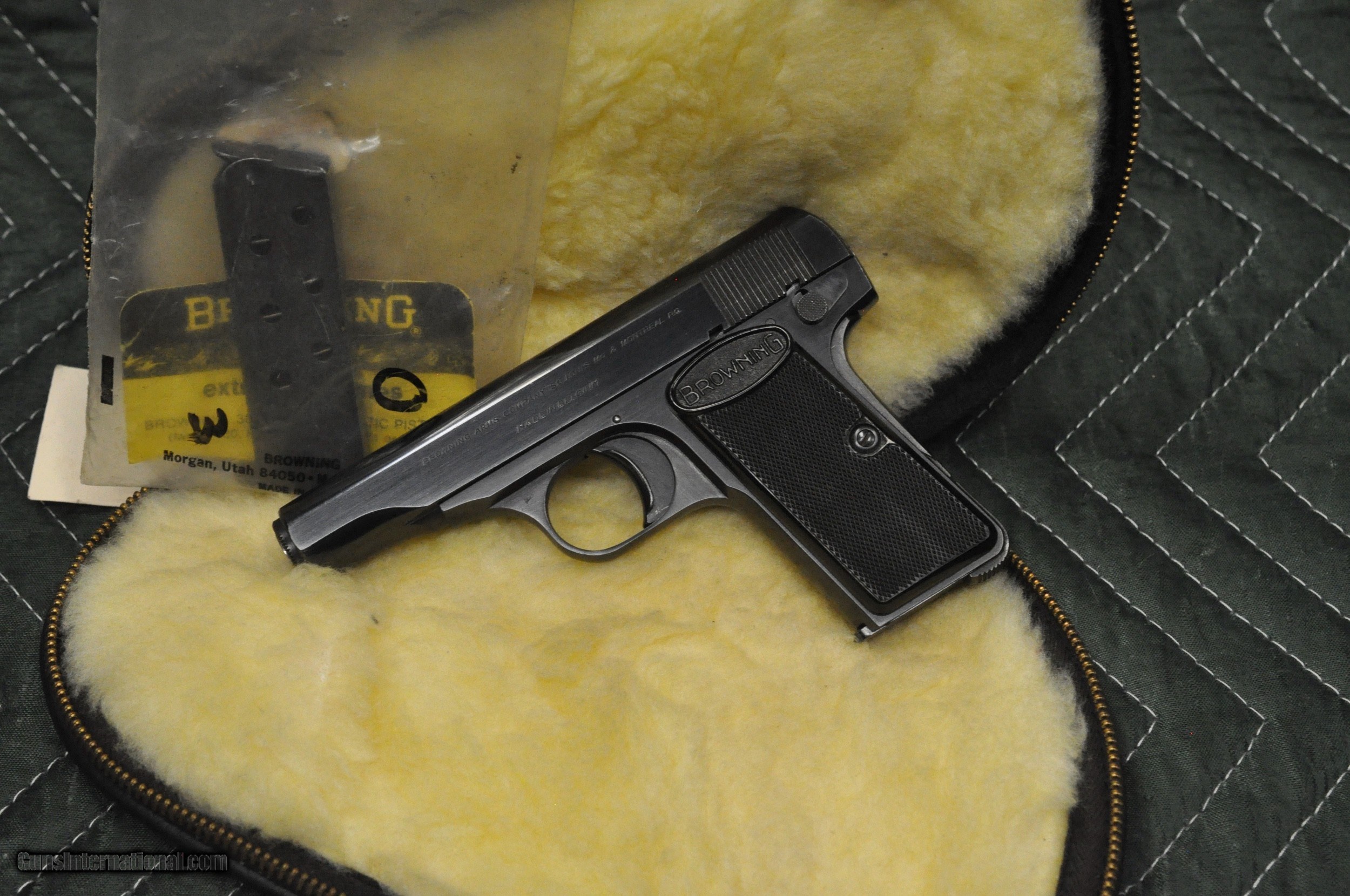 Description: SOLD PENDING FUNDS The pistol is in 98%/99% condition -- there is no wear at the muzzle or on the high edges. If it appears there is wear it is reflections on the gun surface. I have not seen one like this in a very long time. The bore is excellent. The pistol comes with a Browning pistol rug and a second magazine stamped FN with the magazine's original packaging label. The photos are high resolution and should provide excellent close-ups. SOLD Handgun Caliber: .380 ACP (9x17mm Browning Short) |