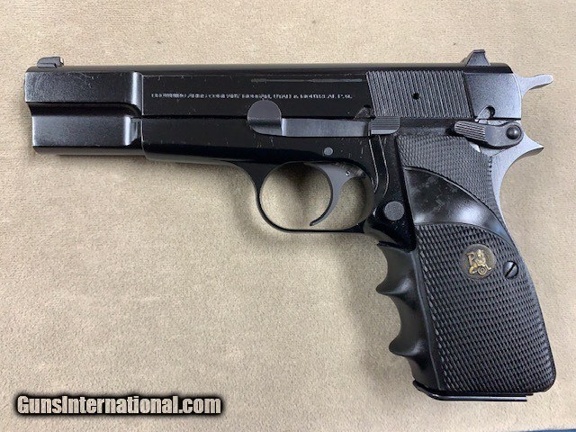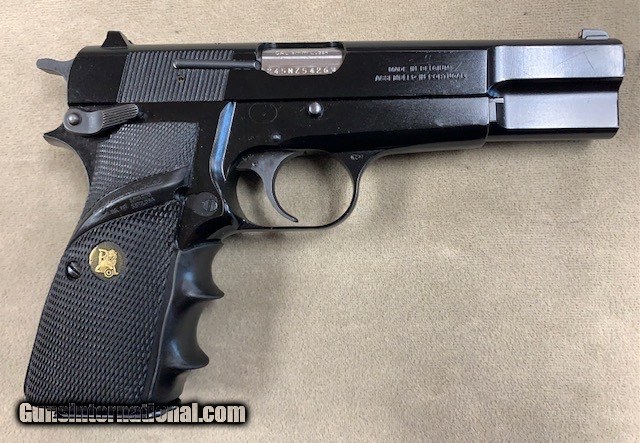 Description: A just about like new Browning Hi Power 9mm Pistol that was manufactured in 1990 and that just came to us from an estate purchase. Pistol is about perfect in all respects with a perfect bore and chamber and the correct Browning Hi Power magazine that came with the pistol. Owner has installed Pachmayr presentation grips as shown which really make the pistol great to shoot. No rug or manual but very hard to improve upon. SOLD Handgun Caliber: 9x19mm Parabellum (9mm Luger, 9x19mm NATO) |