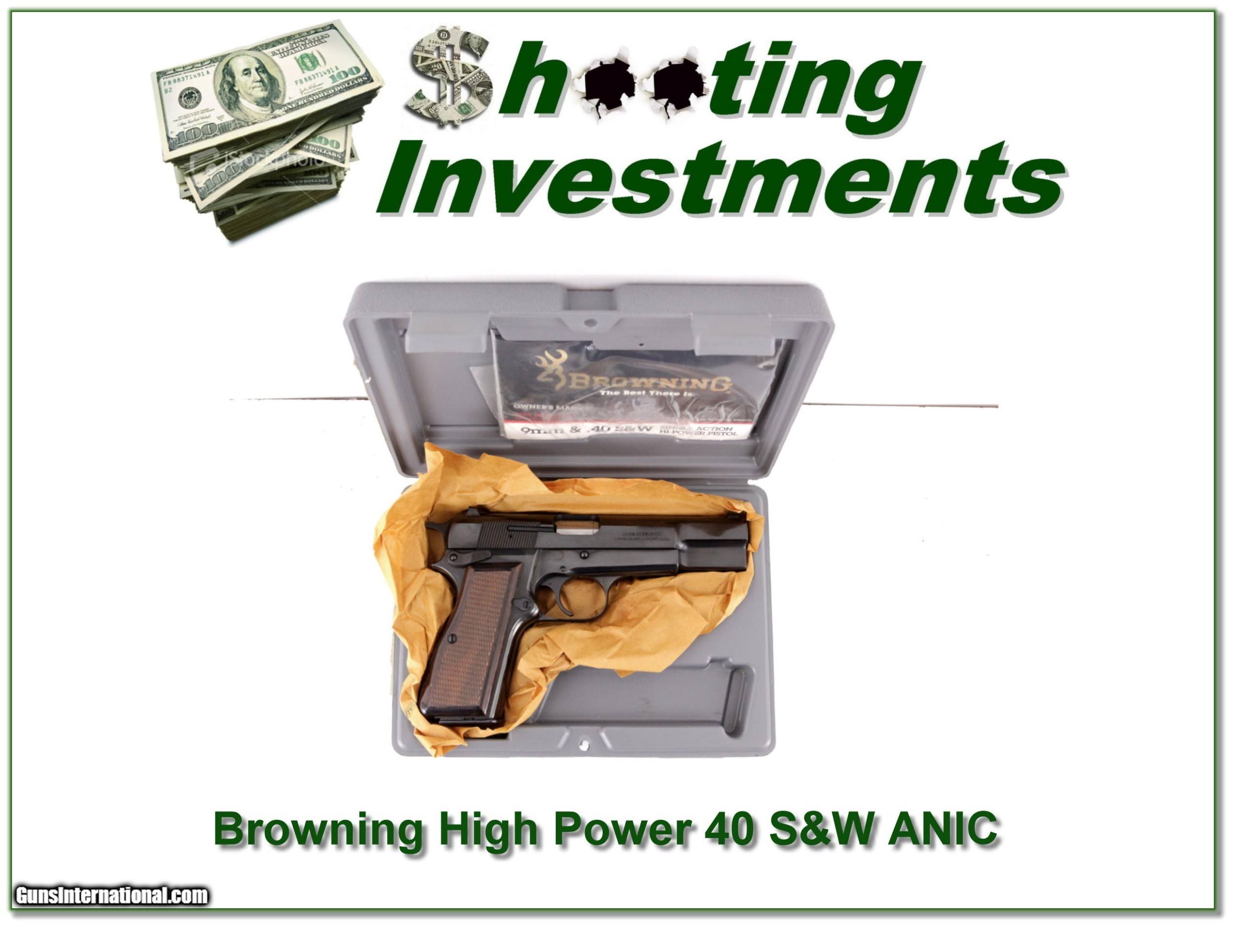 Description: This is a no longer made and harder to find Browning Hi-Power in 40 Smith & Wesson. I believe it is unfired and there are no marks or signs of use. It comes as seen in case with all papers. It will make a fine addition to your collection! Shipping with insurance is $39. Please email me with any questions or larger pictures. (Consign your quality firearms with Shooting Investments for only 12%! Let me know if you have any you would like to sell!) 19-0180 Payment: Payment is by Money Order, Cashiers Check or Personal Check. I can now also accept Credit Cards (MasterCard, Visa, Discover & American Express) with a 3% convenience fee. PayPal can be used for some items but never for firearms. Shipping: The shipping charge will be listed in each description. It is $39 for most firearms. Some heavy guns or those insured for over $2000 will be higher. Shipments to Alaska and Hawaii are higher because air shipment is required. Most firearms are shipped on Tuesday and Thursday and usually in 5 days of receipt of payment. We package all shipments carefully and insure them. Optics are shipped Priority Mail and most other non-firearm shipments are shipped First Class. Returns: Our return policy is simple. If for any reason you are not pleased with your purchase, you may return your item for a full refund of purchase price. Ammunition cannot be returned. It is important to us that you are happy. Guns cannot be fired or dissembled before returning them and they must be returned in the same condition as received. Notification of a return must occur with-in 3 days of receipt at your dealer. Shipping, convenience and dealer fees are not refundable and are the responsibility of the buyer. Lay-a-way: If needed, we offer a 60 day lay-a-way option on most firearms. It is 1/3 now, 1/3 in 30 days and 1/3 in 60 days. Lay-a-way firearm sales are final and if not completed the first payment cannot be returned. Consigning your firearms with Shooting Investments: We will help you get top dollar for your firearms. While most local guns shops charge 20% or more, our fee is only 12% with a minimum of $75. At your local gun shop it might take months to sell. Selling on-line provides instant access to thousands of interested buyers. You won’t find any other on-line dealer willing to sell your firearms for only 12% or listing every gun on 3 separate s. Selling through an House typically costs the seller 15% and the buyer an addition 15% (so 30%) and you have to wait several months to sell and longer to receive funds. If properly priced, we will sell your firearms in a few weeks. Send us an email or give us a call and we’ll explain how easy it is for you to get top dollar. Trading: Trading for use is really just buying your gun to re-sell. If you have a gun you want to trade, please email a picture and we will let you know what we can give or it. You will always get more if we sell it for you on consignment. Help for California Buyers: We are happy to ship to California. It is the buyer’s responsibility to make sure any item you buy is legal in your state. We are also happy to help with your purchase of a firearm from someone other than us. If you see a gun you would like to buy but the seller can’t or won’t ship to California they can ship to use and we’ll then ship it to your California dealer. The cost for this service is only $30 + shipping. Let us know if we can help! SOLD |
