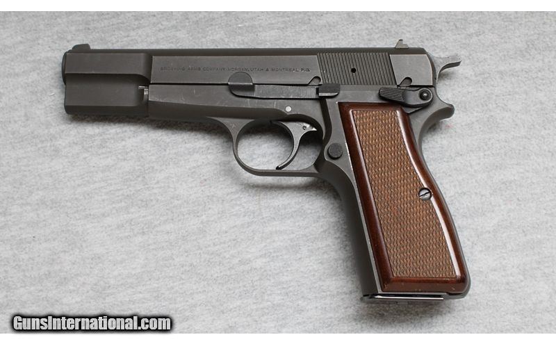 Description: Excellent, light wear and handling marks. Classic Browning High Power pistol with 4 3/4" barrel, single action trigger, ambi manual safety, factory wood grips. 9mm Luger SOLD Chambers: Semi auto Metal Condition: Excellent Wood Condition: Grips are excellent Bore Condition: Bright Barrels: 4 3/4 Triggers: Single action Butt Pad: Wood grips Sights: Iron sights Item Location: La Vista, NE |