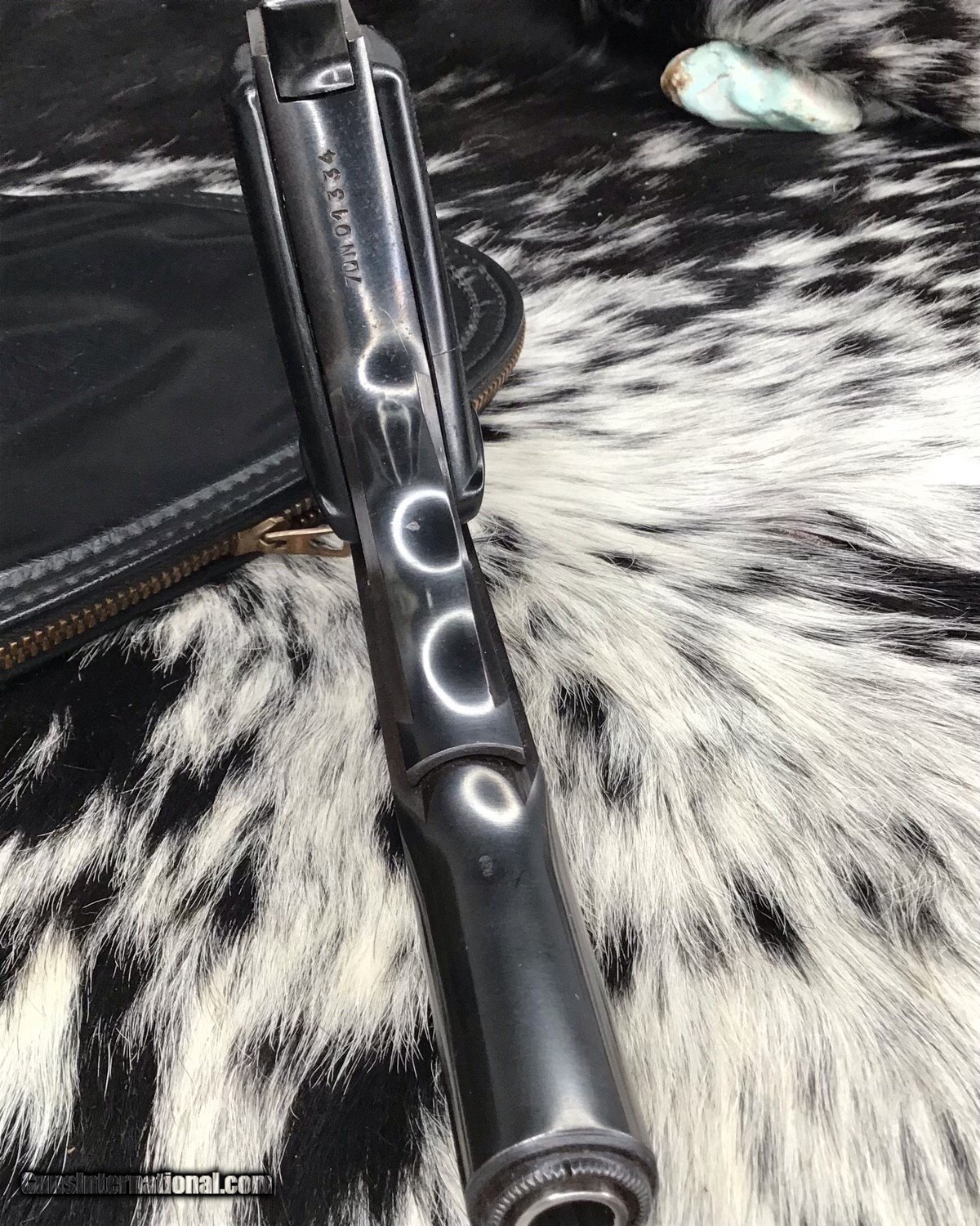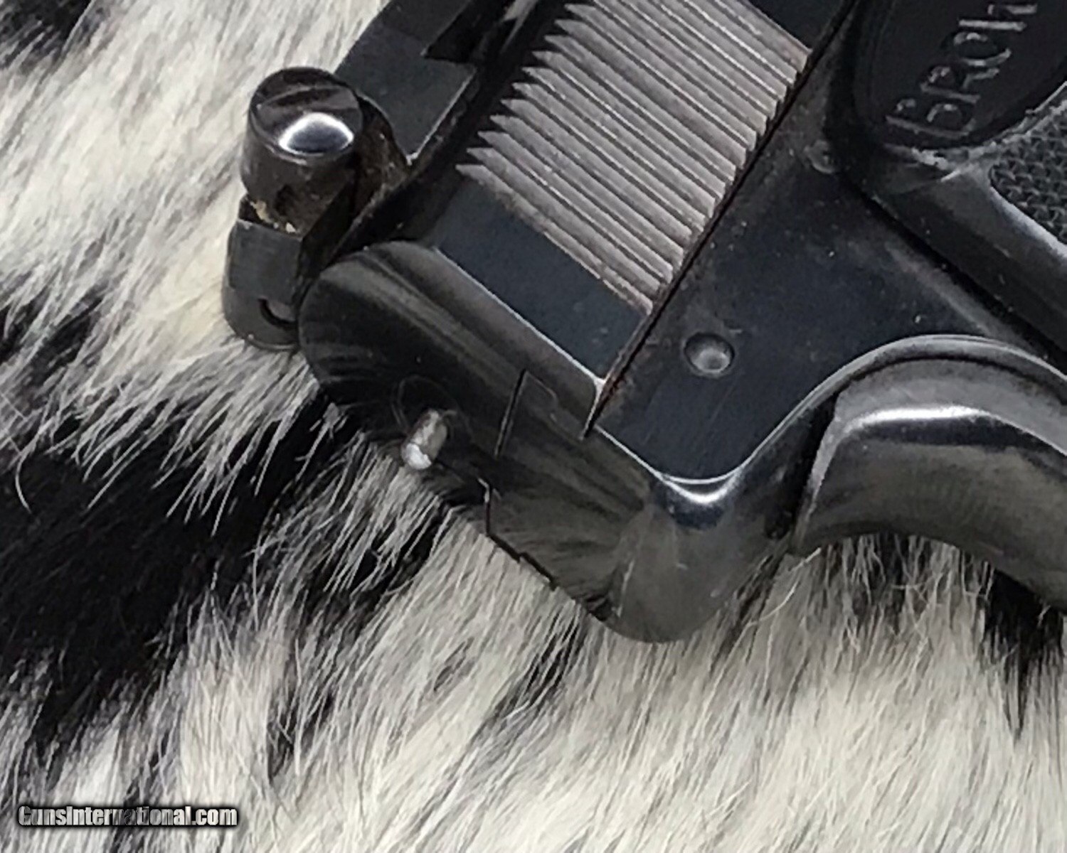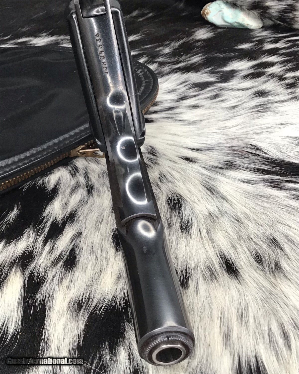 Description: Browning 1910/22 semi auto pistol chambered in.380 acp. Original blued finish remains at 95%. Adjustable sights ,two original mags and Browning factory zipper pouch. Loaded chamber indicator protruding pin on rear of slide. In 1955, the Browning Arms Company introduced the Model 1910 pistol for the American market as the Model 1955. Made in Belgium, this model was virtually identical to the European model except for the markings and grips. Importation ceased in 1968 due to the passage of stricter gun-control laws in the variant of the Model 1910 was known variously as the Model 1922 or 1910/22. This was a larger model with a longer barrel (113 mm), slide extension, and a longer grip frame to accommodate an extra two rounds. This model was aimed at military and police contracts and many examples were produced for various agencies. Add 3% if paying with credit card. God Bless America from a proud American, and a Viet Nam Vet , thankful for our freedoms.. paid for by the Blood ,Sweat and Tears of our brave men and women in uniform. Ten Below Firearms is a Veteran owned and operated business. We specialize in out of production models of high quality firearms. We love to ship! If you are out of state or can't make it to our store, just give us a call! Handguns normally ship for $30 and Long guns for $40 to $55 for extra length long guns. That's 2-3 day USPS Priority shipping, Delivery conformation and with tracking number. Optional Postal insurance is additional $1.50 per $100 and highly recommended. SOLD Curio/Relic: Yes Handgun Caliber: .380 ACP (9x17mm Browning Short) Manufacturer: Belgium Browning Model: 1910/1922 Serial Number: 70N01334 Barrel Length: 113 mm Condition: 95% or better Metal Condition: Very good Bore Condition: Very good Action: Semi-auto Finish: Blued Sights: Adjustable |