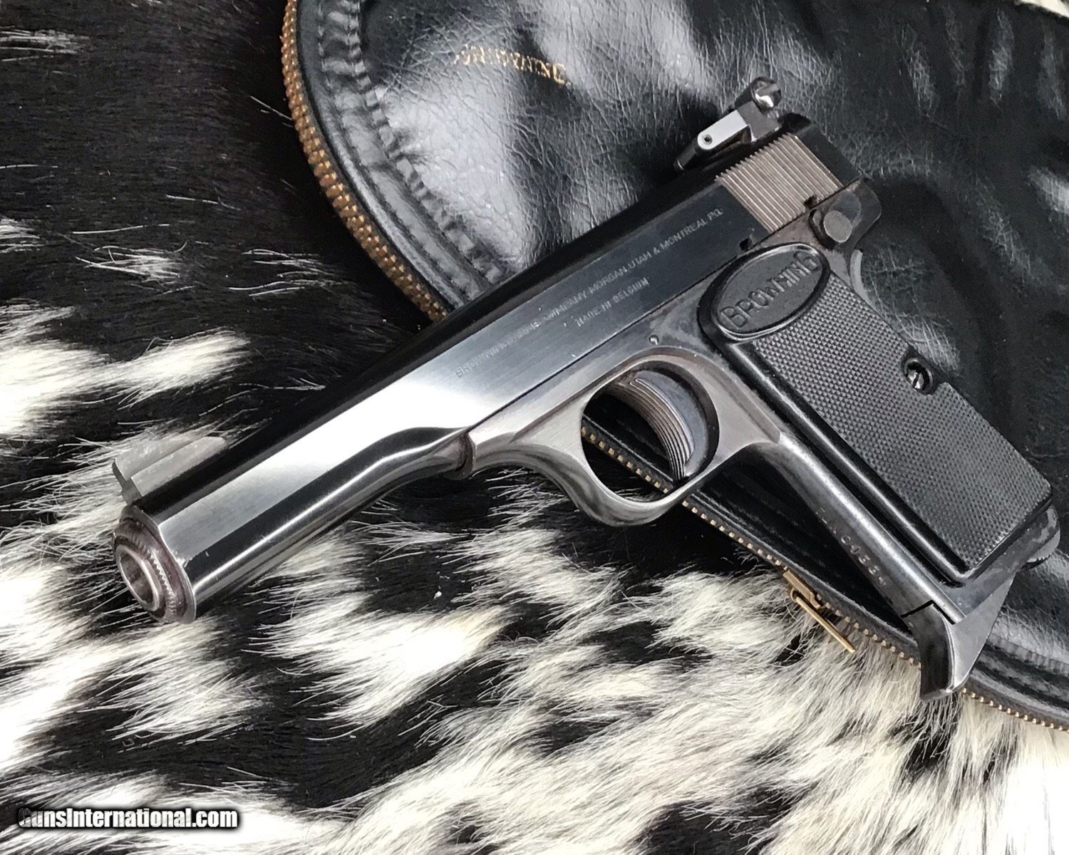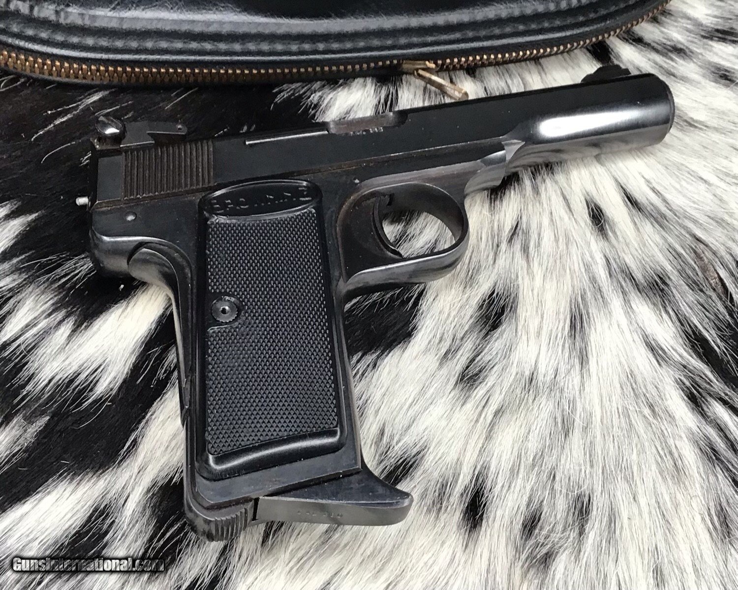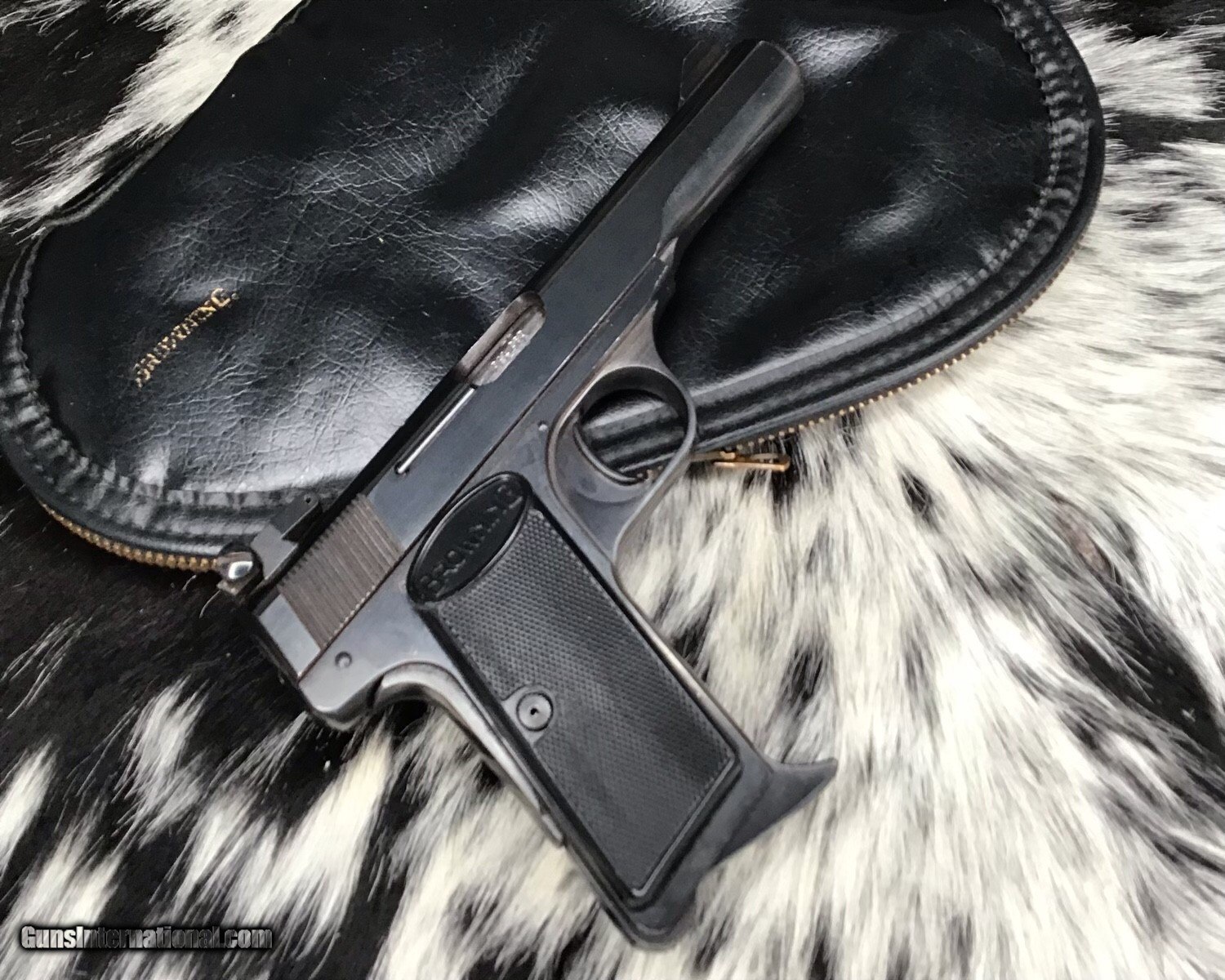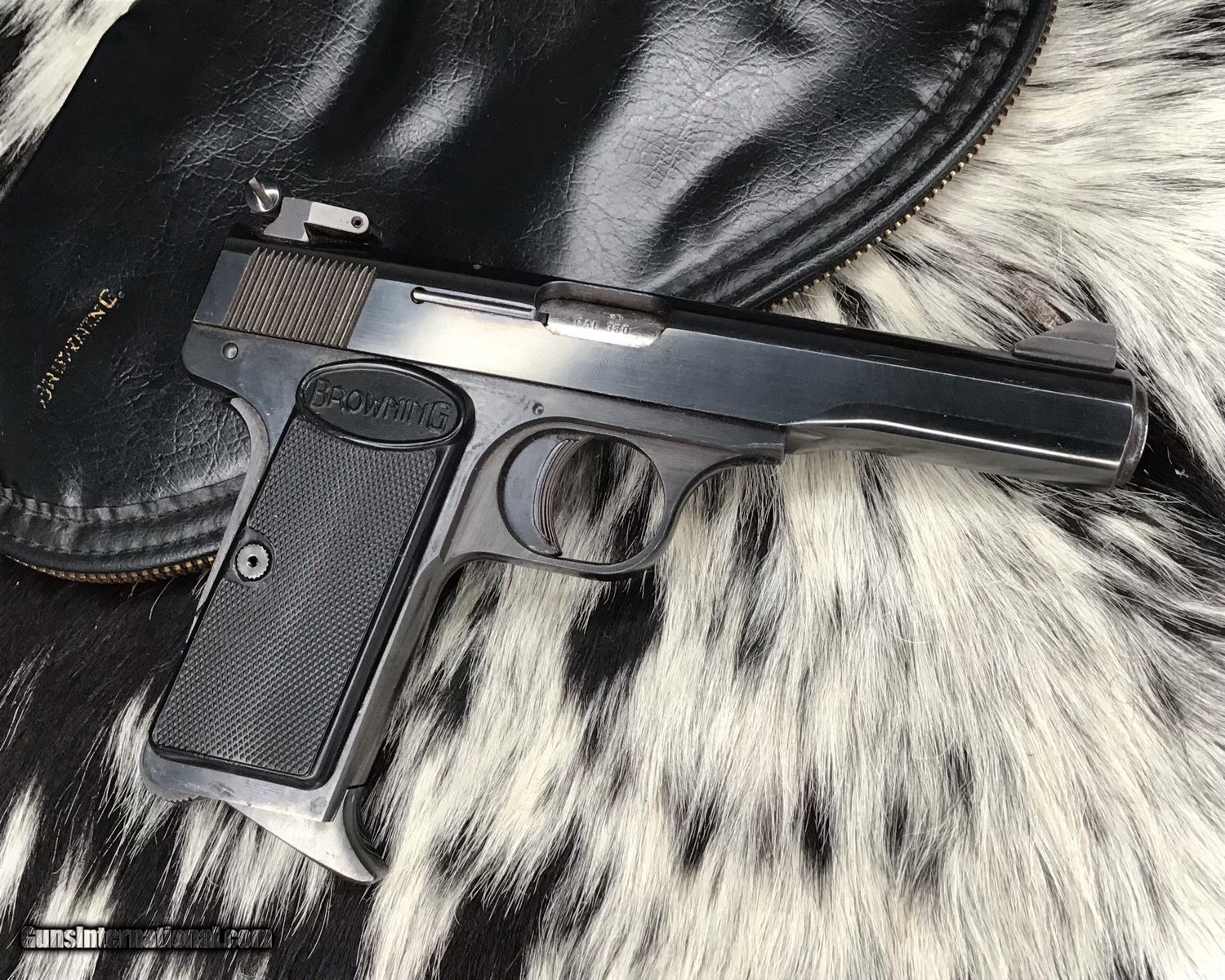 Description: Browning 1910/22 semi auto pistol chambered in.380 acp. Original blued finish remains at 95%. Adjustable sights ,two original mags and Browning factory zipper pouch. Loaded chamber indicator protruding pin on rear of slide. In 1955, the Browning Arms Company introduced the Model 1910 pistol for the American market as the Model 1955. Made in Belgium, this model was virtually identical to the European model except for the markings and grips. Importation ceased in 1968 due to the passage of stricter gun-control laws in the variant of the Model 1910 was known variously as the Model 1922 or 1910/22. This was a larger model with a longer barrel (113 mm), slide extension, and a longer grip frame to accommodate an extra two rounds. This model was aimed at military and police contracts and many examples were produced for various agencies. Add 3% if paying with credit card. God Bless America from a proud American, and a Viet Nam Vet , thankful for our freedoms.. paid for by the Blood ,Sweat and Tears of our brave men and women in uniform. Ten Below Firearms is a Veteran owned and operated business. We specialize in out of production models of high quality firearms. We love to ship! If you are out of state or can't make it to our store, just give us a call! Handguns normally ship for $30 and Long guns for $40 to $55 for extra length long guns. That's 2-3 day USPS Priority shipping, Delivery conformation and with tracking number. Optional Postal insurance is additional $1.50 per $100 and highly recommended. SOLD Curio/Relic: Yes Handgun Caliber: .380 ACP (9x17mm Browning Short) Manufacturer: Belgium Browning Model: 1910/1922 Serial Number: 70N01334 Barrel Length: 113 mm Condition: 95% or better Metal Condition: Very good Bore Condition: Very good Action: Semi-auto Finish: Blued Sights: Adjustable |