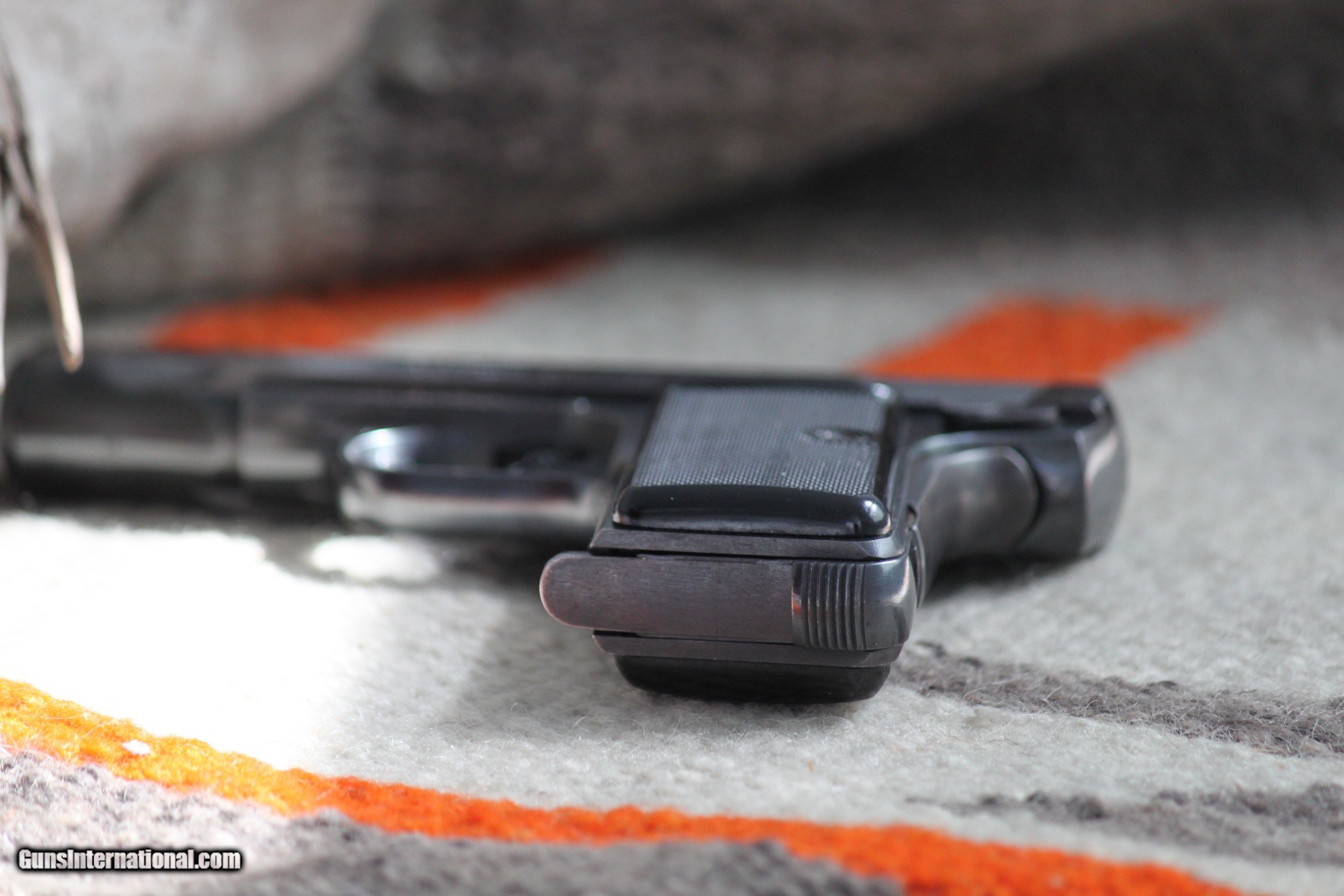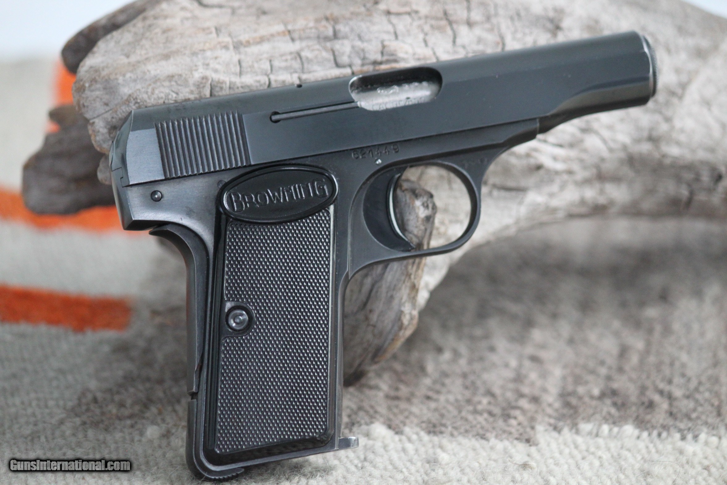 Description: FOR SALE is a flawless, early to mid 60's, Browning model 1910, 380 auto caliber pistol, previously known as the FN Model 1910, serial number 621449. Condition appears as if the Browning has never been fired, and I have never fired the gun since it has been in my ownership The six round magazine has no marks or scratches of any kind also indication that the magazine has not been loaded and fired. Bore is spotless and mirror clean, Barrel is tight with no movement. In 1955, the Browbning arms company began importing a striker fired blowback operated 380 acp pistol built by Fabrique National (FN) in Belgium. Designed by John Browning and originally designated as the Model 1910 by FN, the Browning Model 1955 (for US import) pistol features a steel frame and slide with an internally fixed barrel. Diminutive and concealable the 380 acp chambered pistol provides for three safety mechanisms: a grip safety, a frame mounted lever actuated safety and a magazine safety which was referred to as the "Triple Safety". The top of the barrel offers a ridimentary set of fixed sights to aid shot placement. The Browning Model 1910 funstions via John Browning's renouned striker fired mechanism within the pistols slide. Additionally, the six roung detachable box magazine feeds the firearm. As previously stated, this 1910 Model has no flaws and NRA rated as "excellent condition". The 1910 model remained in production until 1983. The Browning will be insured and shipped to your FFL or your C&R FFL license. Additional questions and photos are welcomed and will be replied to quickly. The photos listed are the actual pictures of the Browning. Priced at $750.00 I also have two W W Greener's and a T Wild shotguns listed for sale in excellent condition on GunsInternational. SOLD Curio/Relic: Yes Handgun Caliber: .380 ACP (9x17mm Browning Short) Manufacturer: Browning Model: Browning 1910 Serial Number: 621449 Barrel Length: 3.5 Bore: Excellent Chambers: Excellent Ejectors: Function As Should Condition: Excellent Metal Condition: Excellent Wood Condition: N/A Bore Condition: Excellent Barrels: Excellent Barrel Type: Steel Action: Blowback Triggers: Crisp Stock: N/A Stock Dimensions: N/A Stock Drop: N/A Stock Comb: N/A Stock Heel: N/A Stock Cast: N/A Fore End: N/A Butt Pad: N/A LOP: N/A Rib: N/A Finish: Blue Weight: 1.3 pounds Sights: Fixed Manufacture Date: Est. 1962-1964 Chokes: N/A Choke Left: N/A Choke Right: N/A Engraving: N/A Extras: 1 Magazine Case: N/A Item Location: Cambridge, MD Proof:Nitro: N/A Proof:Black: N/A Minimum Wall Thickness Left: N/A Minimum Wall Thickness Right: N/A |