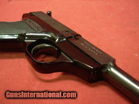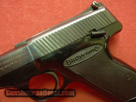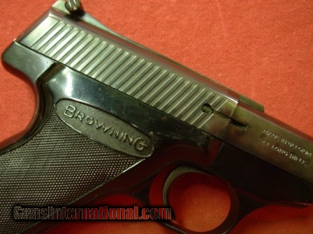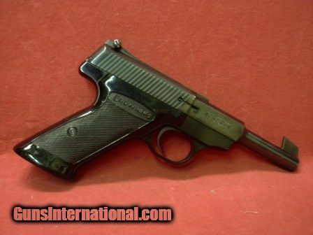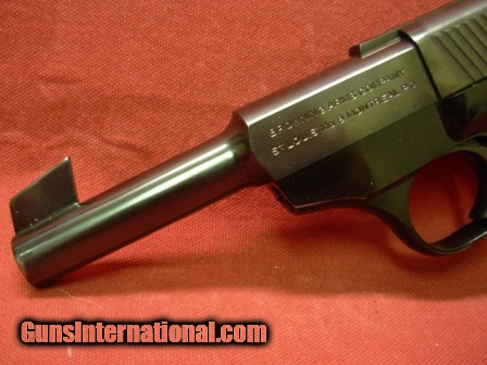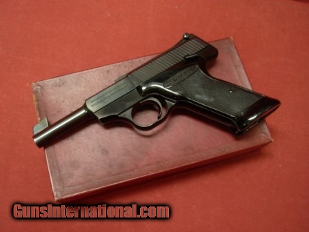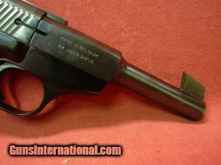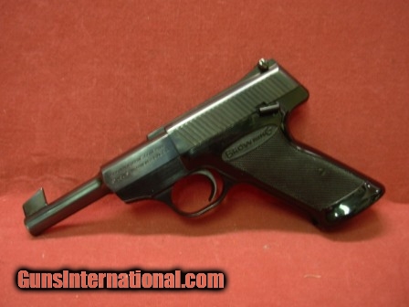 Description: 22lr, serial number 7XXP2. Made in Belgium. 4" barrel. Overall in very good condition, shows very light wear. Area of very light holster wear on left side of muzzle, light scratches on right side of barrel. Otherwise metal is very clean. Plastic grips are in very good condition, light/normal wear, no cracks or large marrs. Comes with one Browning marked magazine. Also comes with Browing two-piece box and Operating Instructions. More photos on request. Please add $30.00 for shipping and insurance. SOLD |