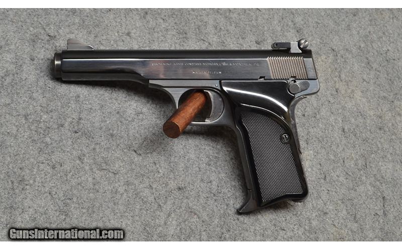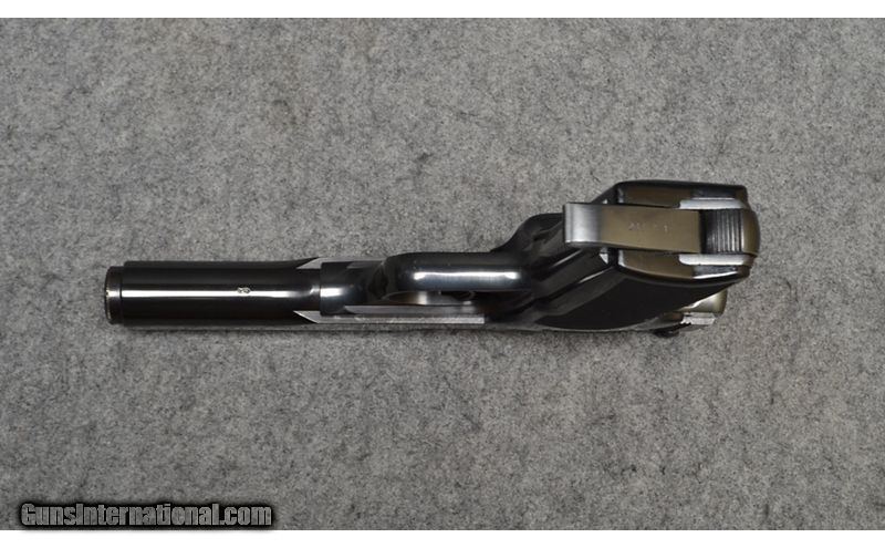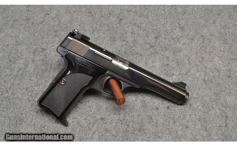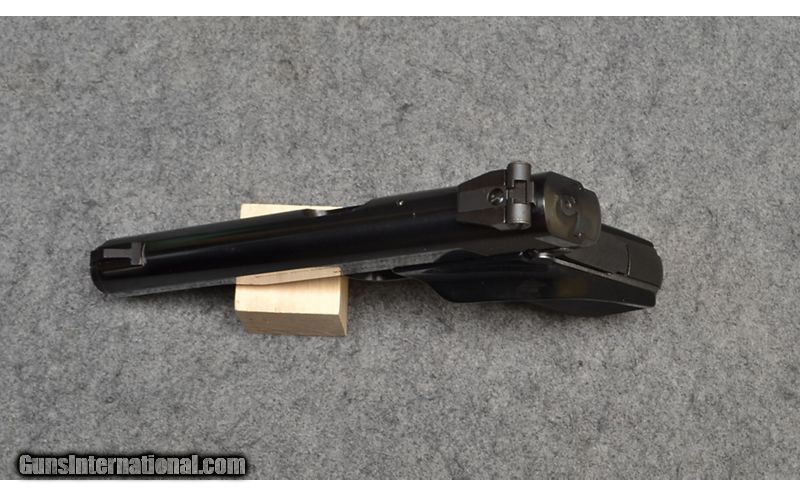 Description: This semiautomatic pistol is a Browning "10/71", chambered in .380 Auto. It has an adjustable rear sight, black plastic target grips, and grip safety. This firearm is in very good condition overall, with the original finish remaining throughout with only minor cosmetic wear. It comes with a soft pistol case. .380 ACP SOLD Metal Condition: "Very good, only very light scratches, original blue remains in 99%+, stampings very crisp Wood Condition: "Very good, checkering still prominent, minor scratches and small scuffs Bore Condition: Bright and shiny with crisp rifling Barrels: 4 1/2 Fore End: Checkered black plastic target grips Weight: 1lb 8oz Sights: "Ramp front sight, adjustable rear Item Location: Wichita, KS |
