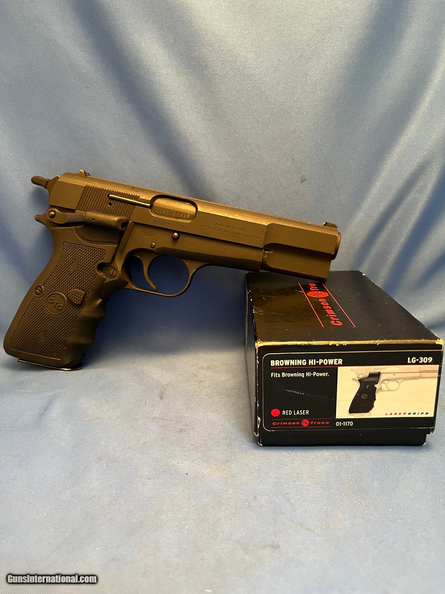 Description: Guns Listing ID: 1270156 THIS IS A BROWNING HI-POWER 9MM SEMI AUTO PISTOL MFG 1985 HIGH POWER THE MATTE BLACK FINISH CONDITION IS PROBABLY 96% WITH THE BUMPS AND CARRY WEAR THE CRIMSON TRACE RED LASER RUBBER GRIPS ARE IN GOOD CONDITION THE BORE OF THE 5\" BARREL IS BRIGHT, SHINY, AND 98% ONE 13 ROUND MAGAZINE WE WILL SHIP THIS PISTOL ONLY TO WHERE LEGAL SHIPPED AS SHOWN WITH NOTHING ELSE IF YOU HAVE QUESTIONS OR NEED EXTRA PICTURES ASK BEFORE, NOT AFTER YOU BUY. UNDERSTAND THAT WE WILL PUT A SIGNATURE ON THE PACKAGE SO IT WON‚‚T GET LEFT ON A PORCH BRANDON‚‚S GUN TRADING CO LLC 321 EAST 20TH ST JOPLIN MO. 64804 (417)-623-8787 FAX (417)-623-2326 9-5 TUESDAY-SATURDAY CENTRAL TIME WE ARE ALSO CLOSED THE 1‚‚ST SATURDAY OF EVERY MONTH AND HOLID SOLD Manufacturer: BROWNING Model: "HI-POWER" MADE IN BELGIUM Caliber Info: 9MM LUGER (9X19 PARA) Condition: Used - Non-Certified Barrels: 4.6 BARREL Finish: MATTE BLACK |