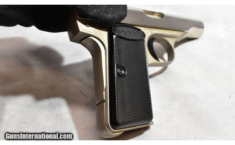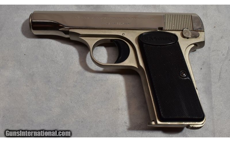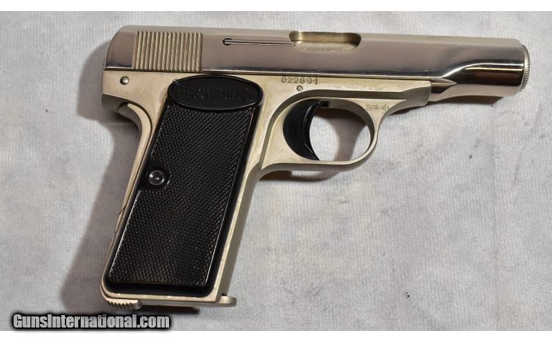 Description: Browning Satin Nickel 1910 chambered in 9mm. Made in Belgium. 9mm Luger SOLD Curio/Relic: Yes Chambers: 9MM Luger Metal Condition: Excellent Wood Condition: N/A Bore Condition: Excellent Barrels: 3" Barrel Triggers: Factory Trigger Stock Dimensions: No Stock Fore End: N/A Butt Pad: No Butt/Pad Weight: 2LBS Sights: Iron Sights Chokes: No Chokes Item Location: Colorado Springs, CO |