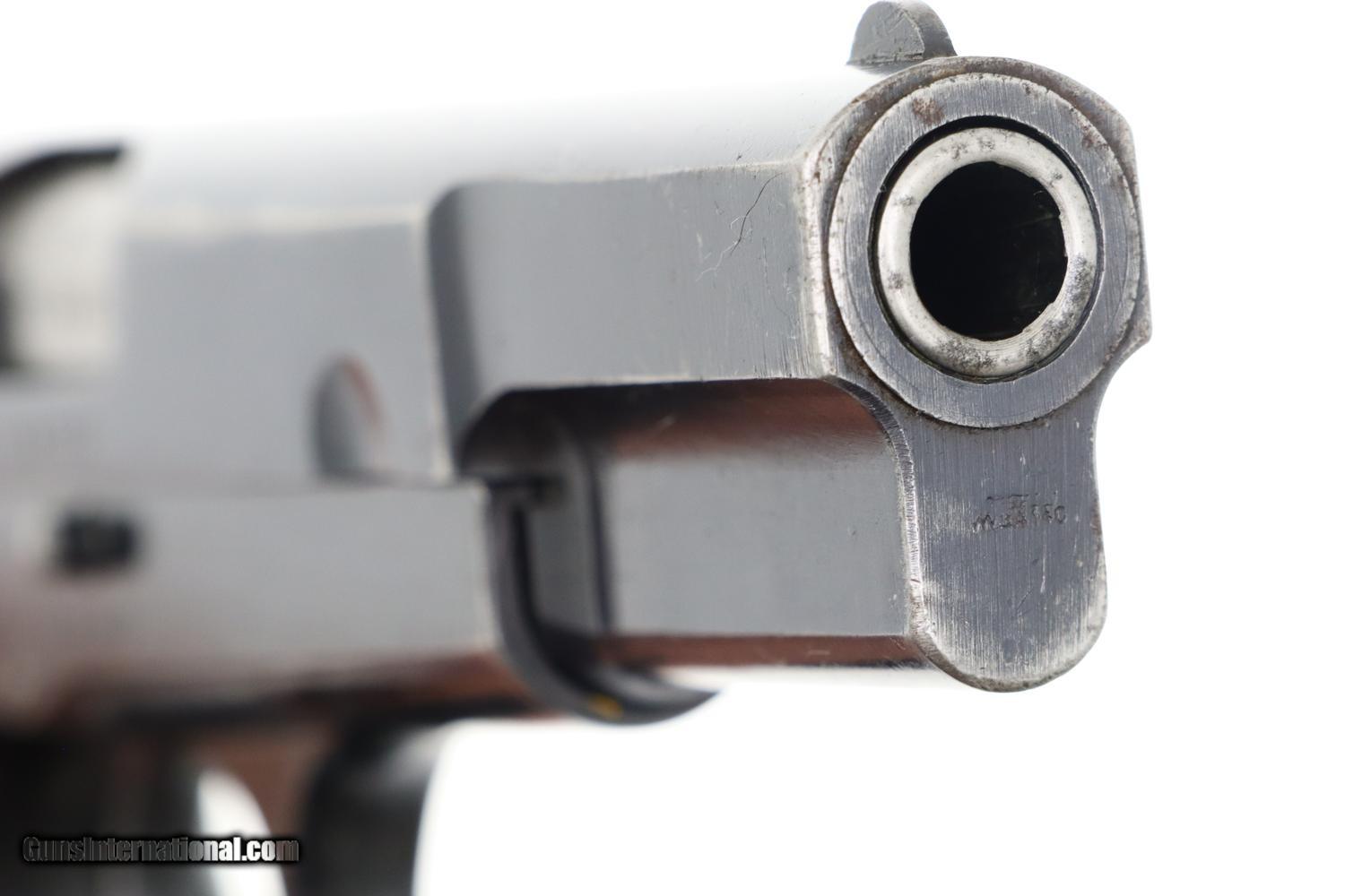 This FN High Power Pistol is a late, all-matching, and all-original WWII German Army military variation in 9mmP with fixed sights and WaA140 acceptances to include the magazine!