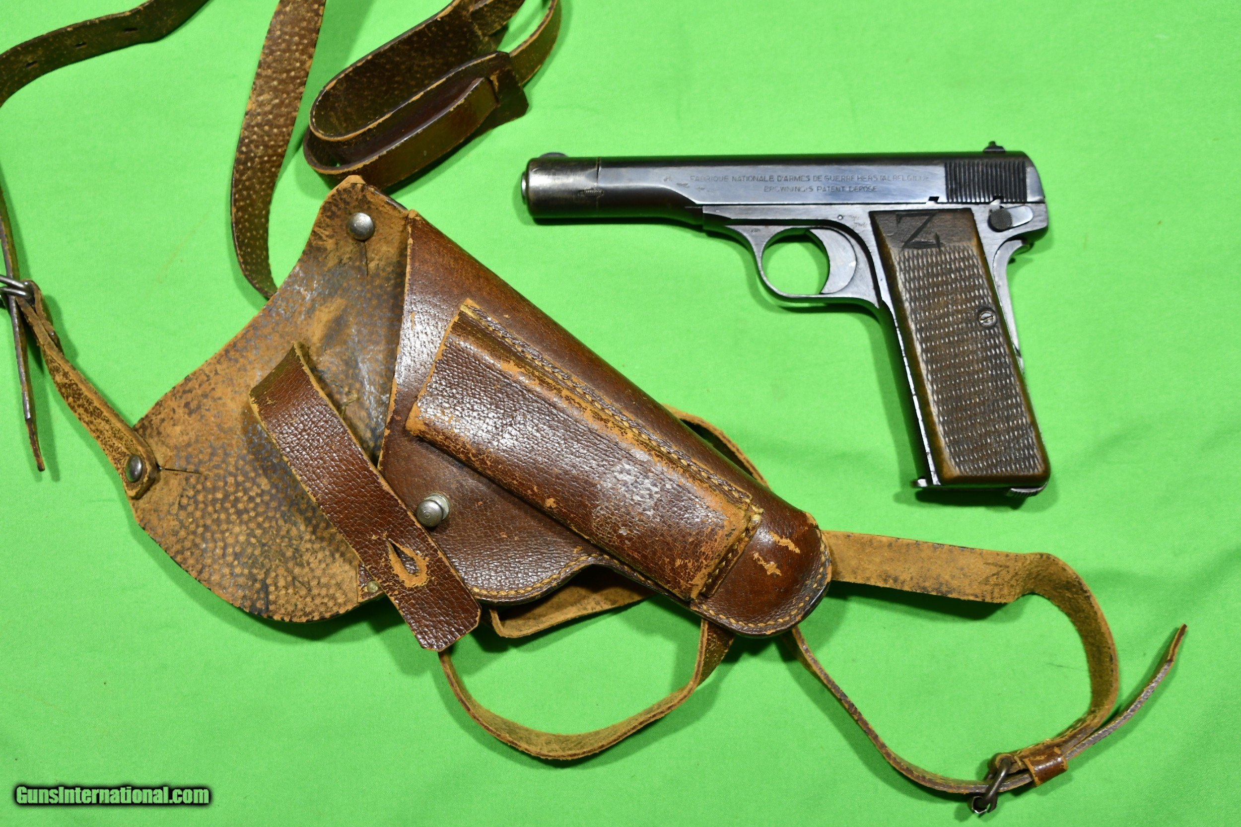 NAZI FN Browning M1922 7.65mm With Original Pigskin Holster. Mint Bore