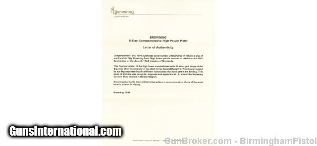 Description: Browning D-Day Commemorative High Power 1994 9mm - Factory New SOLD |