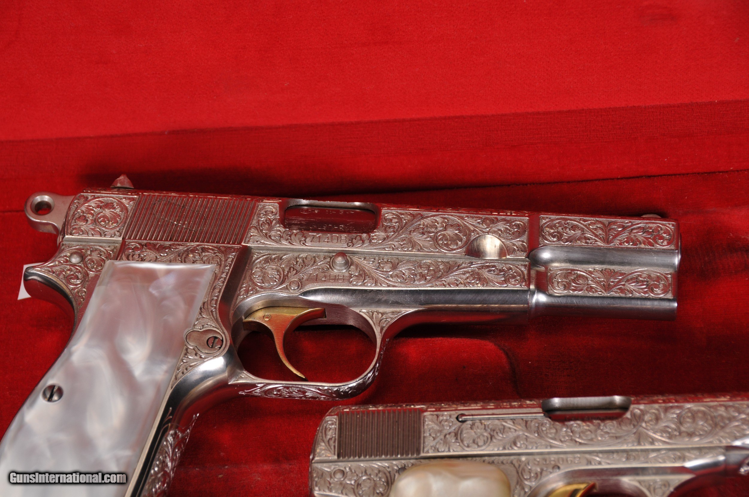 Description: Here is an absolutely stunning Browning Renaissance set. These have never been fired. This is a stunning set. Engraving is perfect on it. Comes with a case. Any questions please let me know. Very few of these in this quality still exist. SOLD Manufacturer: Browning Model: Renaissance Caliber Info: 9mm/380/25mm Condition: Used Metal Condition: Great Bore Condition: Good Finish: Polished Engraving: Yes Extras: Letter Case: Yes Item Location: 35209 |