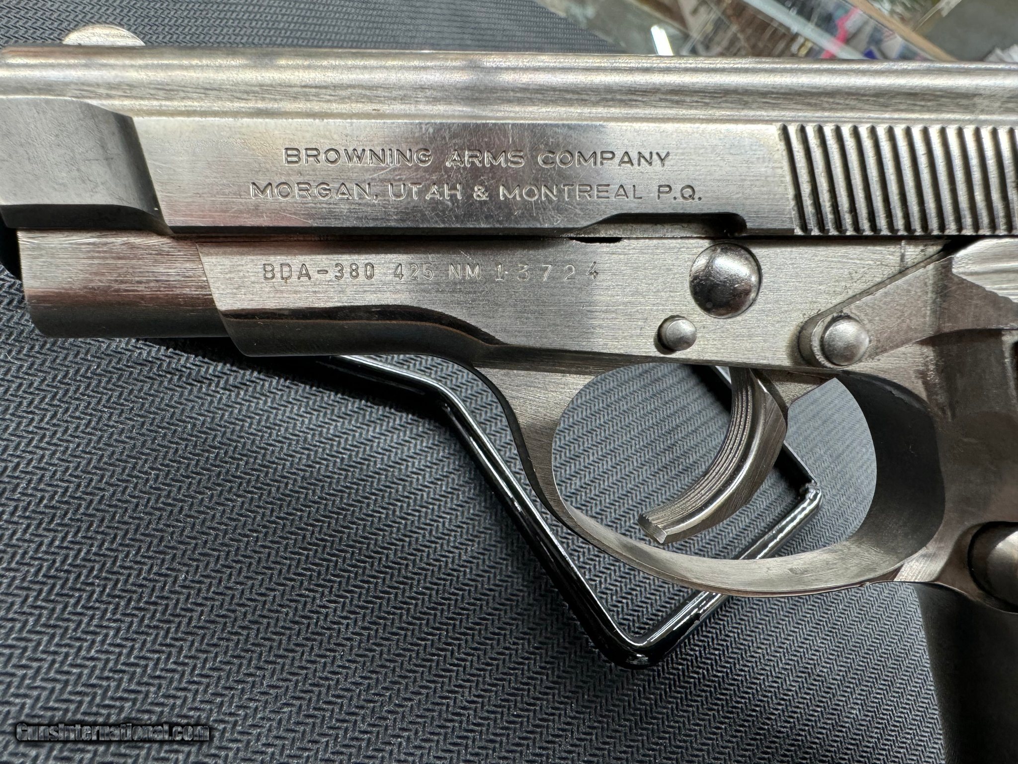 Description: Guns Listing ID: 1358899 Browning BDA-380 is in good condition and shows signs of normal wear as seen in the pictures. Comes with 1 13 round mag and has both emblems in the grips. SOLD Manufacturer: BROWNING Model: BDA - 380 Caliber Info: .380 ACP Condition: Used - Non-Certified Barrels: 3.75 BARREL Finish: NICKEL |