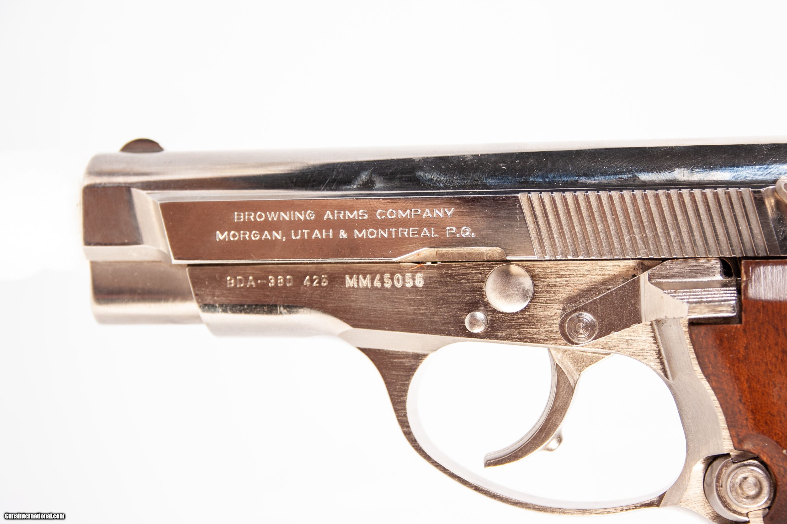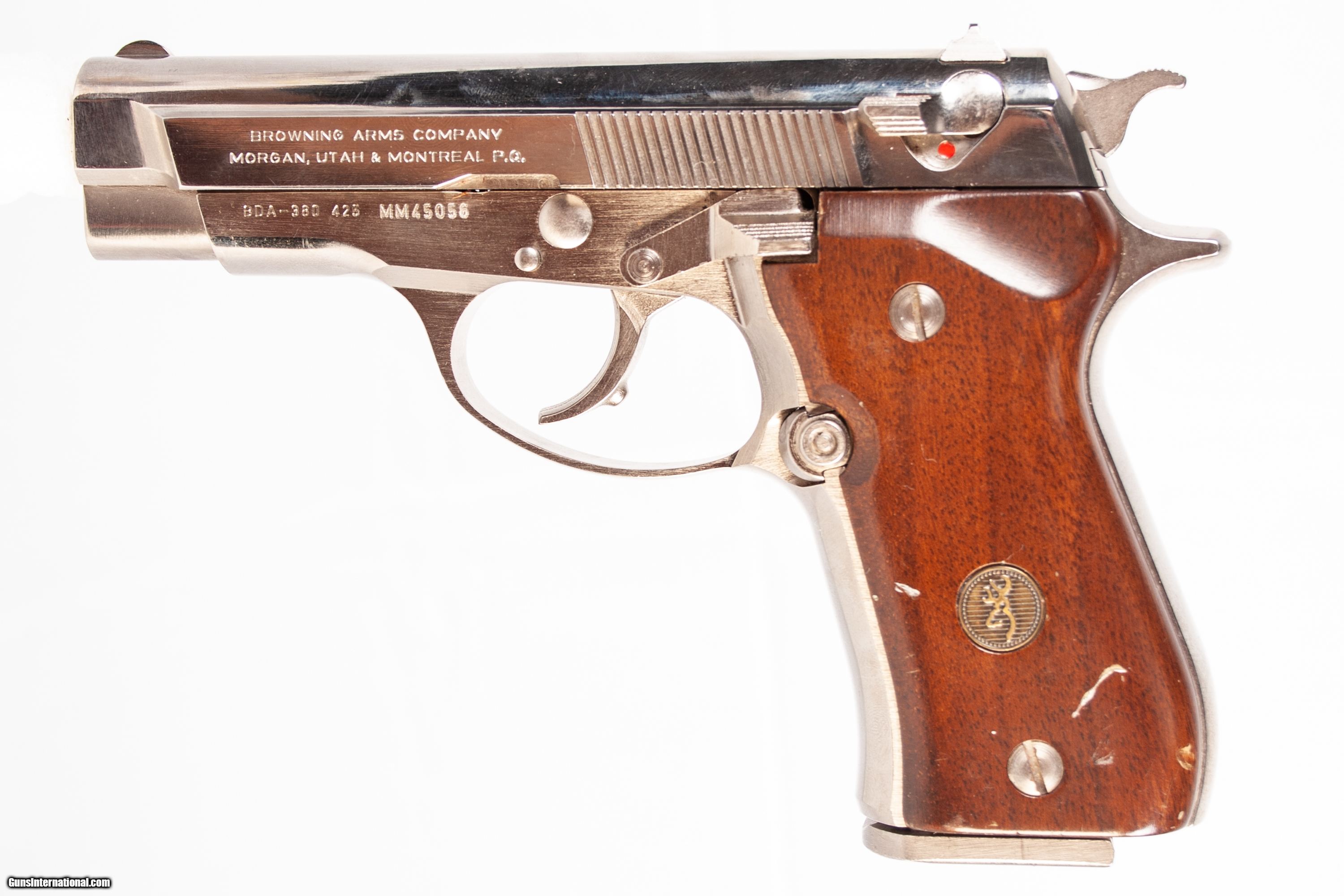 BROWNING BDA CHAMBERED IN 380 ACP WITH A 4 INCH BARREL BRIGHT BORE AND GOOD GROOVES. THIS GUN IS IN VERY GOOD CONDITION AND IS COVERED BY DURY'S LIFETIME WARRANTY.
