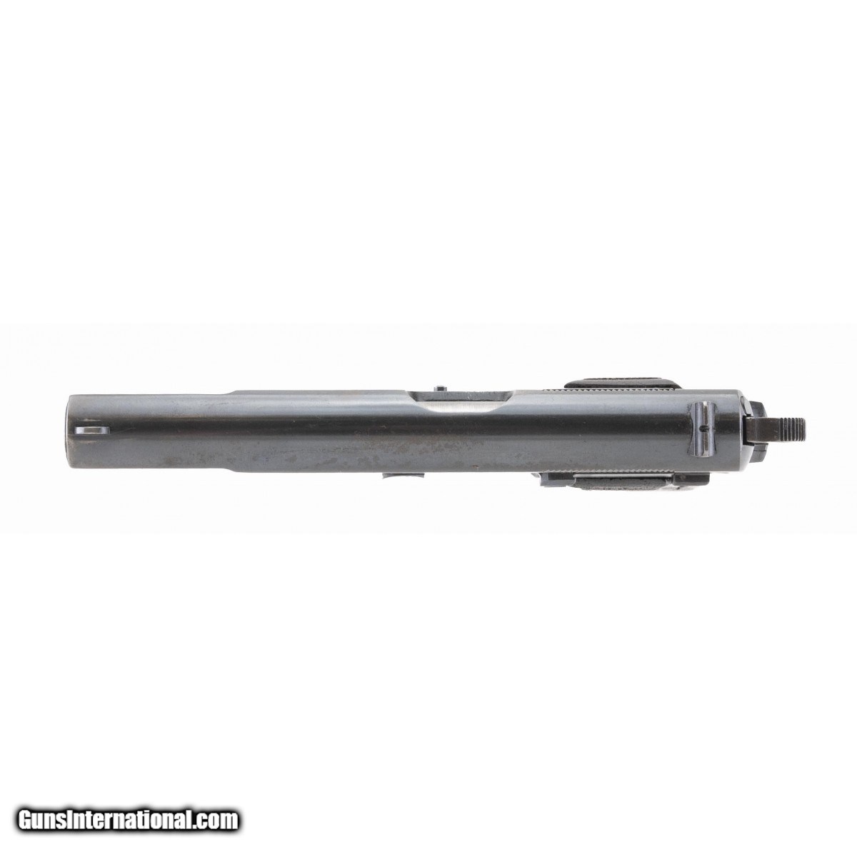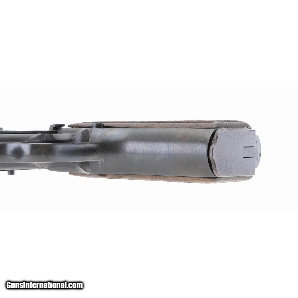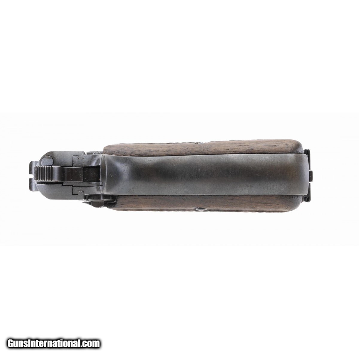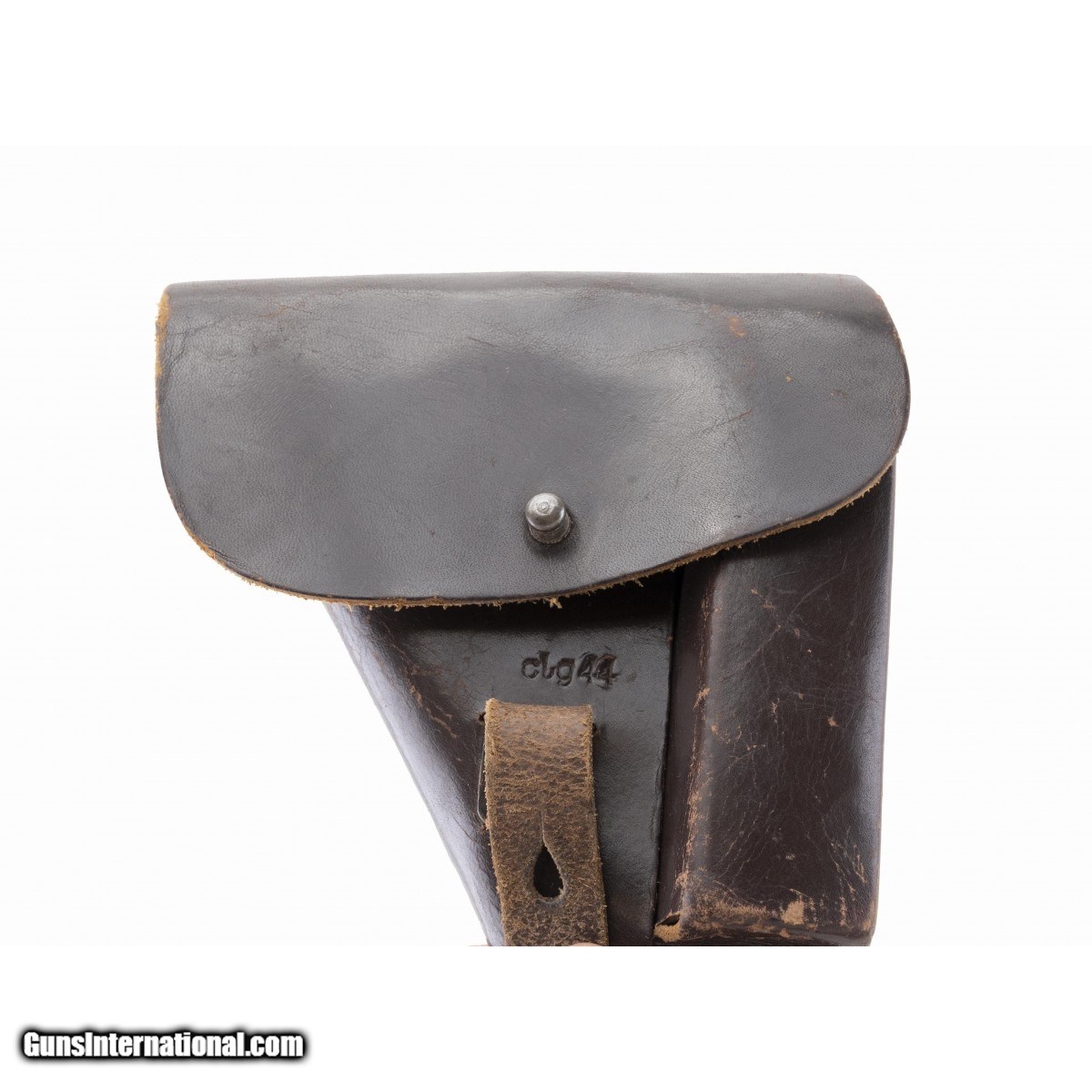 Description: " This very fine type III (fixed rear sight) Browning High Power pistol has the expected Nazi WaA140 proof marks on the frame and slide. It retains approx. 95% of its wartime blue finish with light spotting on the left side of the slide. The wood grips are excellent with no cracks or chips. The bore is fine with frosting in the grooves. Due to what appears to be a factory error, the serial number has an overstamp of an identical 1 in the one hundred digit position on the frame, slide, and barrel. The action functions correctly. This fine pistol comes with an excellent clg44 marked High Power holster. SOLD Curio/Relic: Yes |