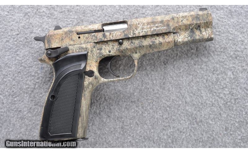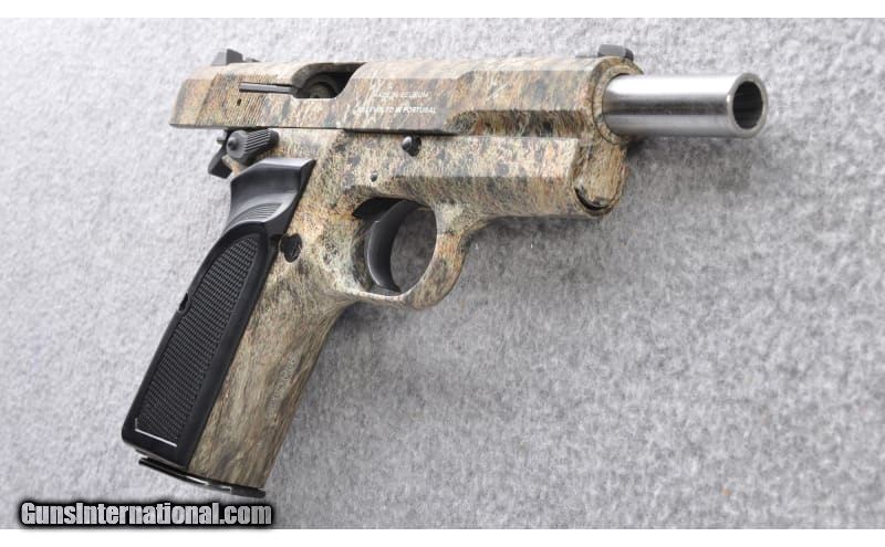 Description: After 82 years of continuous production the Hi-Power was discontinued in early 2018. .40 S&W SOLD Chambers: .40 Smith & Wesson in a ten round detachable magazine Metal Condition: "Very good, the camo finish is unblemished Bore Condition: Bright & sharp Barrels: 4.7 Triggers: Single action semi-auto with magazine disconnect Weight: 36 oz. Sights: Dovetailed blade front and notched leaf rear Item Location: Grand Junction, CO |