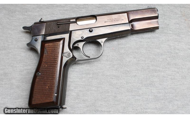 Description: Very good condition, some finish wear, small nicks and scratches, comes with one mag. Classic John Browning designed 9mm semi auto pistol, 4.6" barrel, fixed sights, blued finish, single action trigger, manual safety lever, checkered mag release and wood grip panels. 9mm Luger SOLD Chambers: Semi auto Metal Condition: Very good Bore Condition: Bright Barrels: 4.6 Triggers: Single action Butt Pad: Wood grips Sights: Fixed sights Item Location: La Vista, NE |
