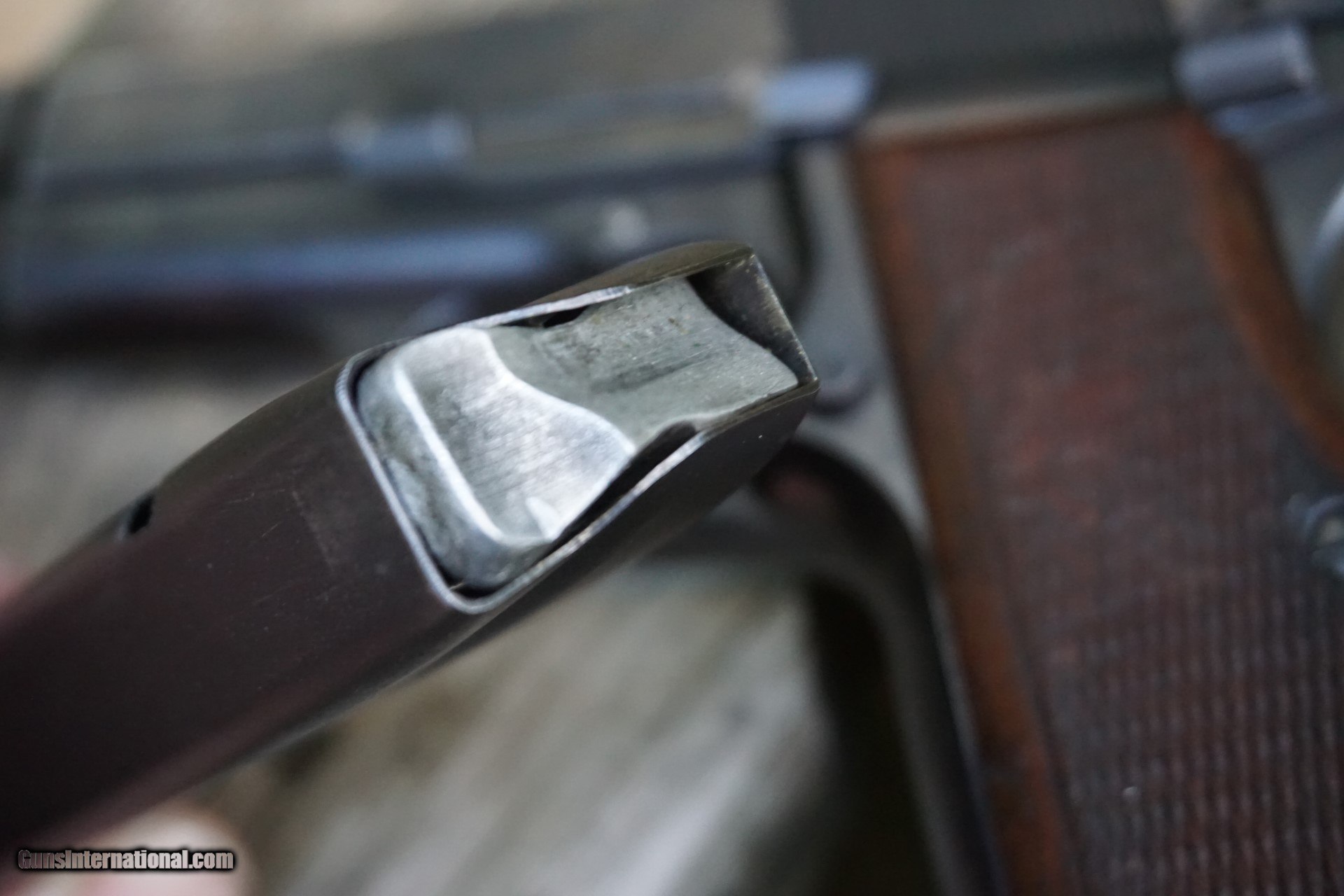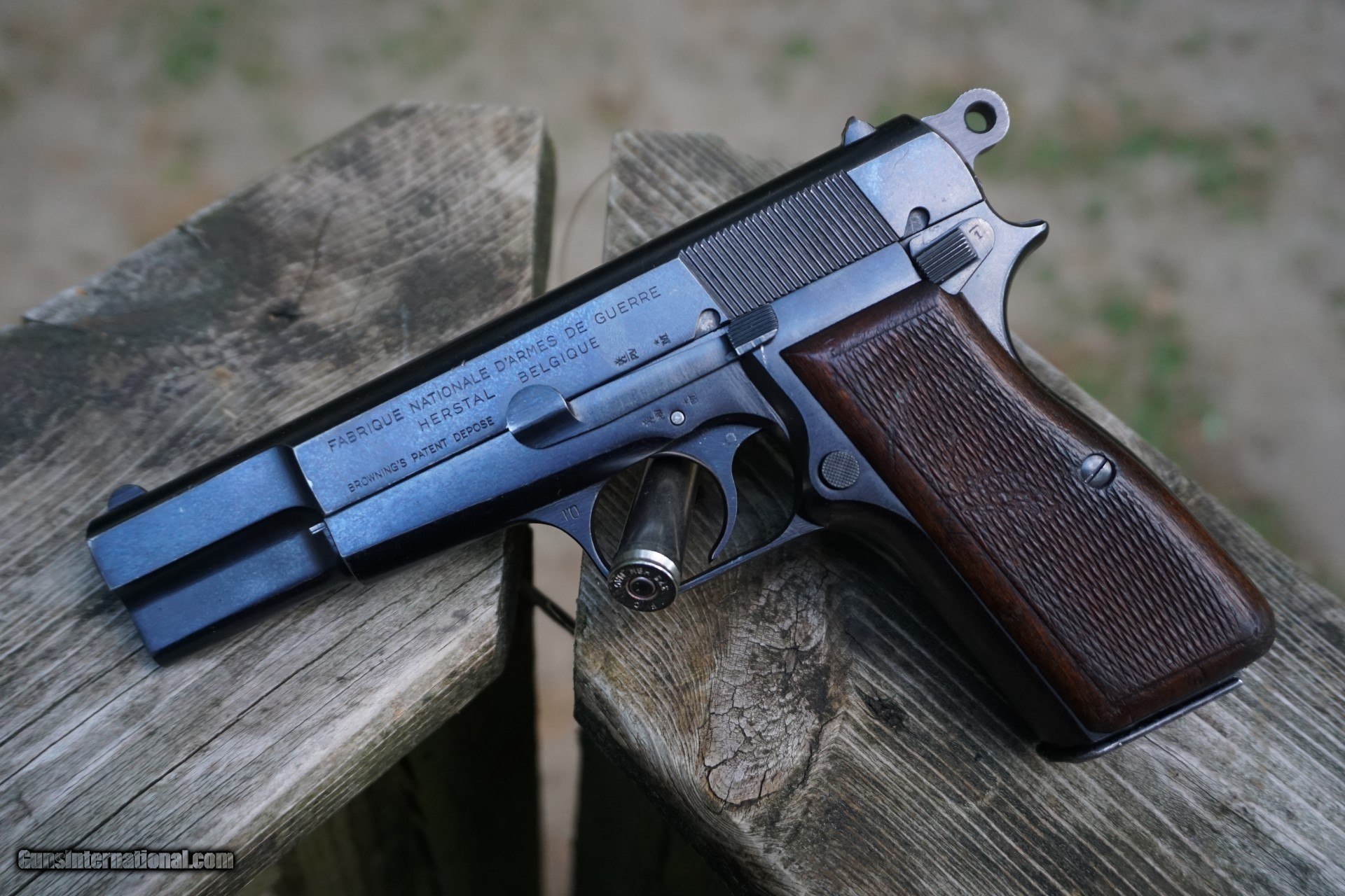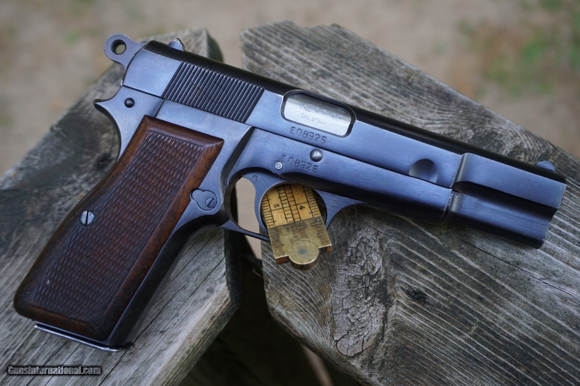 Description: Early FN High Power, I think it is a pre or post war Police contract pistol, very nice original rust blue , all numbers match, it has a very small import mark on the frame, works perfect , bore is Excellent, was not used /shot much, 1495.00 $30 ship& ins, call or text is best SOLD Curio/Relic: Yes Manufacturer: Browning FN Model: Hi Power Caliber Info: 9mm Condition: very nice Metal Condition: Excelent |