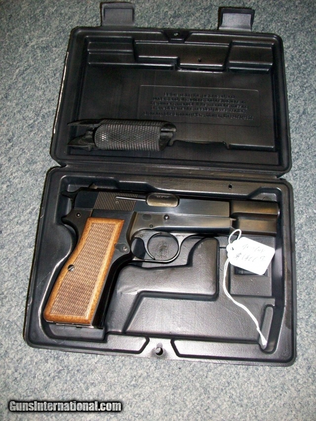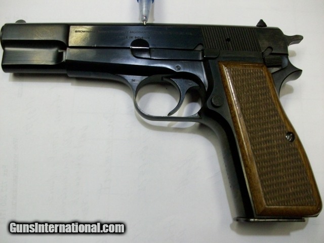 Description: This 9mm Cal. pistol is a Belgium Made Browning Hi Power (Mfg. 1977). Comes in Browning hard case with TWO sets of grips. Small marrk where the pen point is. Condition 99%. $1400.00. rmgrigolettoyahoo 732 280 8750. SOLD |