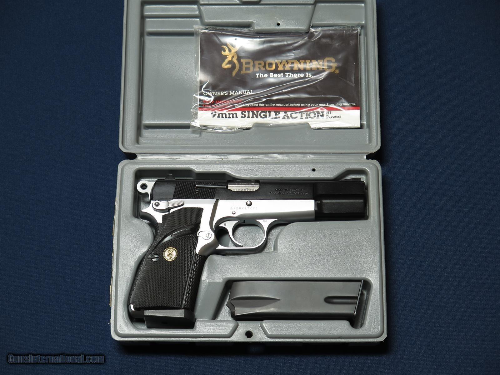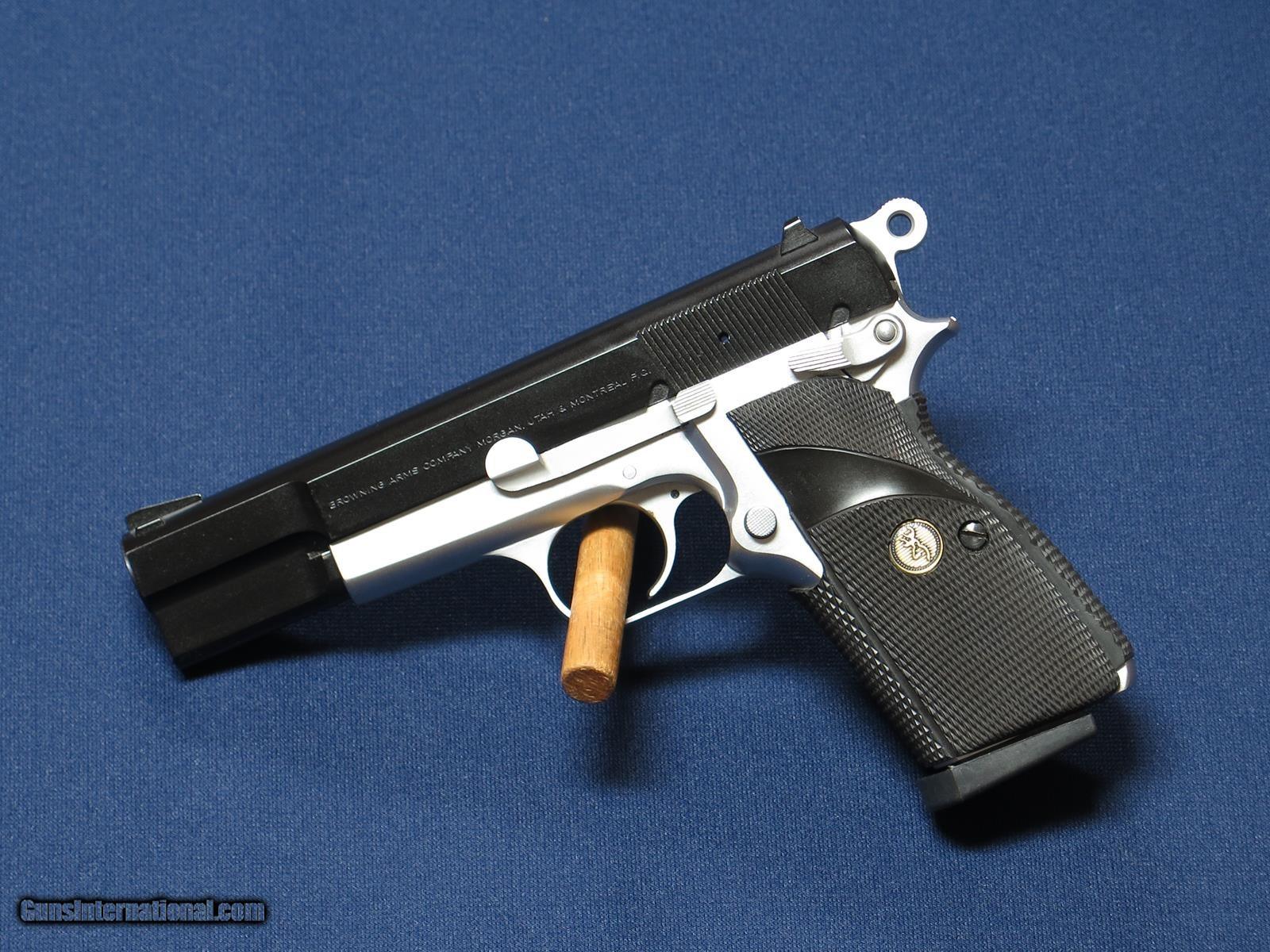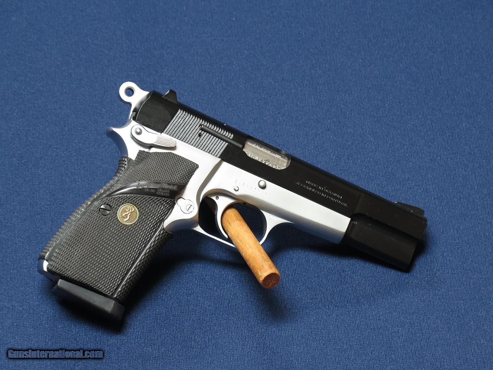 Description: Browning Hi Power 9mm. Two tone. Excellent condition with case, 2 mags, and booklet. Round hammer. SOLD |