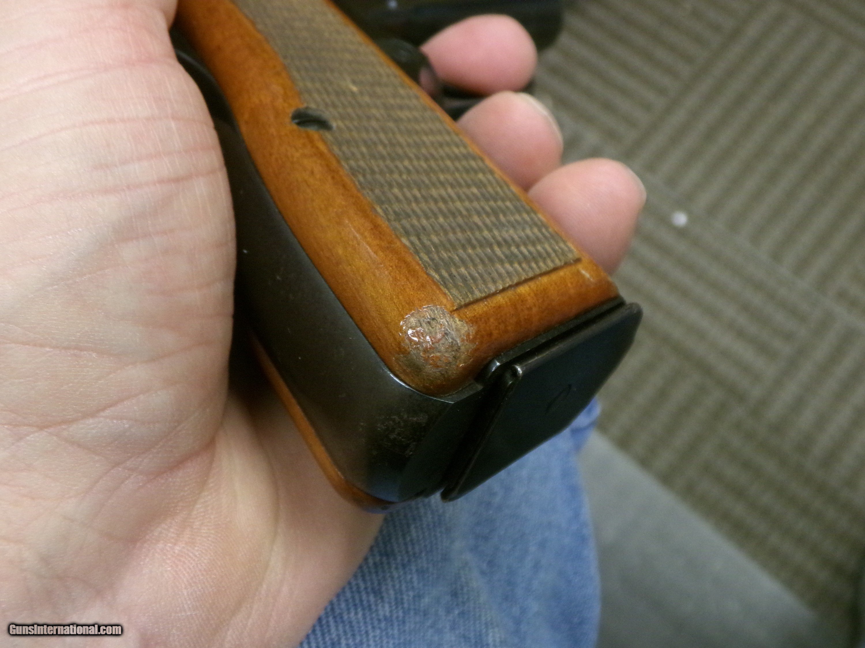 Description: CONSIGNMENT USED GOOD CONDITION BROWNING HI POWER PISTOL BELGIUM MADE 9MM -- 4.75" BARREL -- WOOD GRIPS -- 2 - 13 RND MAGS BORE IN GOOD CONDITION -- RIGHT GRIP HAS SOME WEAR ON CORNER SERIAL # 245PY047xx ****PLEASE CALL IN THE WITH THE SELLER’S INVENTORY NUMBER IF INQUIRING ABOUT A FIREARM****** WE DO NOT SHIP FIREARMS AND/OR FIREARMS’ PARTS OUT OF THE 50 UNITED STATES, SO DON’T ASK—YOU NEED TO KNOW IF FIREARM IS LEGAL FOR YOUR STATE PRICE REFLECTS PAYMENT BY MONEY ORDER / CASHIERS CHECK. A 3% PREMIUM IS ADDED FOR CREDIT CARDS. WE DO ACCEPT PERSONAL OR BUSINESS CHECKS, BUT THERE IS A GRACE PERIOD OF 10 BUSINESSS DAYS ON THEM. Shipping is $60 for handgun and $50 for long gun. Shipping to Alaska and Hawaii will be more based on weight of firearm. USPS SHIPPING IS HIGHER. WE DO OFFER LAYAWAY PLANS FOR 30,60, OR 90 DAYS.NOT ON CONSIGNMENT GUNS THERE IS A $5.00 CHARGE FOR EVERY 30 DAYS ITEM IS ON LAYAWAY. WE ALSO REQUIRE A 20% DOWN PAYMENT ON TOTAL OF LAYAWAY SALE. LAYAWAYS ARE NON- REFUNDABLE. HERE IS HOW THIS PROCESS WORKS. YOU WOULD CALL US AT 540-337-9218 WITH LISTER # TO PURCHASE THE GUN. THEN ONCE I HAVE RECEIVED PAYMENT AND AN FFL (FEDERAL FIREARMS LICENSE) FROM A LICENSED DEALER IN YOUR AREA OF YOUR CHOICE. WE WILL THEN SHIP THE GUN TO THEM. YOU WOULD THEN PICK UP THE GUN AT YOUR LOCAL DEALER AND DO PAPERWORK THERE. Please have your FFL Dealers contact information when you call. DOMINION OUTDOORS 15 ANGELA COURT FISHERSVILLE, VA 22939 540-337-9218 540-337-2422 fax M – F 9 a.m. to 6 p.m. ETZ Sat 9 a.m. to 4 p.m. ETZ ****PLEASE CALL IN THE WITH THE SELLER’S INVENTORY NUMBER**** ***PLANO HARD CASES AVAIABLE FOR PURCHASE $25.00 WITH THE PURCHASE OF A FIREARM** *** Online prices compared to in store prices will vary. *** SOLD |