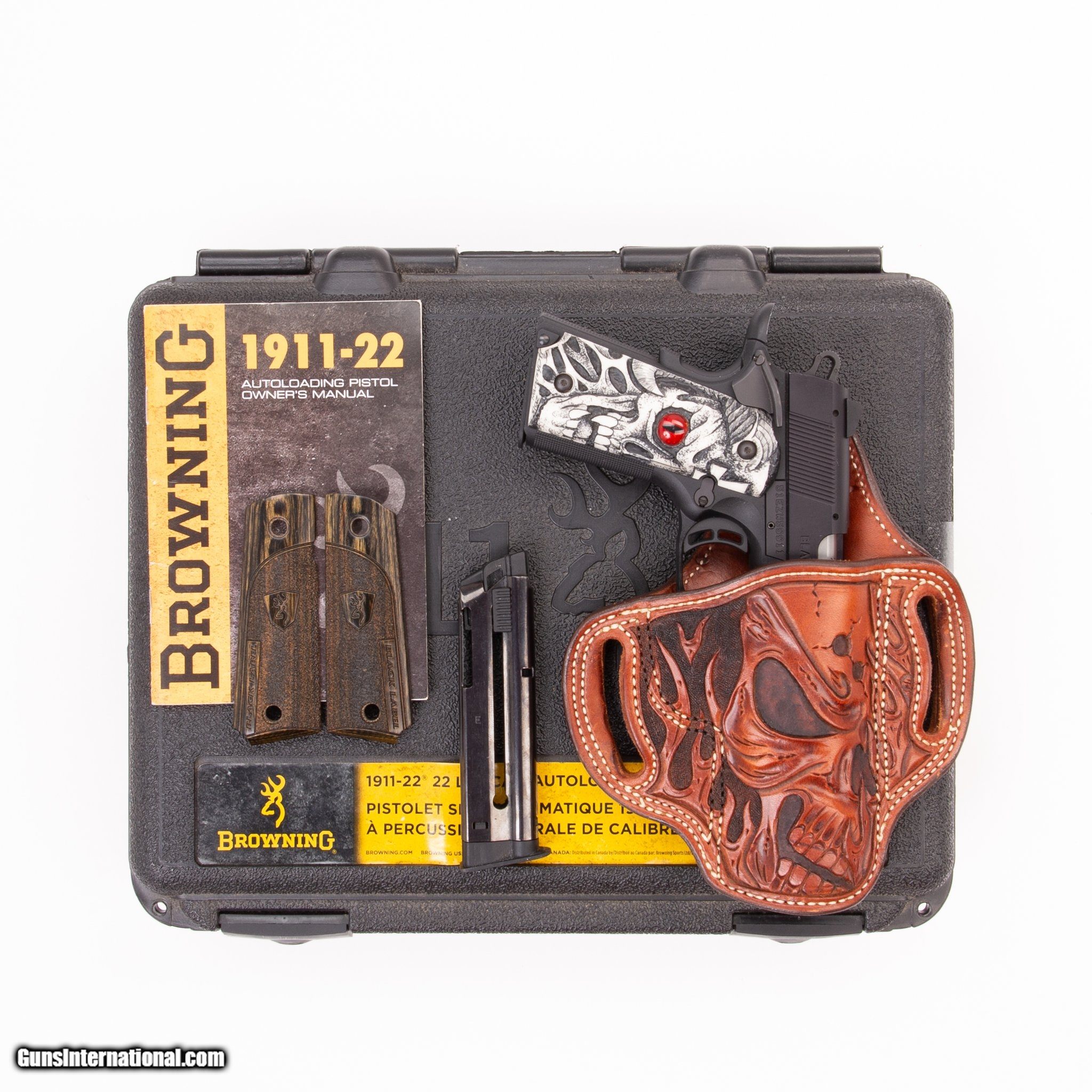 Description: Guns Listing ID: 401289 This Browning features two 10-round magazines, the original case, owner‚‚s manual, a thumb safety, grip safety, magazine disconnect, wooden grips, extra Skull grips and a right-hand leather belt holster. Get the best bang for your buck when you get a Certified Used Firearm . When you see the Certified Used stamp on any of our firearms, you can be confident that you’re getting exactly what you want – a gun only in very good to excellent condition and held to the highest quality standard. All Certified Used Guns come with a ‘no questions asked’ return policy . PLUS, ALL CERTIFIED USED GUNS SHIP FREE! SOLD Manufacturer: BROWNING Model: 1911 22 BLACK LABEL Caliber Info: .22 LR Condition: Used - Certified Barrels: 4.25 BARREL Finish: BLACK Weight: 0.8 LBS. |