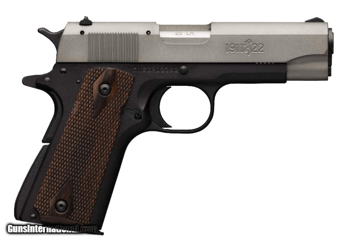 Description: Guns Listing ID: 217581 The Browning 1911-22 has a crisp, clean single-action trigger pull and both a grip safety and a manual thumb safety. The slide and frame are precision machined from aircraft grade 7075 T6 alloy for light weight and long life. A steel slide block encloses the firing pin and extractor, and a durable finish completes the overall package. From its alloy slide and frame to its button-rifled, target crowned steel barrel, the Browning 1911-22 is reliable, accurate and designed to provide years of fast-shooting fun for the whole family. This A1 model is CA compliant and features a 3.63\" barrel, gray anodized aluminum slide, black anodized frame, and diamondwood walnut grip. SOLD Manufacturer: BROWNING Model: 1911-22 Caliber Info: .22 LR Condition: new Barrels: 3.6" barrel Finish: BLACK ANODIZED |